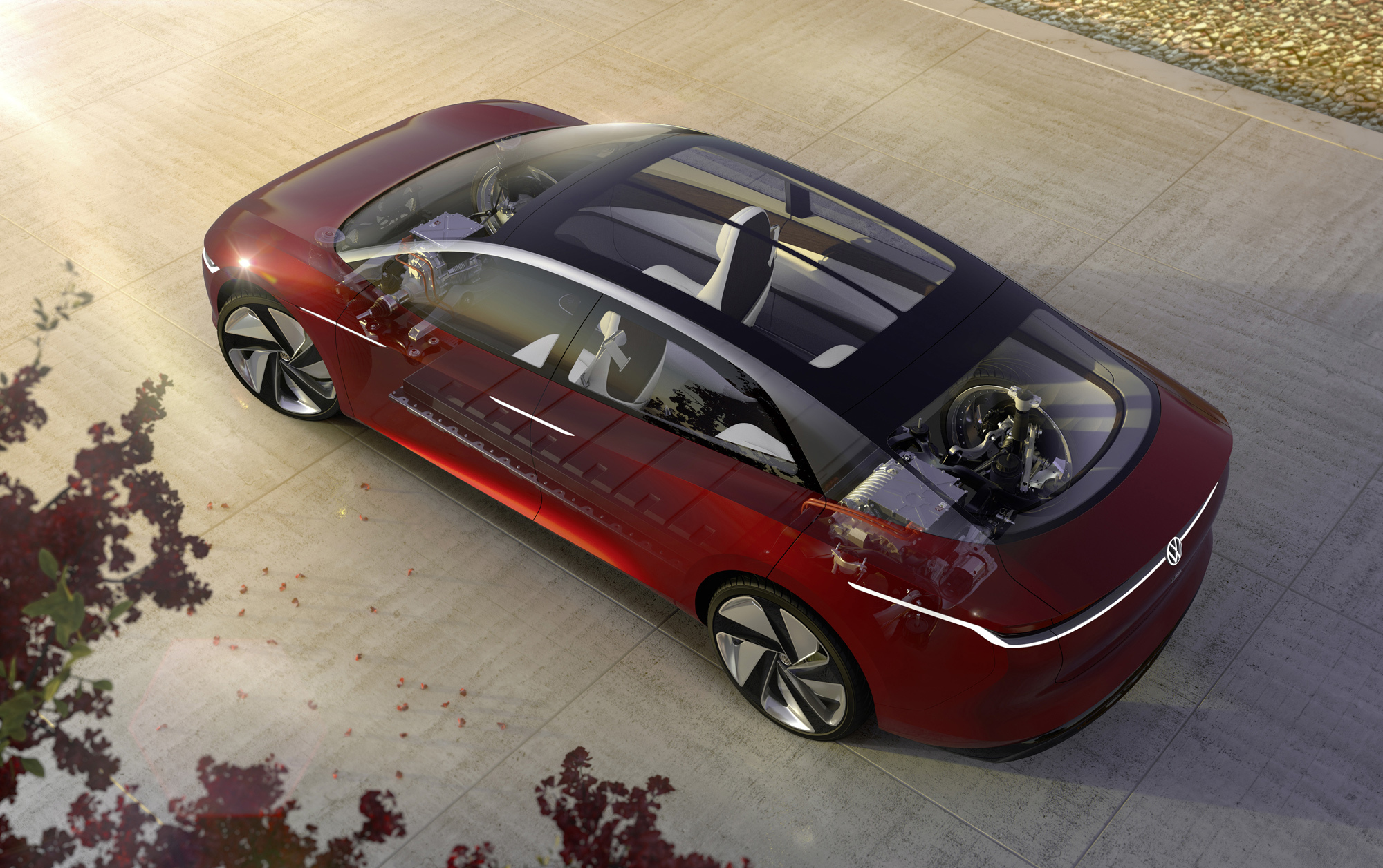 Седан Volkswagen I.D. Vizzion, по мнению разработчиков, открывает новое измерение «экологической совместимости, безопасности и комфорта». На практике это означает электрический привод с батареей ёмкостью в 111 кВт•ч и запас хода в 665 км, а также автономность пятого уровня, которая устраняет необходимость в традиционных элементах управления. Обтекаемый профиль с крупным салоном, по определению фирмы, — это «визуальная матрица новой эры», а яркий цвет Baladi Orange намекает на связь концепта с предшествующими I.D.-машинами.