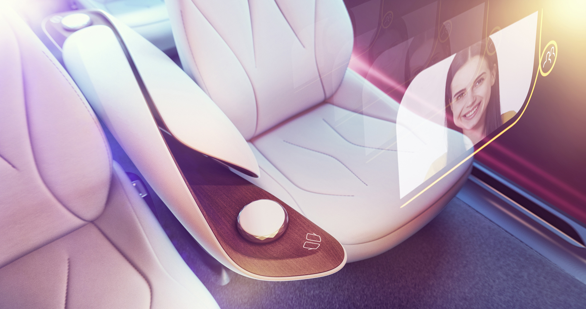 Модная в последние годы тема гостиной на колёсах заявлена и тут. Причём поскольку водителя нет, все обитатели — пассажиры, все могут расслабиться и посвятить время в пути развлечениям или работе. Информационно-развлекательная система машины является «виртуальным помощником, который способен учиться и реагировать эмпатически», а взаимодействие с машиной происходит посредством голоса, системы контроля жестов, а также очков дополненной реальности Microsoft HoloLens. Кроме того, автомобиль узнаёт обитателей в лицо, что является одним из уровней защиты от угона.