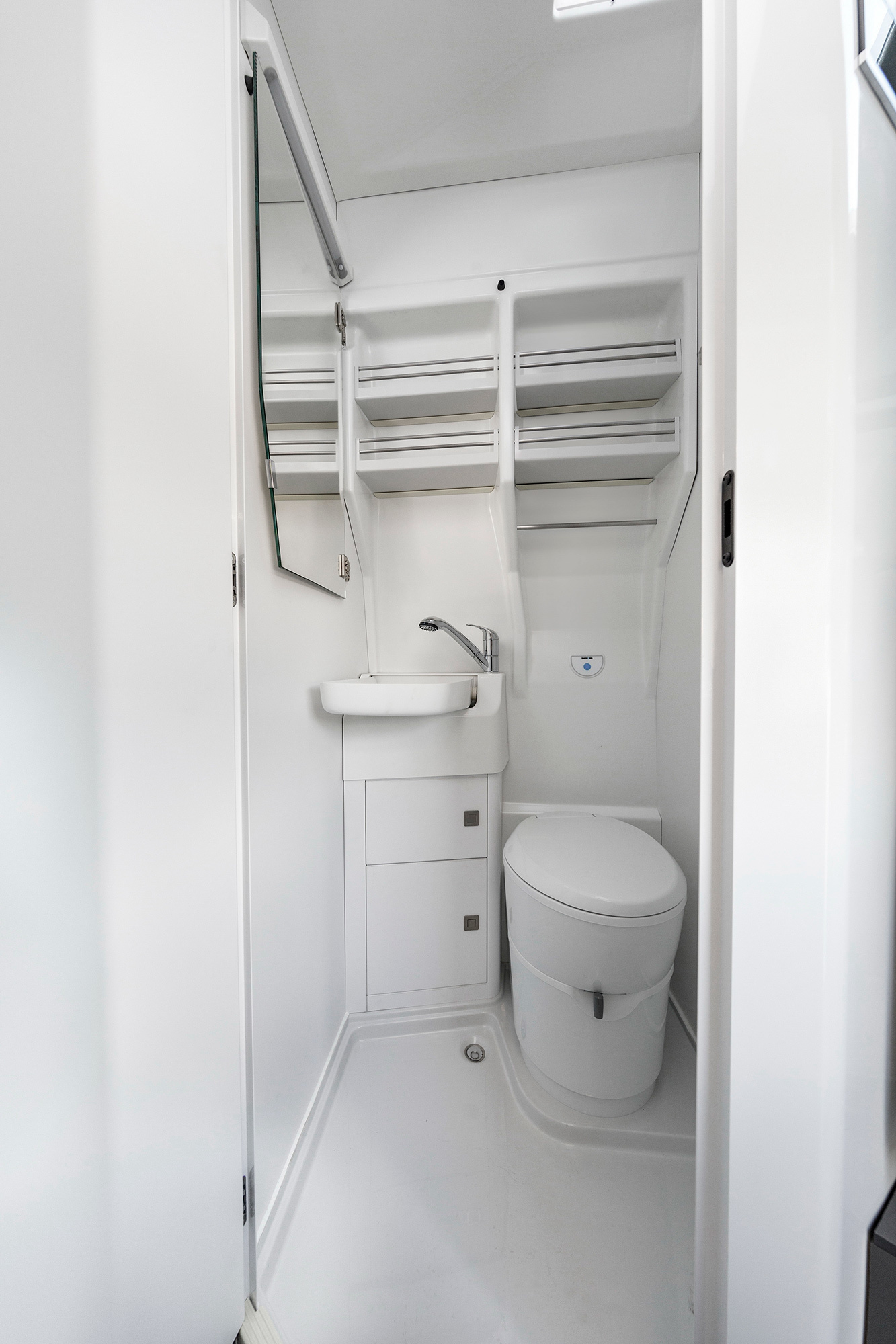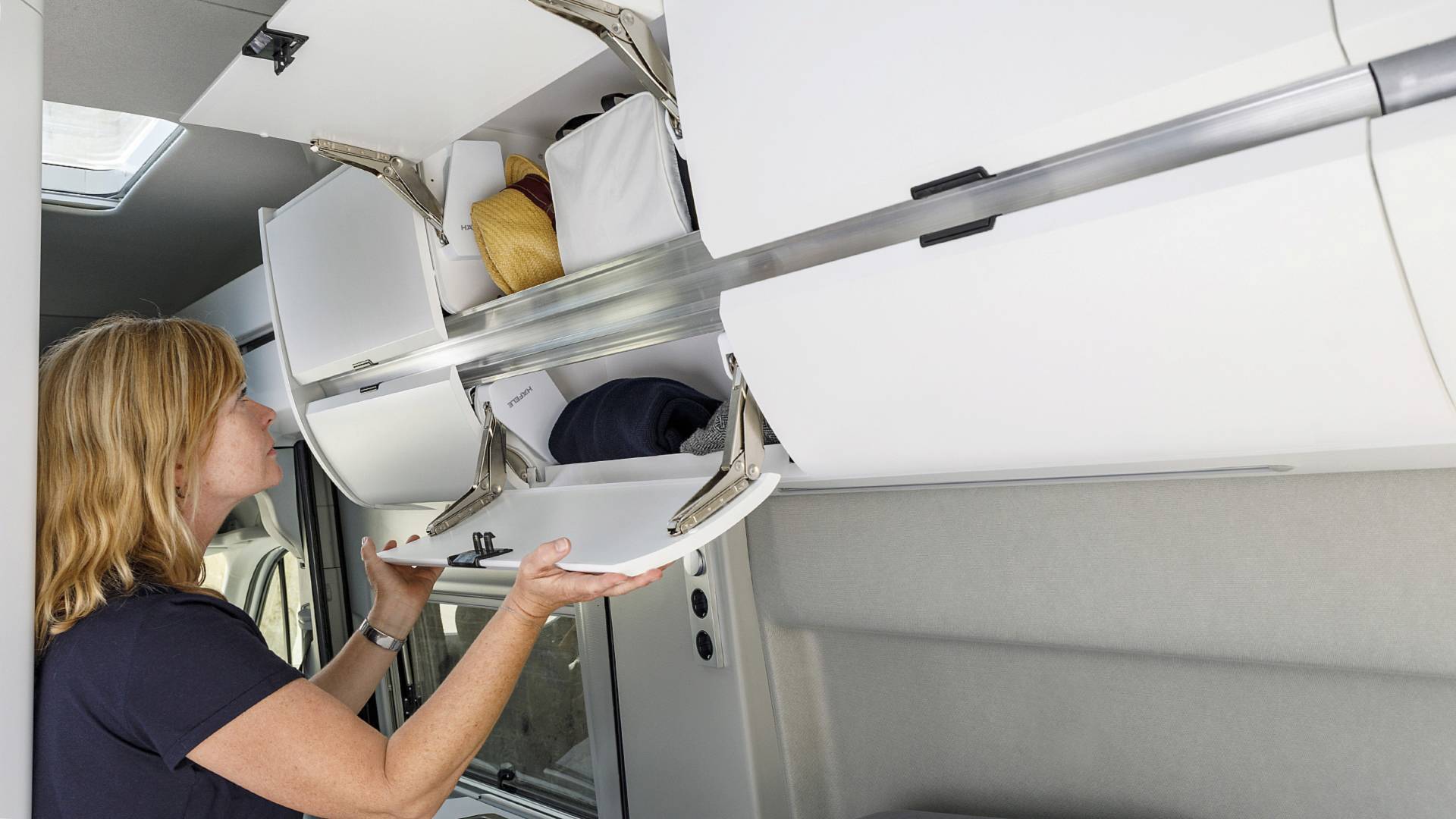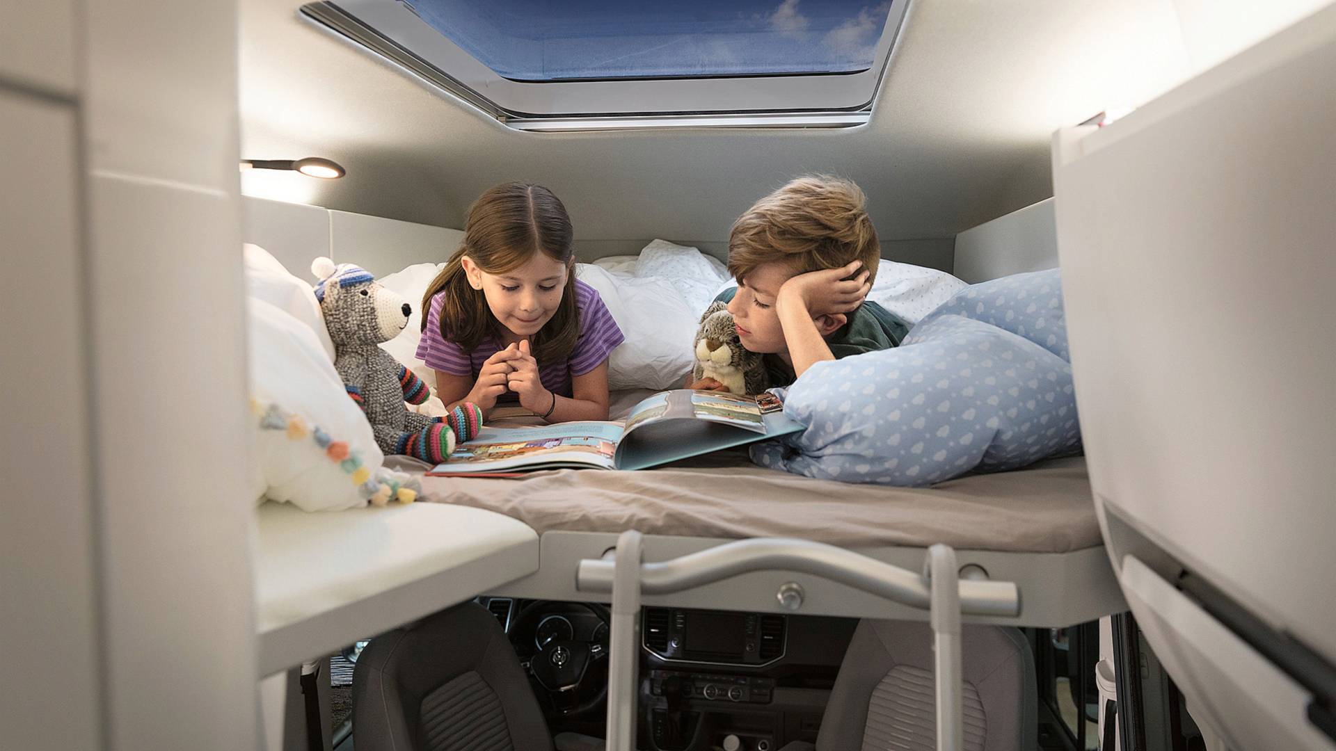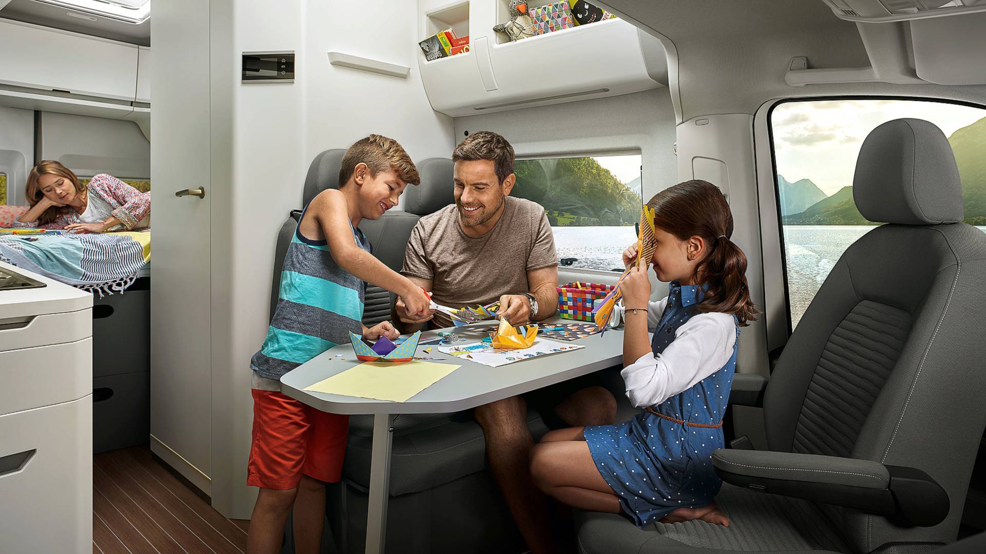Клиентам предложат автомобиль, неплохо подготовленный к жизни в нём. Интерьер выполнен преимущественно в белом цвете. По умолчанию у такой Калифорнии есть газовая плита с двумя варочными панелями, раковина для мытья посуды, обеденный стол на четверых человек, 70-литровый холодильник с морозильной камерой, бак для воды объёмом 110 л, душевая кабина и туалет. Также есть большое спальное место в задней части кузова, которое можно дополнить детской кроватью над сиденьями водителя и переднего пассажира. Ещё в качестве опции предлагаются дополнительный отопитель салона и кондиционер, солнечные батареи на крыше, спутниковая антенна, wi-fi-роутер.