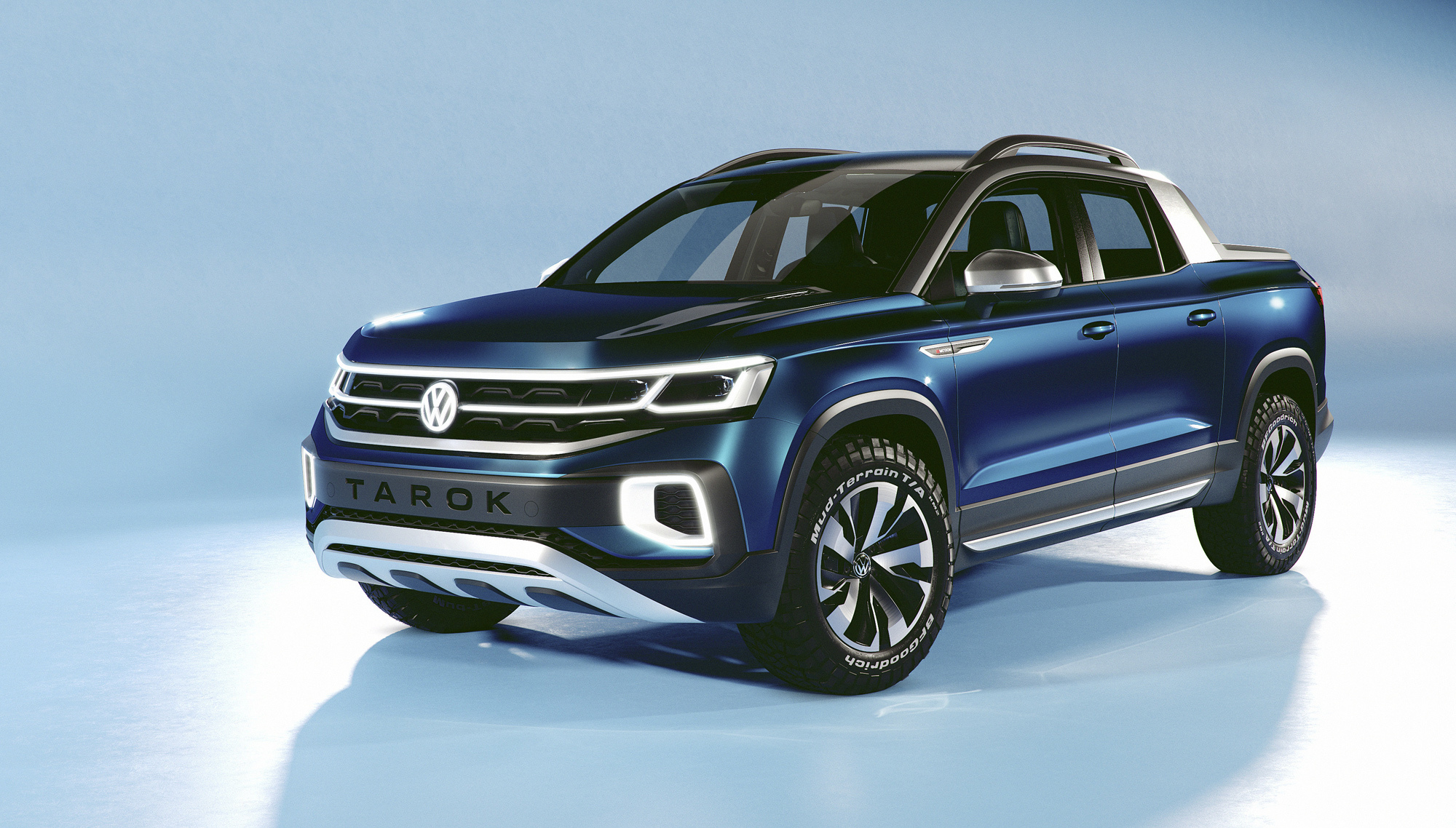 Обещанный недавно пикап рассекречен на автошоу в Сан-Паулу. Автомобиль под названием Volkswagen Tarok Concept разработан практически с нуля, хотя и на вездесущей всефольксвагеновской «поперечной матрице» MQB. Компания обещает, что вскоре серийная версия машины поступит на бразильский рынок почти без изменений. Правда, есть уточнение насчёт мотора.