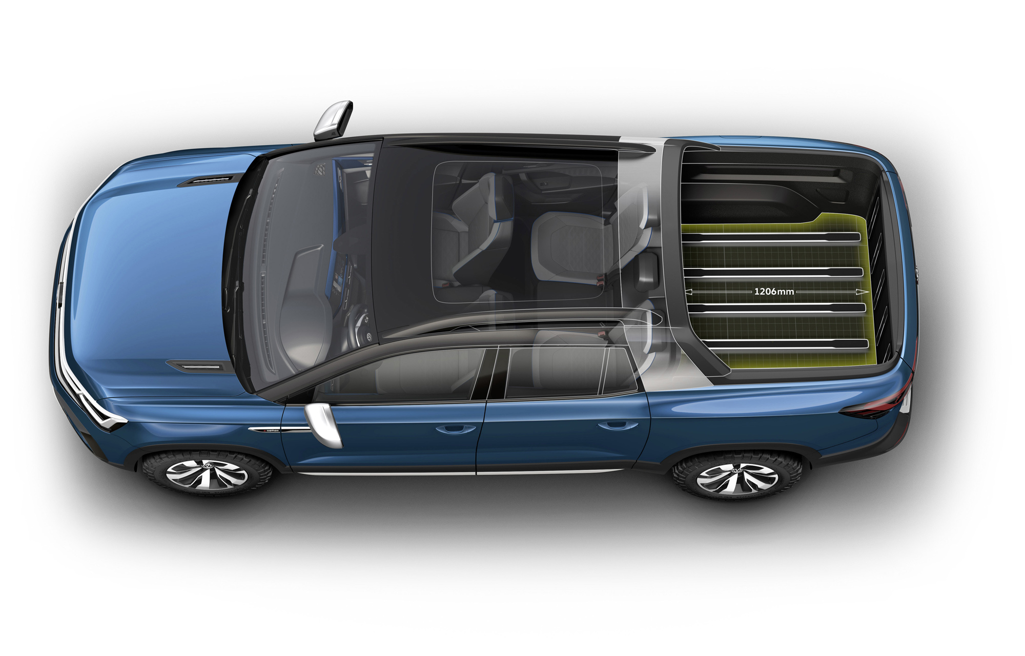 Одна из интересных особенностей модели — расширенная трансформация платформы и салона. За счёт складывающейся стенки пассажирской кабины грузовая платформа может быть продлена в салон. Первоначальная длина платформы в 1206 мм при складывании второго ряда вместе с перегородкой вырастает до 1861 мм. А с откинутым задним бортом пикап может похвастать пространством под груз длиной в 2775 мм.