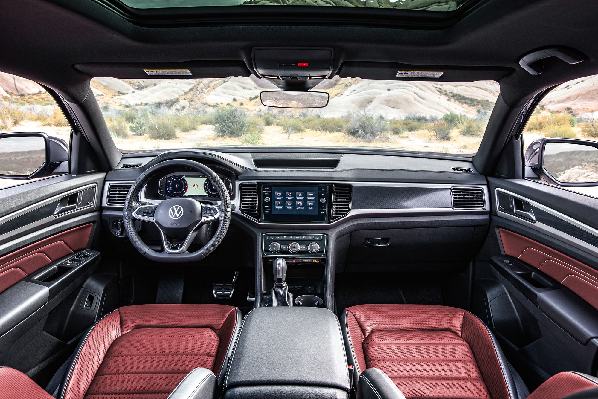 Все Атласы в новом кузове будут комплектоваться автономной системой экстренного торможения и контролем слепых зон. В дорогих версиях предусмотрен адаптивный круиз-контроль Traffic Jam Assist. С ним автомобиль сам держится в полосе до 60 км/ч, останавливается и возобновляет движение, если пауза не превышает трёх секунд. Версия с шестицилиндровым мотором доступна с буксировочным пакетом: с ним кроссовер может тащить за собой до 2270 кг.