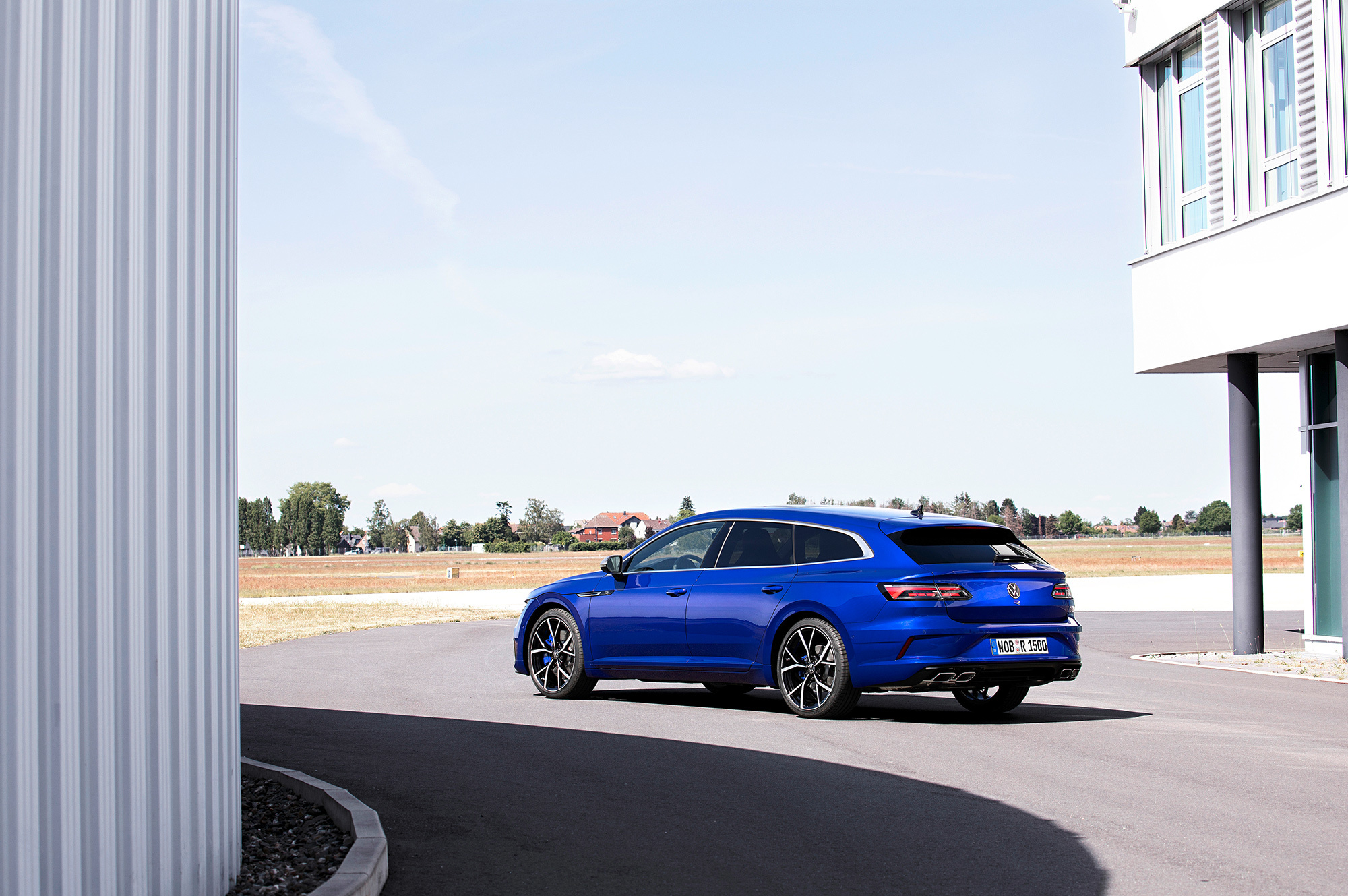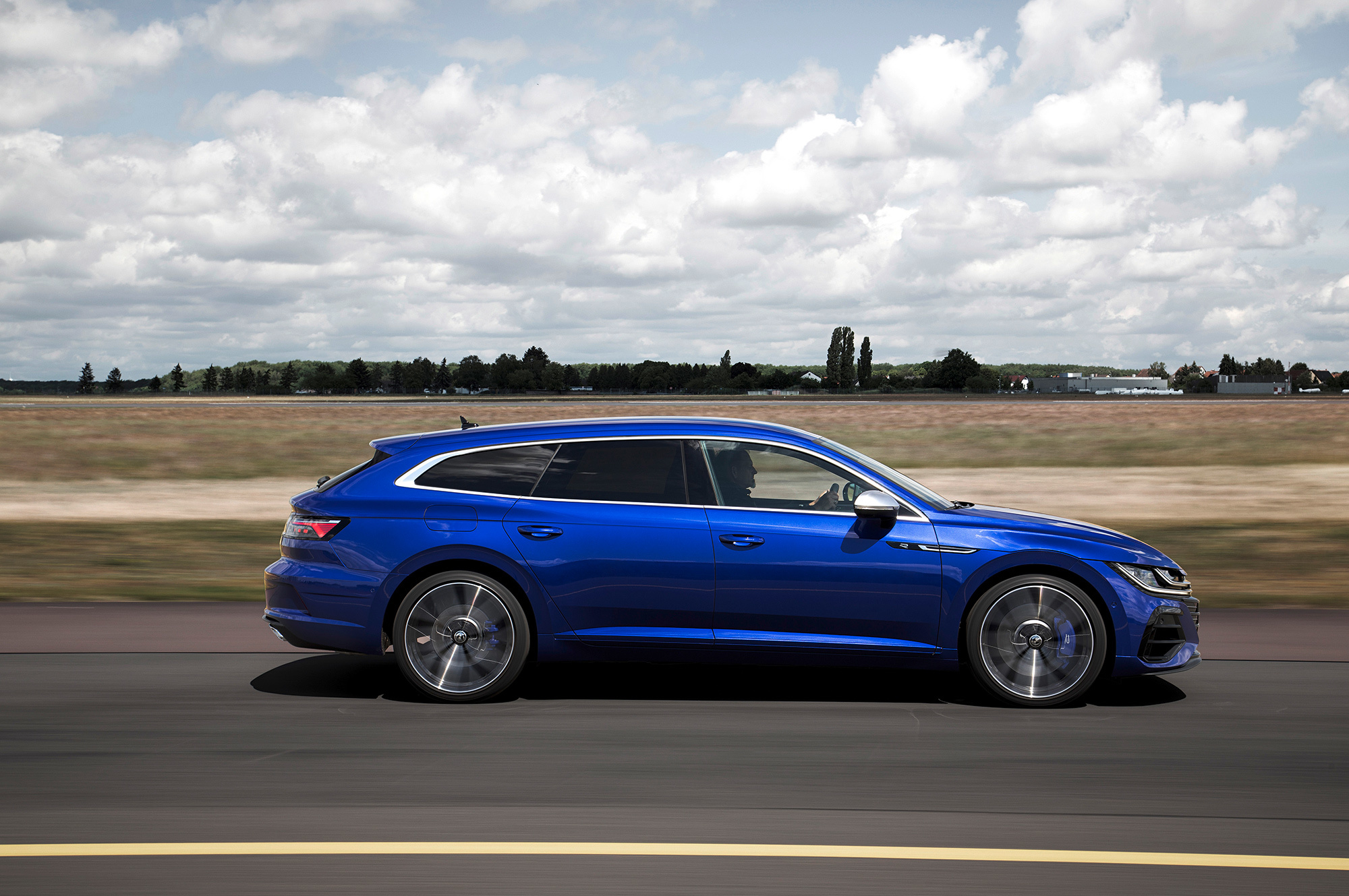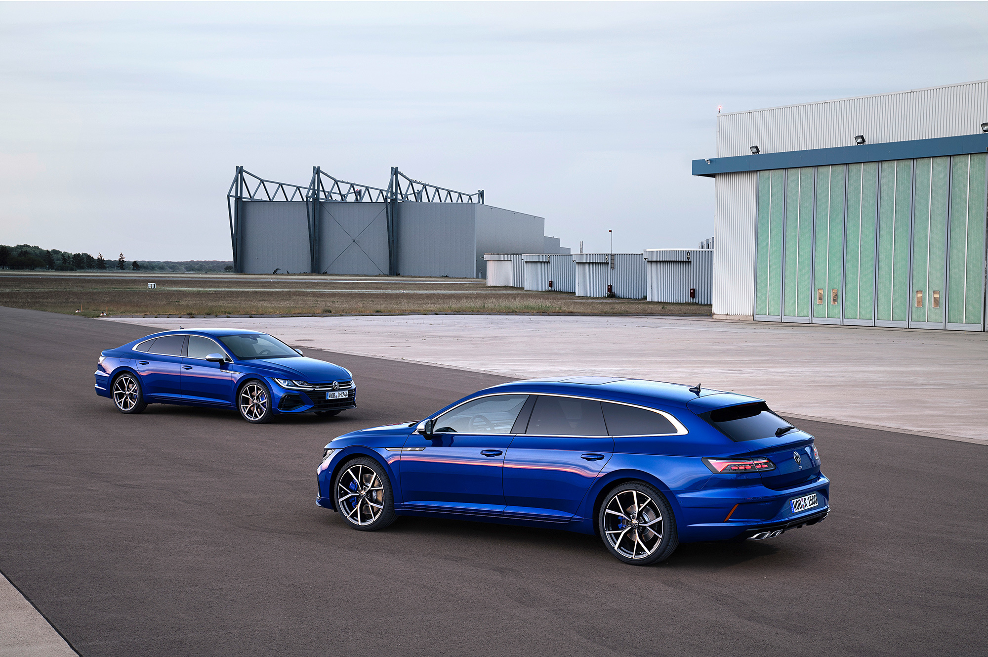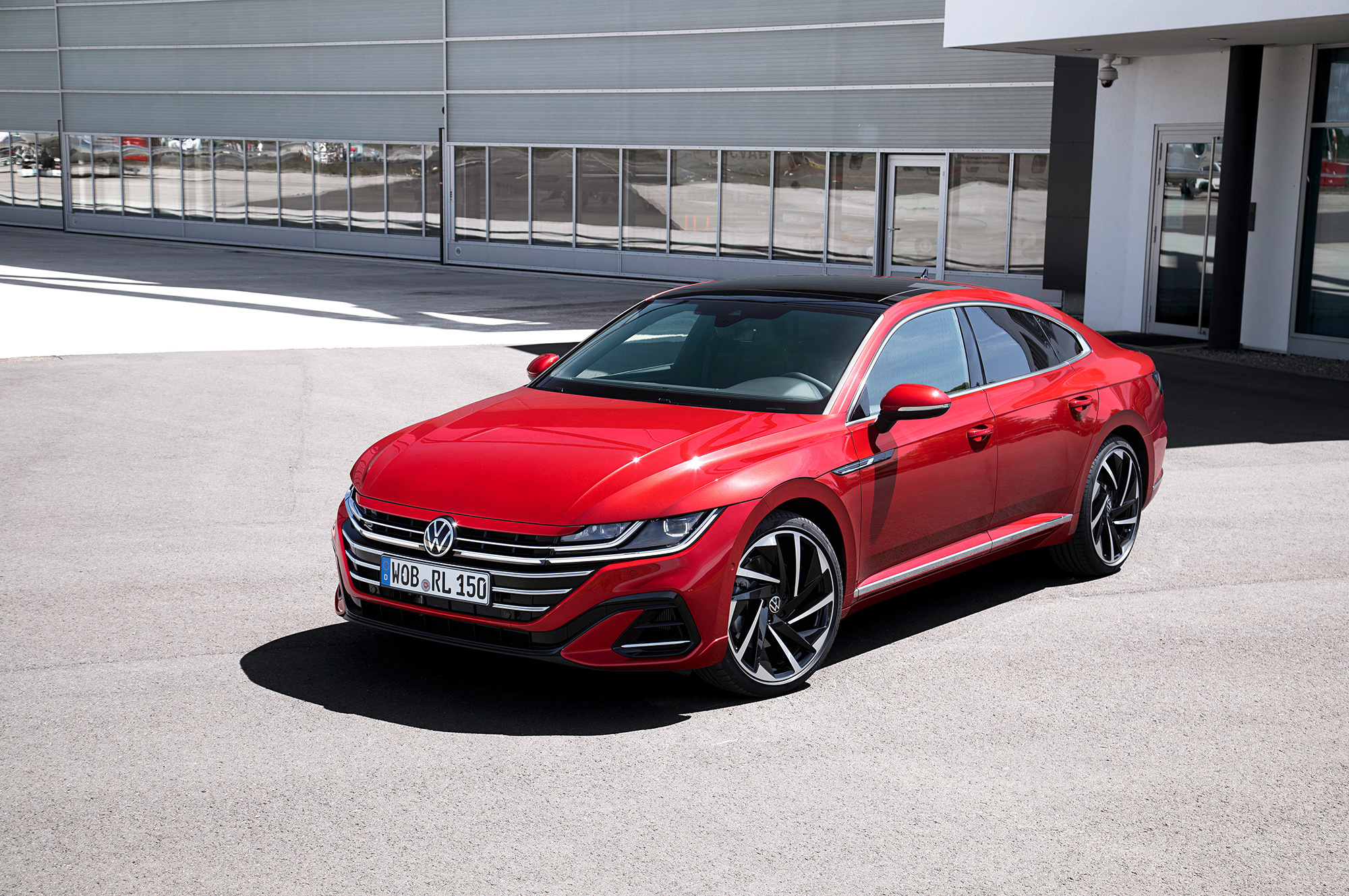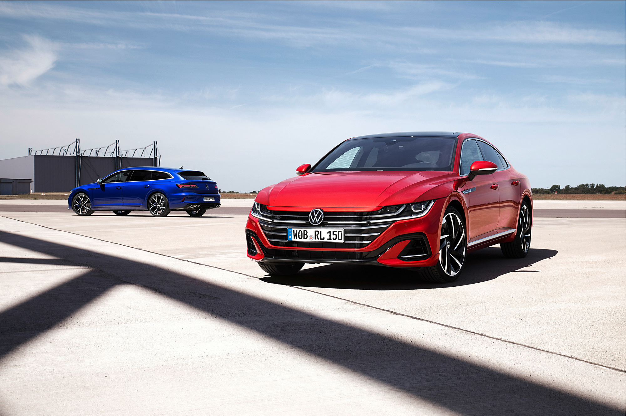 А для тех, кто не прочь пожечь бензин, немцы предложили «заряженную» модель Volkswagen Arteon R. От менее быстрых собратьев её отличает более агрессивная внешность, декор в салоне и спортивные кресла, заниженная подвеска и улучшенные тормоза с крупными суппортами. Силовой агрегат — раскачанный до 320 сил мотор 2.0 TSI EA888 (420 Н•м) и семиступенчатый «робот». Привод у «эрок» изначально полный, но трансмиссия дополнена функцией R-Performance Torque Vectoring. С её помощью электроника имитирует работу заднего активного дифференциала, распределяя тягу между задними колёсами. Скоростные характеристики пока держатся в тайне.