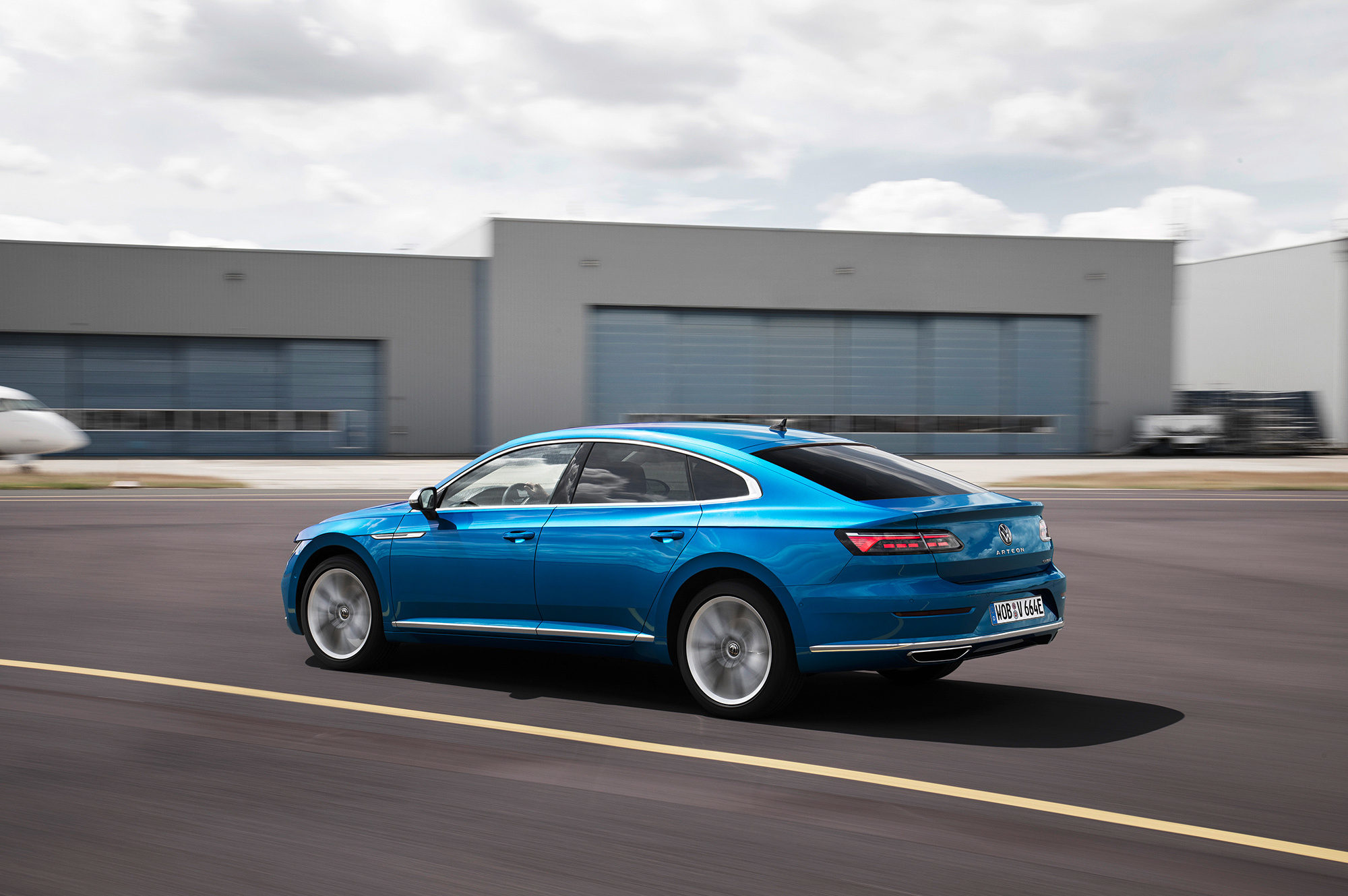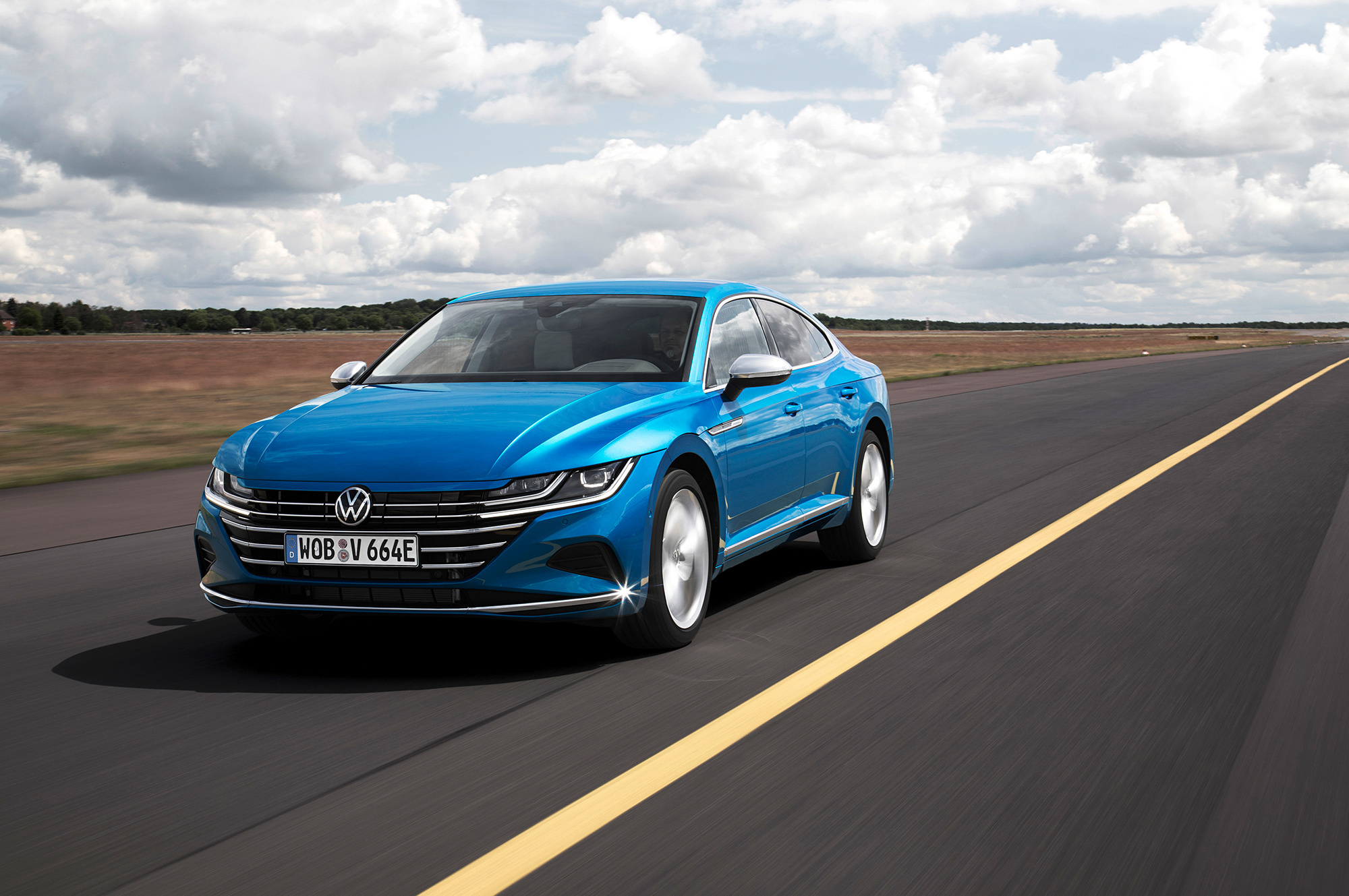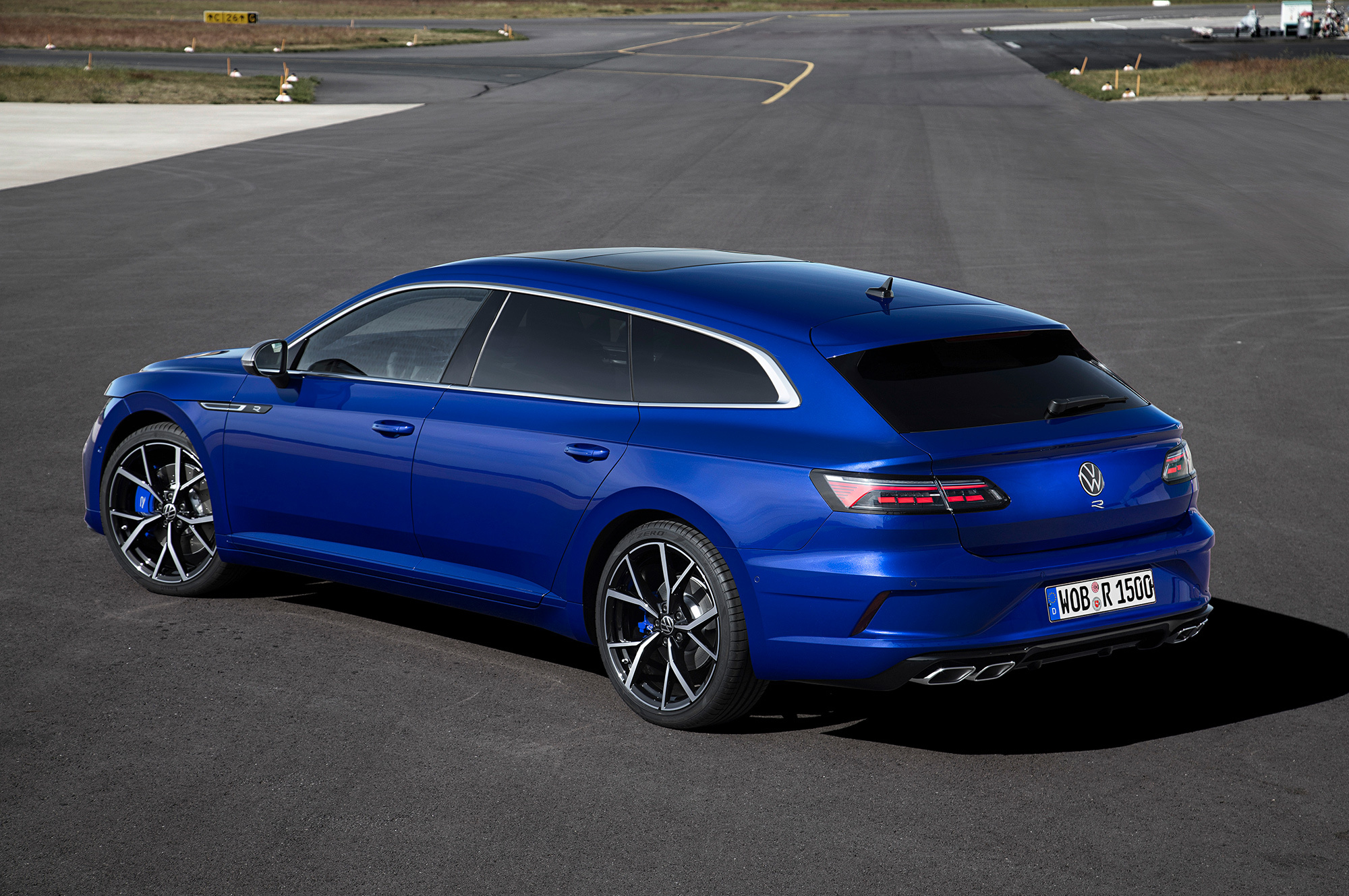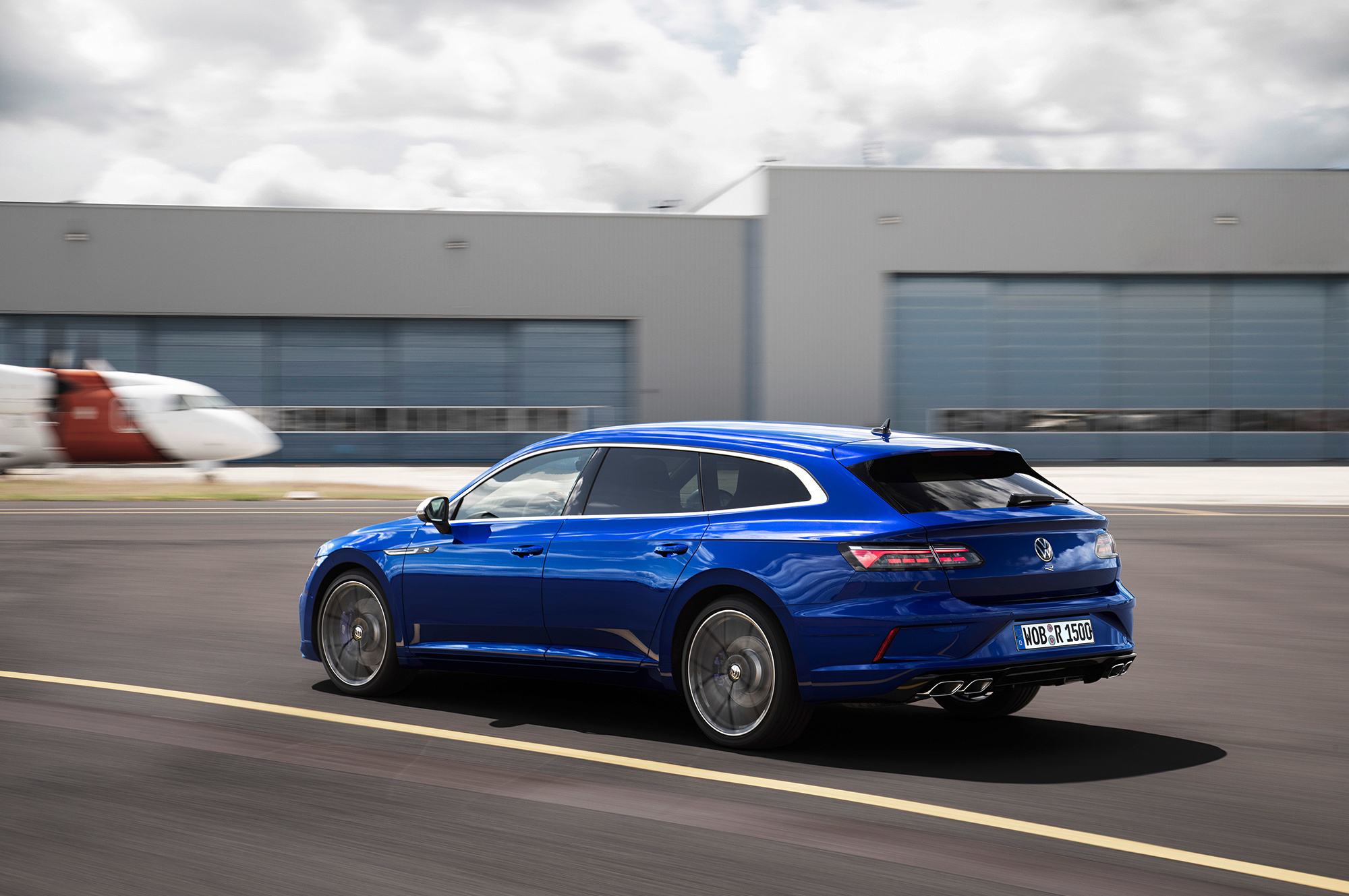 А для тех, кто не прочь пожечь бензин, немцы предложили «заряженную» модель Volkswagen Arteon R. От менее быстрых собратьев её отличает более агрессивная внешность, декор в салоне и спортивные кресла, заниженная подвеска и улучшенные тормоза с крупными суппортами. Силовой агрегат — раскачанный до 320 сил мотор 2.0 TSI EA888 (420 Н•м) и семиступенчатый «робот». Привод у «эрок» изначально полный, но трансмиссия дополнена функцией R-Performance Torque Vectoring. С её помощью электроника имитирует работу заднего активного дифференциала, распределяя тягу между задними колёсами. Скоростные характеристики пока держатся в тайне.