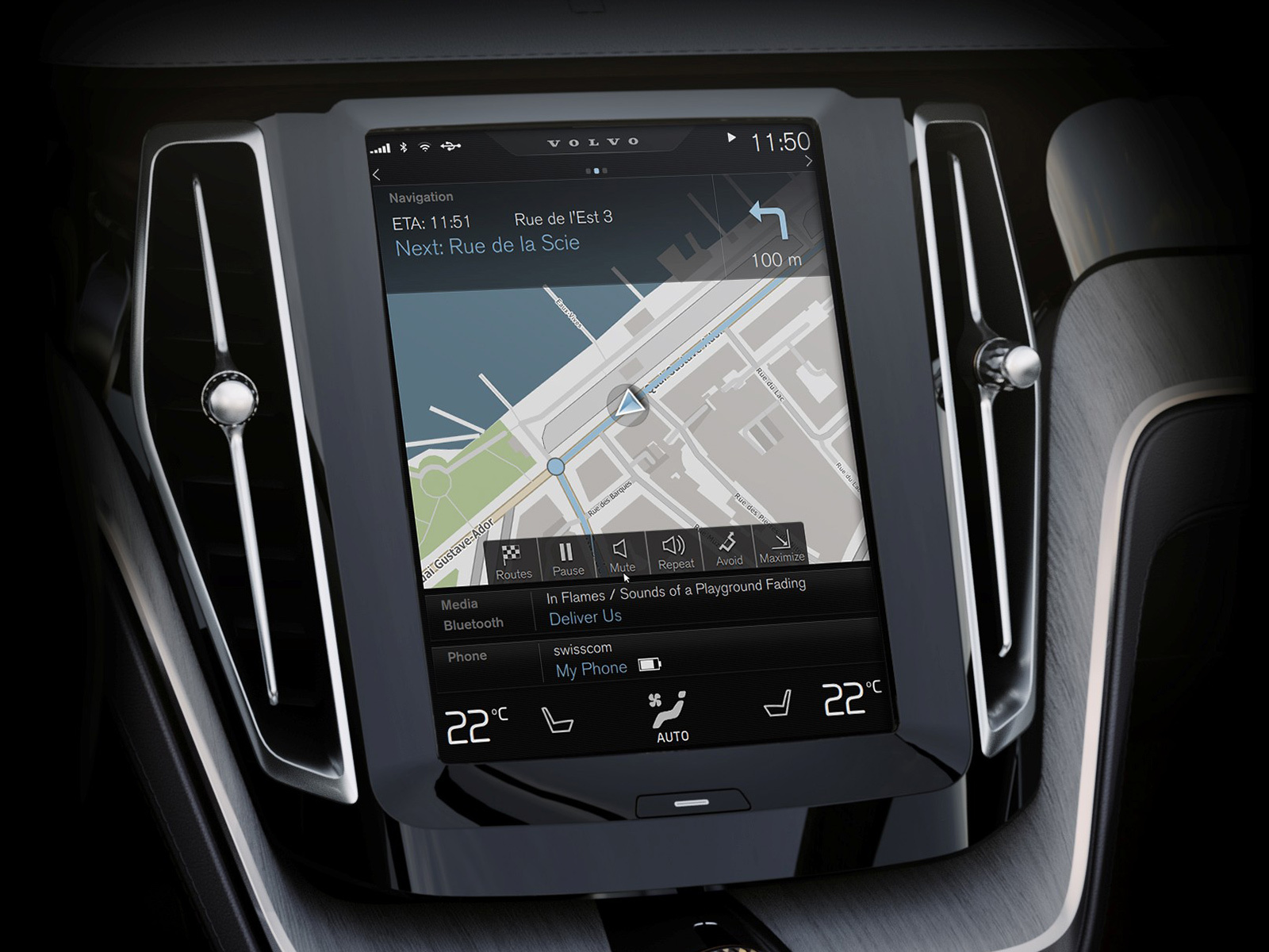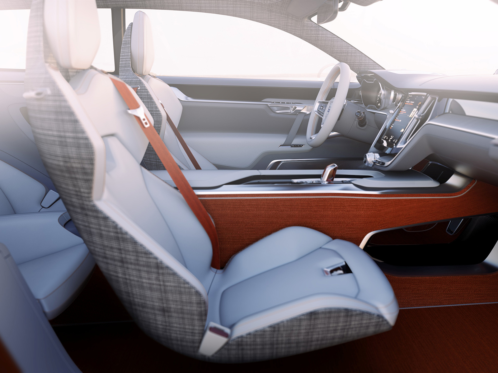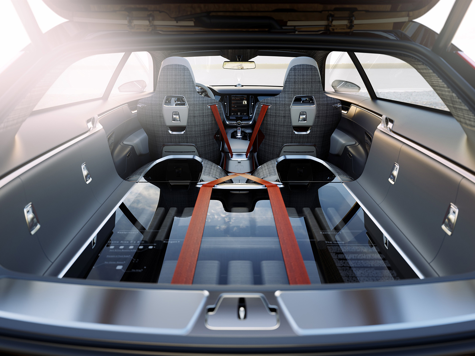 Интерьер шутинг-брейка — это своего рода анонс салонов серийных Volvo. У концепта, как и у Теслы, на центральной консоли есть огромный сенсорный дисплей, управляемый движениями руки. Такие жесты используются в планшетах. С него также настраивается вывод информации на экран в комбинации приборов. Центральный дисплей заменил все кнопки и переключатели за исключением регулировки звука, воспроизведения/паузы, аварийки и обогревателей стёкол. Элементы управления на его поверхности сгруппированы по уровням (сверху идёт полоса для предупреждающих сообщений, ниже навигация, информационно-развлекательная система, телефон, «климат»). Ингенлат считает, что такой интерфейс получился интуитивно понятным и удобным.