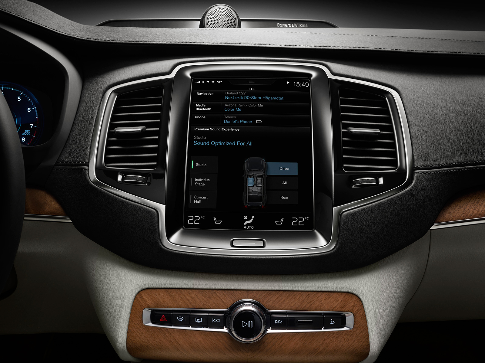 Над «музыкой» авторы модели поработали не менее основательно, чем над оформлением интерьера или разработкой мультимедийного меню. На XC90 появился новый комплекс от компании Bowers & Wilkins, спроектированный в кооперации с самой Volvo: 1400-ваттный усилитель и 19 динамиков. Сабвуфер интегрирован в кузов и использует его скрытые полости для усиления низких частот. А чтобы такая армия «спикеров» не создавала какофонию, в системе используется специальный софт для сверхточного согласования работы динамиков, разбросанных по всему салону. Вольвовцы считают эту системой самой лучшей за всю историю марки и одной из лучших на рынке.