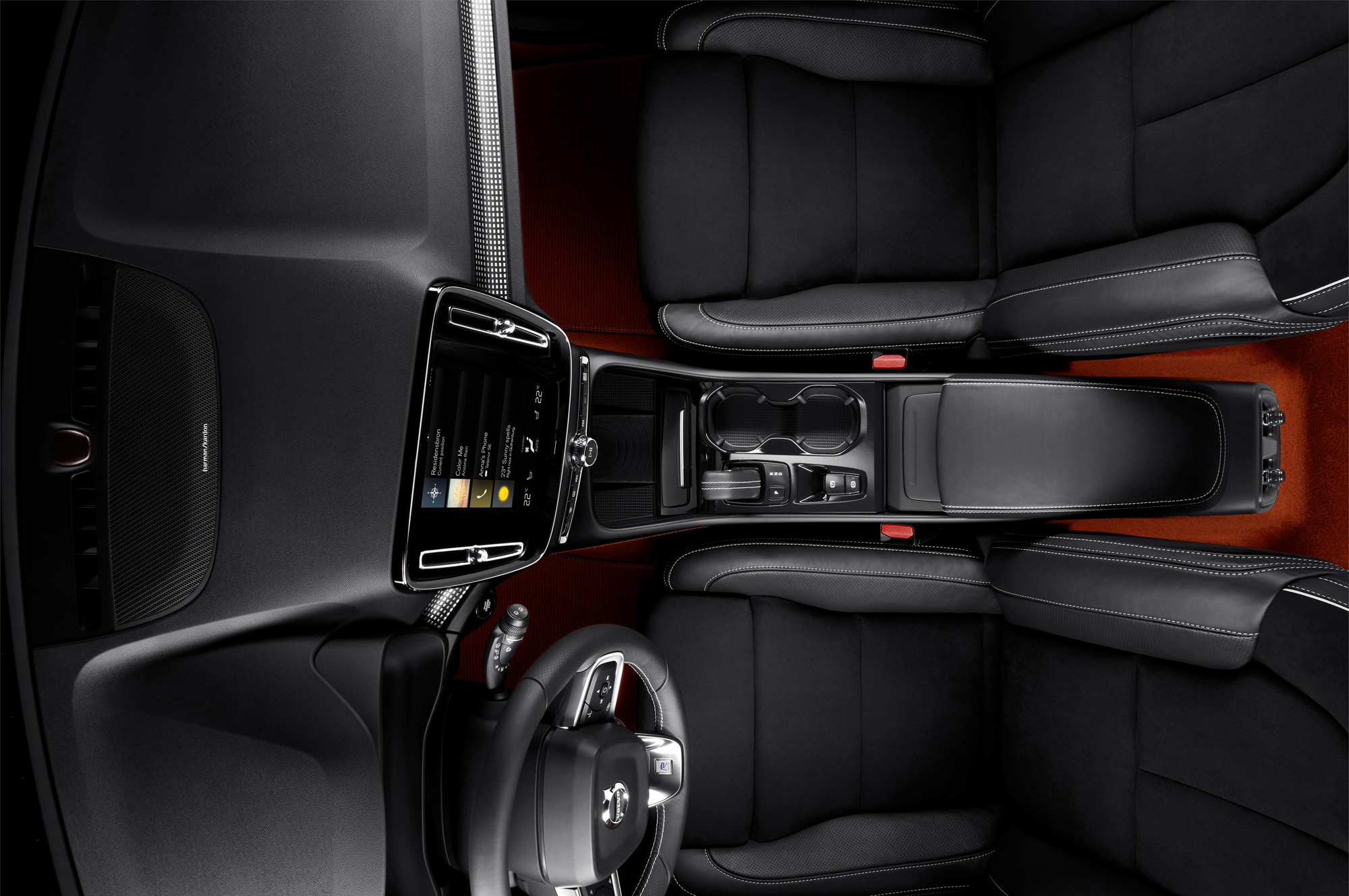 Паркетник получил беспроводную зарядку смартфона, выход в Сеть, двухзонный климат-контроль, светодиодные фары и, конечно, полуавтономную систему вождения Pilot Assist. Она берёт на себя рулевое управление, газ и тормоз на скоростях до 130 км/ч. Технология Volvo On Call позволяет планировать маршрут ещё на смартфоне и переносить план в навигацию на борту.