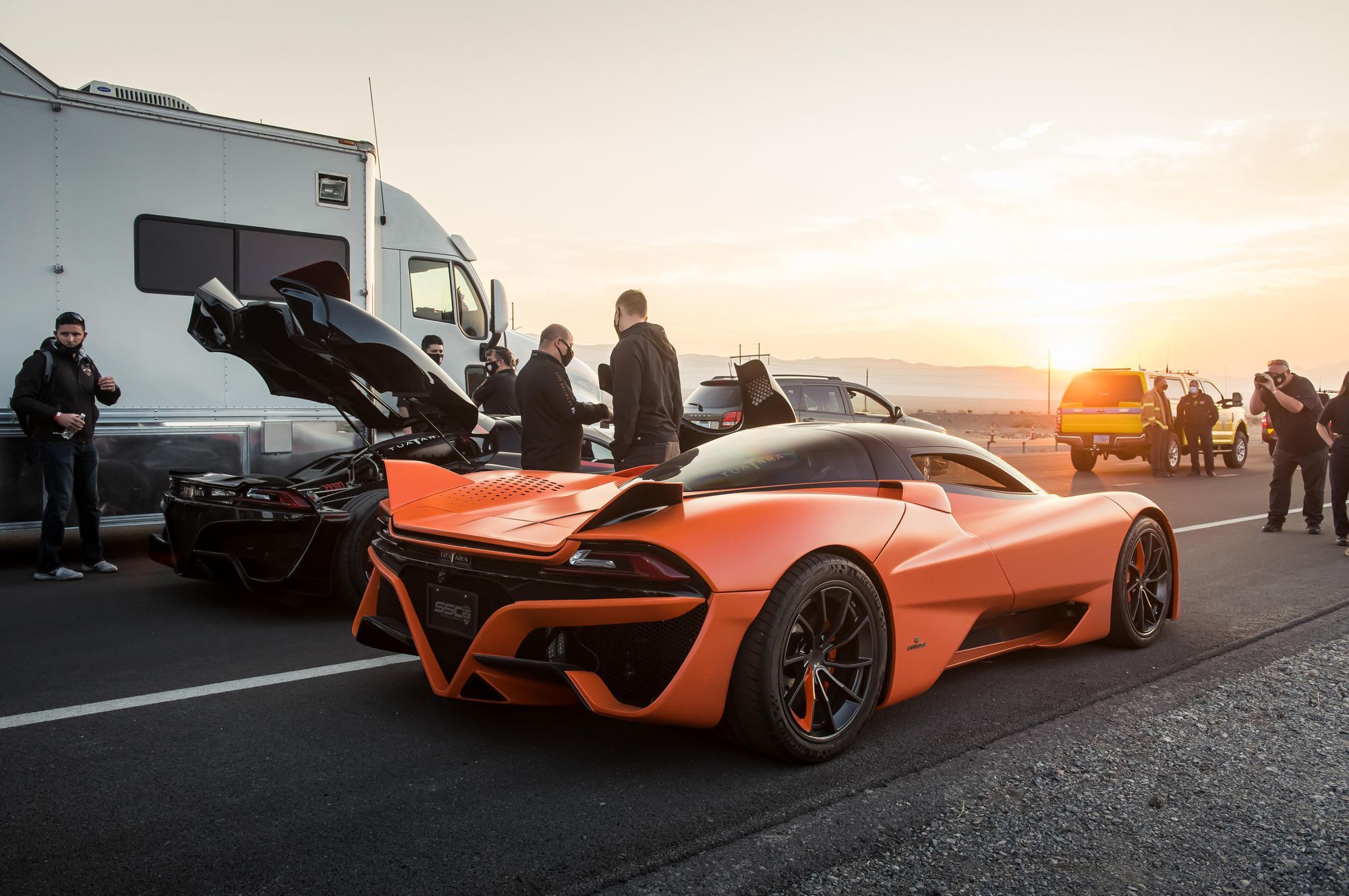 При этом, по словам Уэбба, гиперкар настолько уверенно разгонялся, что ускорение с 500 до 532 км/ч заняло всего пять секунд, а поехать ещё быстрее помешал лишь сильный боковой ветер. Следует напомнить, что SSC Tuatara — среднемоторный заднеприводный автомобиль сухой массой 1247 кг, который почти полностью сделан из углеволокна (монокок, внешние панели, элементы подвески и даже колёса). Мотор — двухнаддувный V8 5.9, который в зависимости от типа топлива выдаёт 1369 или 1774 л.с. (на обычном бензине или биоэтаноле E85 соответственно). Всего американцы планирует сделать 100 экземпляров рекордного купе по цене $1,6 млн каждое (124,5 млн рублей). Поставки клиентам уже начались.