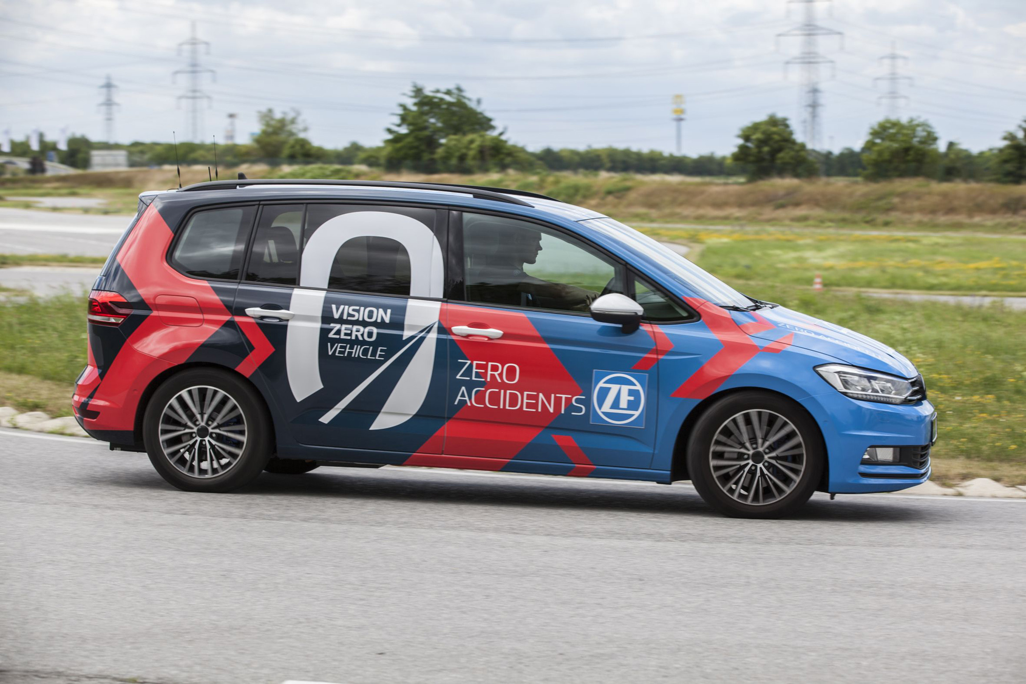 Крупный поставщик автокомпонентов ZF построил прототип Vision Zero, в котором внедрил целую россыпь технологий, связанных с безопасностью, комфортом и экологией. Это и различные новые ассистенты, и аварийные системы, и автопилот, и электропривод, и ещё несколько разработок. Перекроенный снизу доверху Volkswagen Touran — это мечта ZF о мире транспорта с нулевым выхлопом и без ДТП. Отсюда и название автомобиля, и девизы Zero emissions и Zero accidents, начертанные на бортах прототипа.