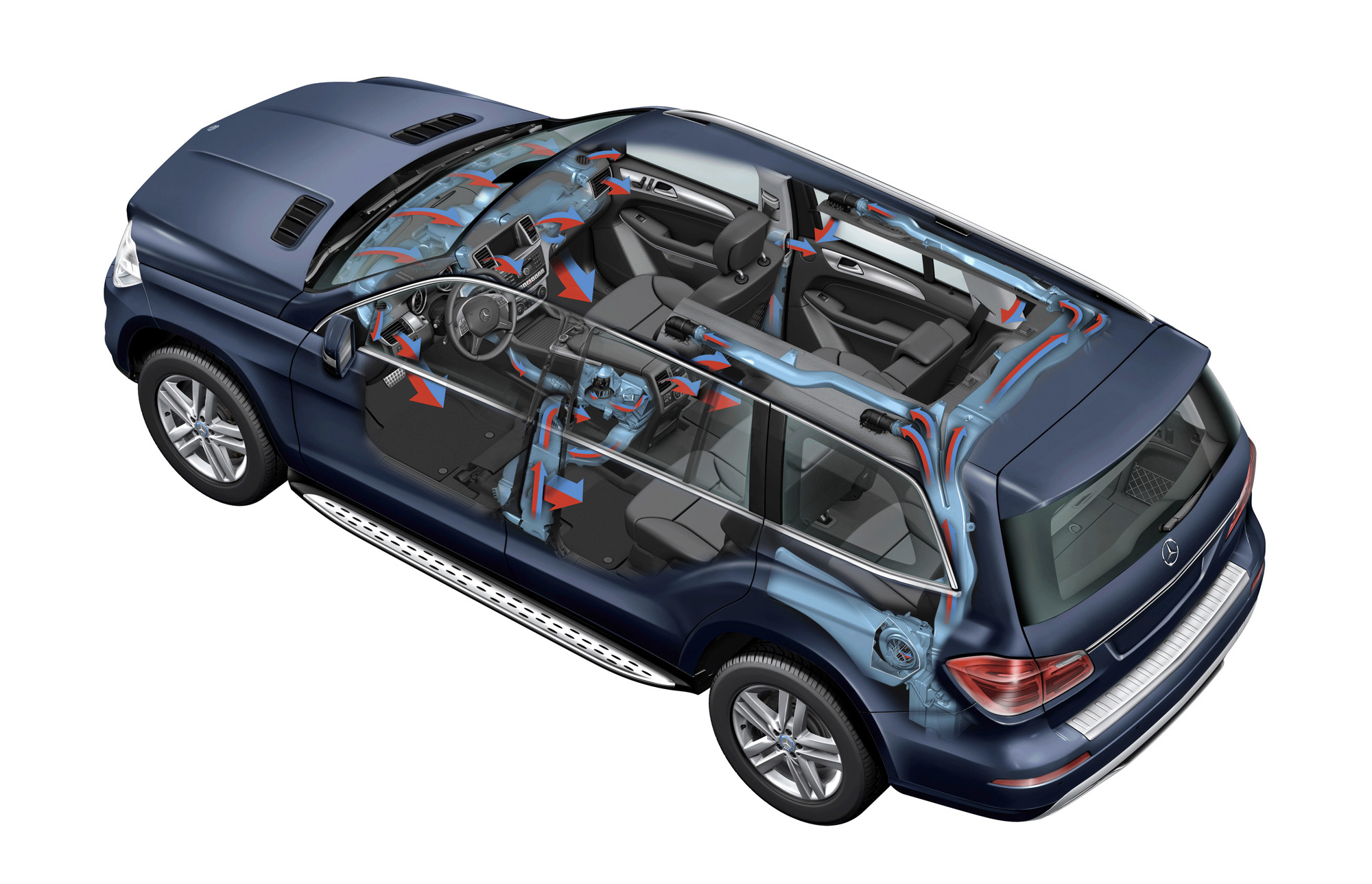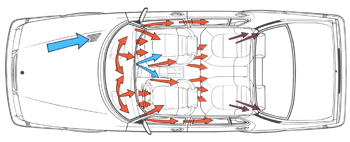 Парадокс заключается в том, что мощности отопителей и кондиционеров достигают 8–10 кВт, тогда как для поддержания комфортной температуры человеческого тела необходимо в 50–100 раз меньше. Дело в том, что основную энергию приходится тратить на нагрев или охлаждение самого автомобиля, в частности элементов интерьера. Около трети поверхности тела пассажира соприкасается с сиденьем ― именно поэтому подогрев или вентиляция (охлаждение) сидений при малых затратах энергии дают большой эффект. Но климатическая система в любом случае должна подавать в салон не менее пяти-десяти кубометров воздуха в минуту, в зависимости от размера машины.