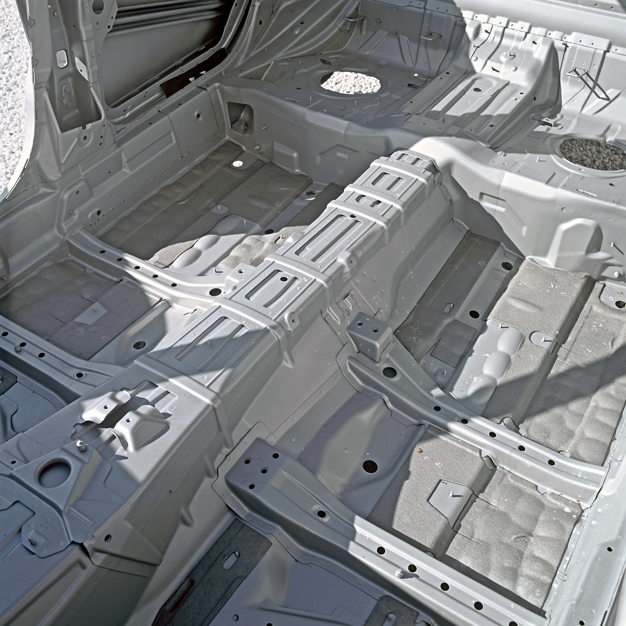 Если всё сделано верно на предыдущих стадиях, много её не потребуется. Например, для Гольфа седьмого поколения использовалось на четыре килограмма меньше шумоизоляционных материалов, чем для предшественника. Современные мягкие маты и ковры ― технологические шедевры, точно отформованные под контуры и рельеф моторного щита или пола. В салоне совсем без покрытия не обойтись, ибо оно выполняет ещё и теплоизоляционную функцию. Но не удивляйтесь, например, голому металлу вокруг запасного колеса в багажнике — это значит, по мнению производителя, шум успешно погашен первичными мерами.