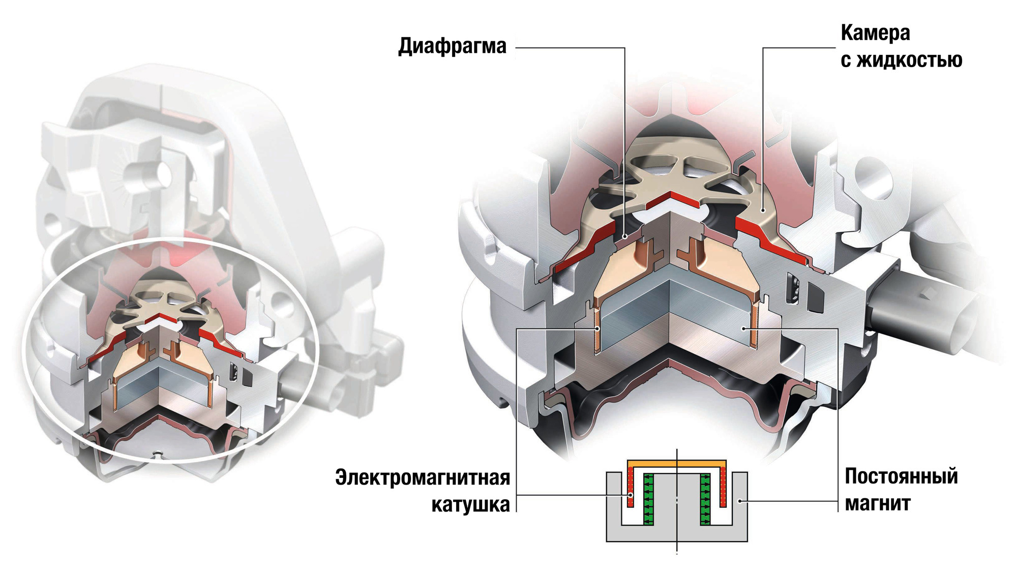 Сегодня гидравлические опоры силового агрегата, объединяющие в себе упругую и гасящую функцию (как дуэт пружины и амортизатора в подвеске), перестали быть экзотикой. Наиболее эффективны активные опоры, создающие движение в противофазе к вибрации либо изменяющие свою жёсткость в зависимости от условий.