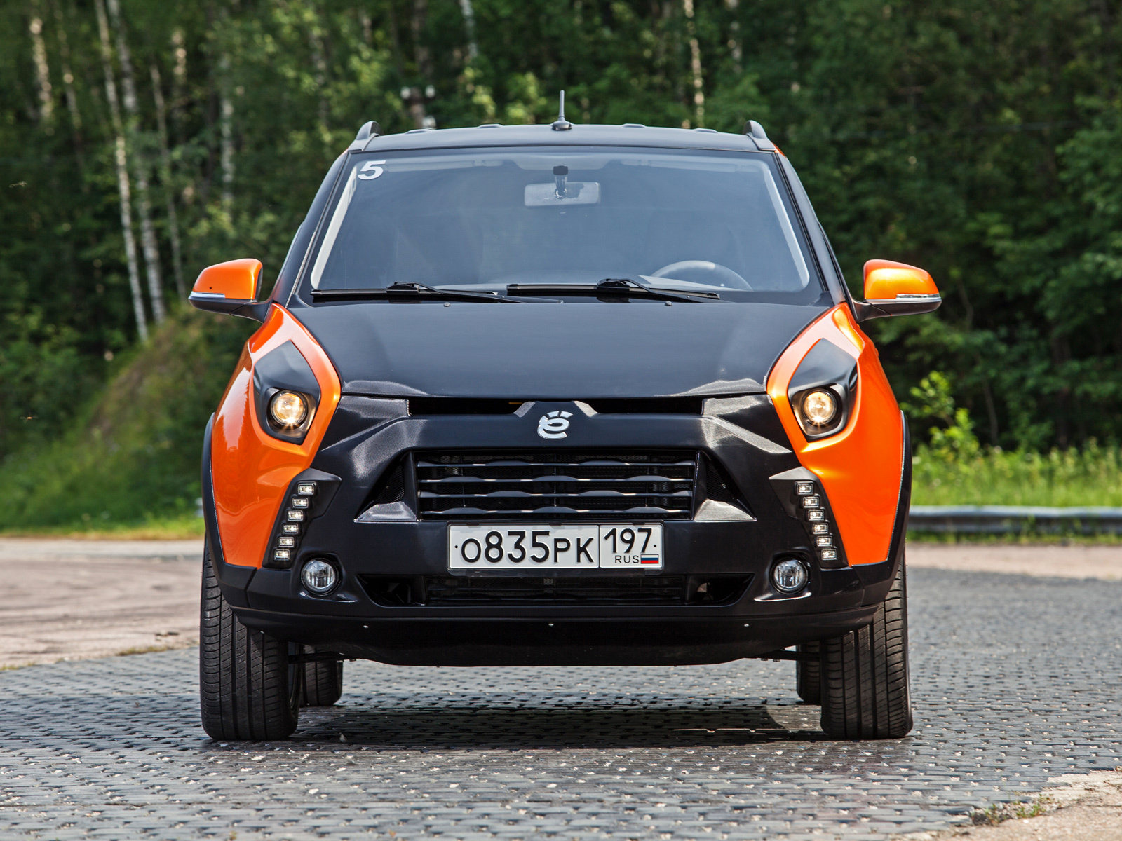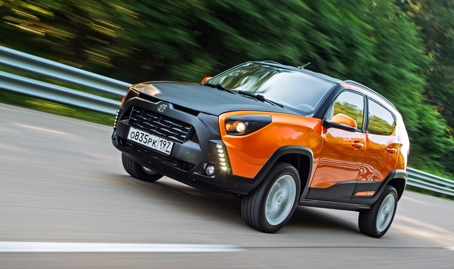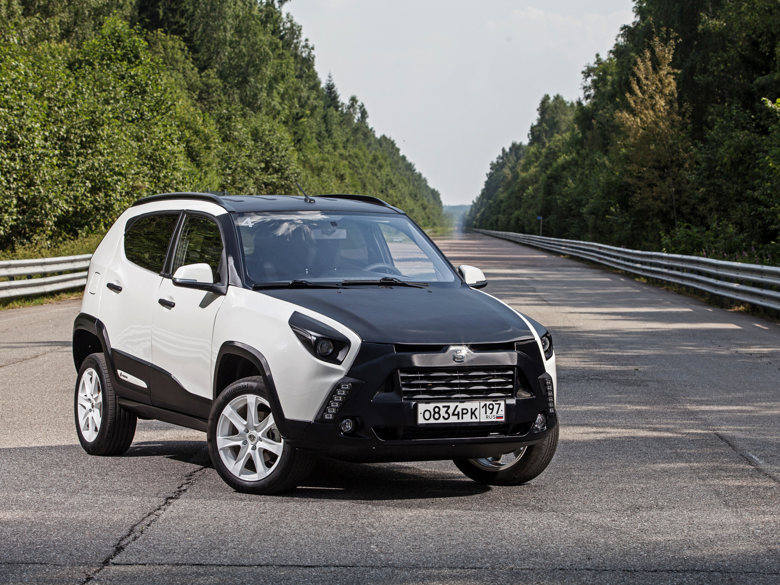 Дизайн так дизайн. А вот и его автор Андрей Трофимчук. Молодой человек из Белоруссии, участвовавший в поиске облика кроссовера Marussia и выдумавший ё-концепт, рассказывает, что стояла задача сделать непохожий на другие образ, со стопроцентной узнаваемостью. Это было очень сложно, но Андрей считает, что справился. К машине он подошёл не как к скульптуре, украшенной декором, что слишком традиционно, а как к графическому объекту. Контрастному, двуцветному. Ё-кроссовер, по словам Трофимчука, — это светлое тело, одетое в чёрный скафандр.