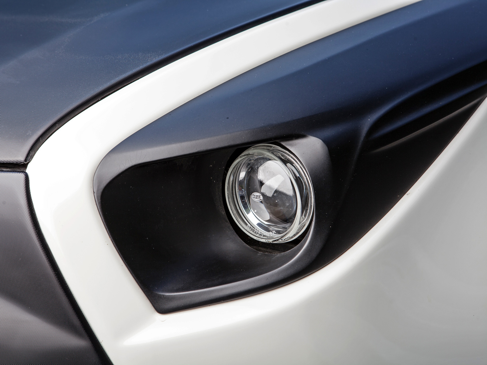 Особая гордость Андрея — фара, вынесенная на крыло. Облик, по мнению ведущего дизайнера, получился эпатажный (ёшники вообще любят это слово). И дизайн экстерьера — это единственное, что в ё-мобиле сегодня готово на 95%. Чёрный скафандр будет неизменным у всех ё-кроссоверов, окрас тела может варьироваться в дюжине цветов (единственный однотонный вариант — чёрный с чёрным). Возможны изменения исключительно технологического характера, вроде того чтоб короб фары сделать из чуть другого пластика, но кардинальных перемен ждать ни к чему.