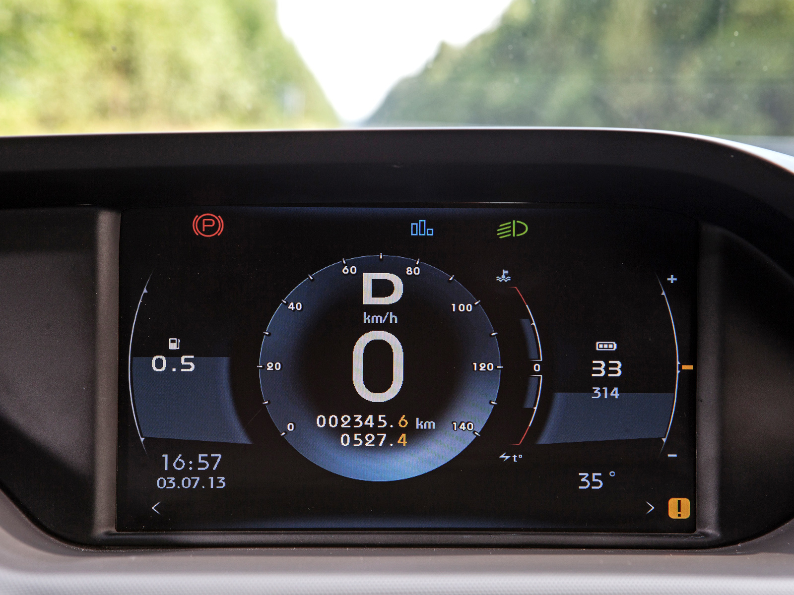 Впереди выгороженный конусами прямик с пологой переставкой. Нажимайте, говорят, газ в пол. О’кей, продавливаю педаль и вместо ожидаемого электромобильного разгона с лихим подхватом получаю заунывный набор скорости. До сотни за 9,9 с? Не похоже. А ведь это ускорение за счёт электроэнергии в суперконденсаторах. Пиковую мощность силовой установки при разгоне инженеры ё-АВТО оценивают в 100 кВт (136 л.с.), из них 50% приходятся на генератор, другая половина — на ионисторы. Могло бы и выстрелить, да нет.