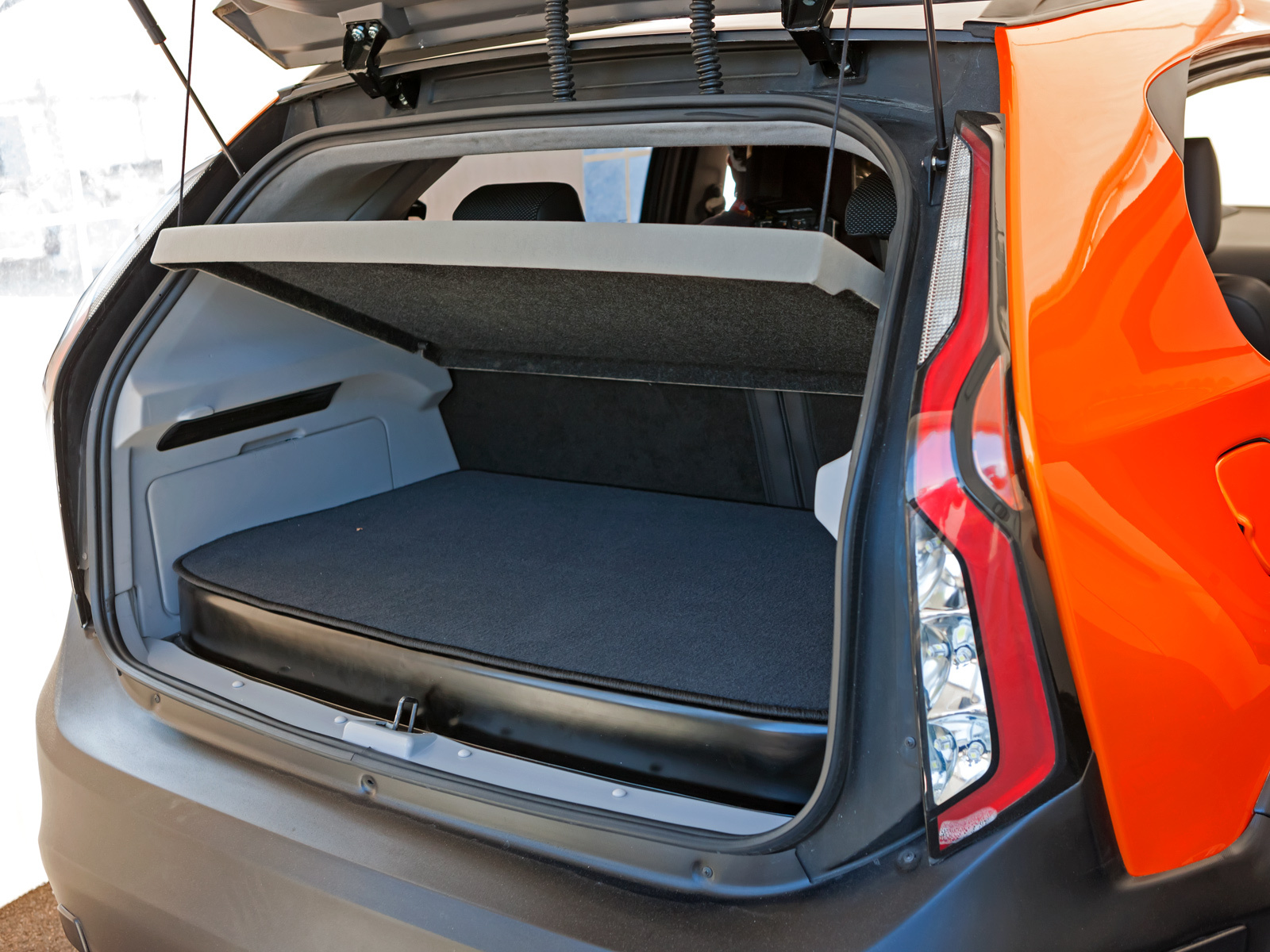 Двухтопливность изначально была одним из китов ё-философии. Теперь бравурных речей о метане как топливе будущего не меньше, но газ — это опция: мотор в любом случае будет потреблять бензин и метан, а от баллонов в заднем свесе можно отказаться. Багажник они сжирают почти полностью, и не остаётся места для запасного колеса.