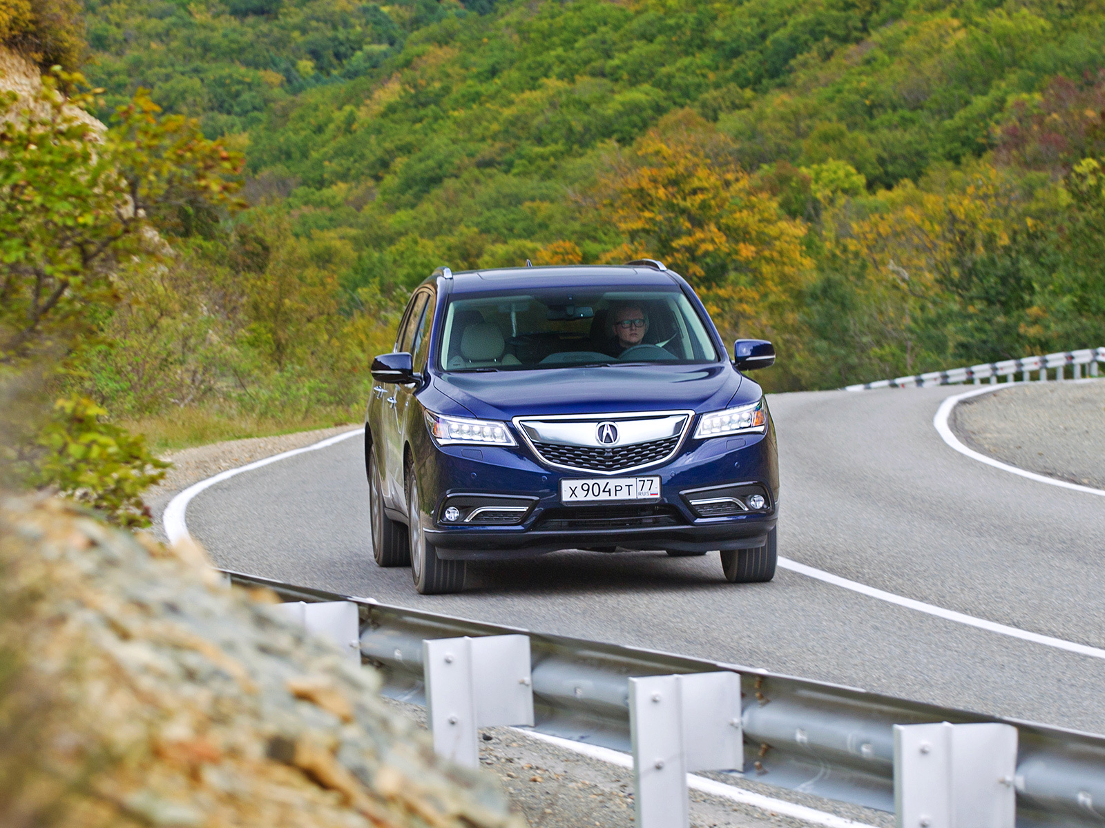 И это чувствуется, когда представляешь себя испытателем Акуры, а серпантины между Новороссийском и Анапой принимаешь за коварную Северную петлю. Как легко и понятно мчит по дорогам не лучшего качества японский кроссовер. Lexus RX? Infiniti JX35? Да в этой дисциплине ровня Акуре MDX — лучшие европейские аналоги! На высокой скорости да в поворотах MDX слушается руля, как тигры — братьев Запашных. Двухтонный исполин отзывается на движение рулём мягко, но шустро и логично, а шасси при быстрой езде будто бы зажимается, не досаждая большими кренами. Кроссовер едет по-европейски плотно, но при этом короткоходная подвеска не позволяет колёсам терять контакт с дорогой: даже когда под колёса попадаются крупные неровности, паркетник держится за намеченную водителем траекторию.