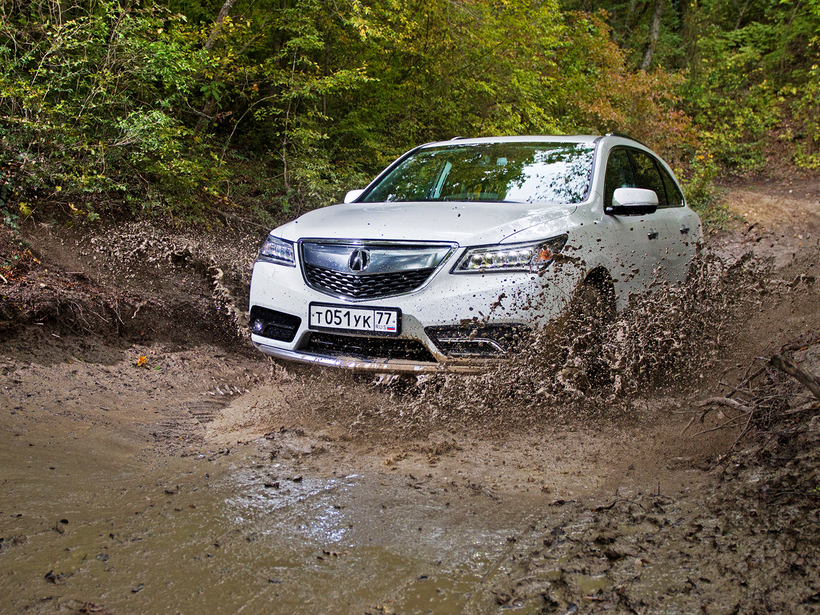 В быстрых поворотах можно заправлять кроссовер в вираж одной только тягой. Чуть обозначил рулём направление, накинул дров в топку — и MDX почти без промедления уходит в лёгкий занос, добавляя на заднее внешнее колесо нужную для таких фокусов тягу. Водитель может даже протянуть кроссовер в управляемом скольжении, которое легко контролируется или рулём, или тягой. И система стабилизации даёт водителю свободу, вступая в действие только в тревожные моменты. После такого даже признанные европейские лидеры сегмента кроссоверов по части езды на асфальте кажутся слегка скучноватыми на фоне семиместной Акуры MDX, в которой всё сложнее представить домохозяйку с кучей детей. Блестяще!