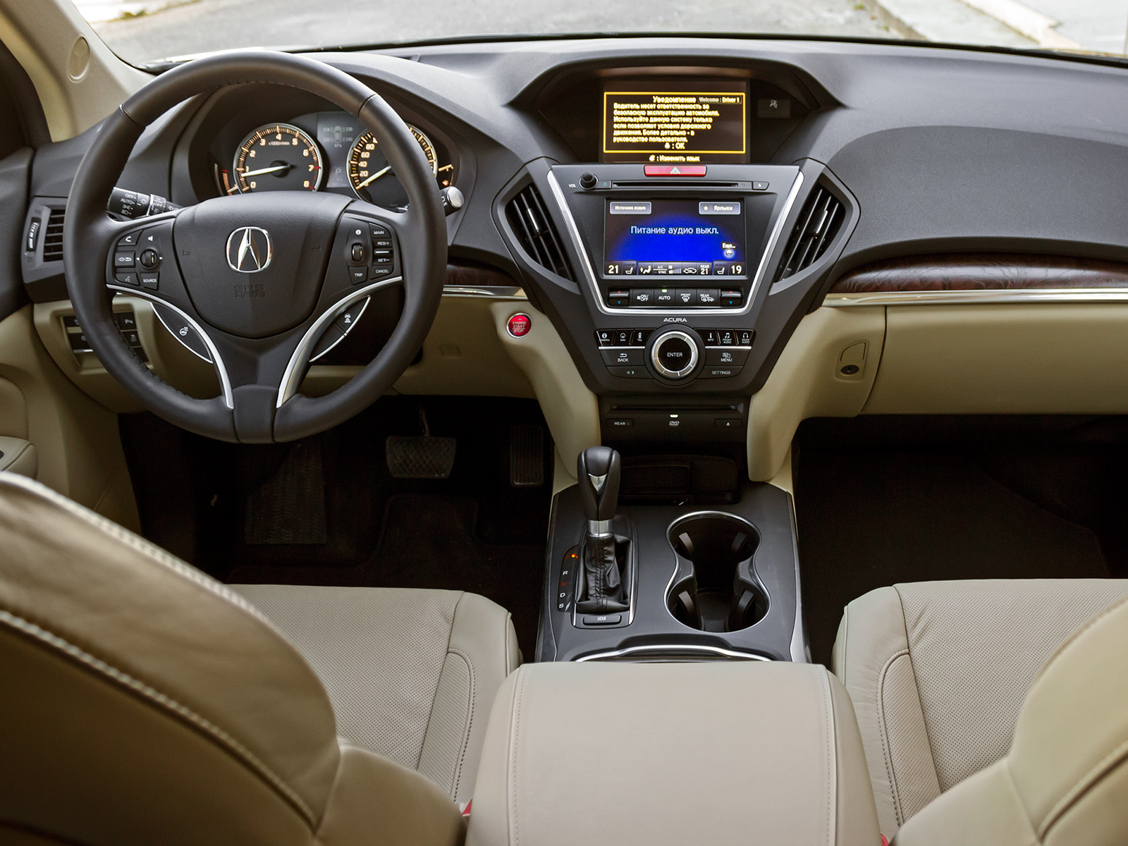Итак, Acura MDX — полноразмерный семиместный кроссовер длиной 4936 мм, шириной 1960 и высотой 1730 мм. По габаритам MDX ощутимо больше Лексуса RX (4770 х 1885 х 1725), но слегка недотягивает до Infiniti JX35 (4989 х 1960 х 1742). Аналогичная ситуация с колёсной базой: у MDX она составляет 2818 мм, а у моделей Lexus RX и Infiniti JX35 — 2740 и 2900 мм соответственно. В Акуре нет проблем с простором на первых двух рядах — свободного места хватит всем! Но вот галёрка подойдёт или детям, или совсем субтильным взрослым: дефицит пространства ощущается как над головой, так и перед коленями. В этом плане Infiniti предпочительней: всё-таки габаритное преимущество даёт о себе знать. Зато у Акуры MDX клиренс равен 200 мм (плюс 15 мм по сравнению с американской версией), а у Лексуса RX и Infiniti JX35 — 190 и 180 мм соответственно.