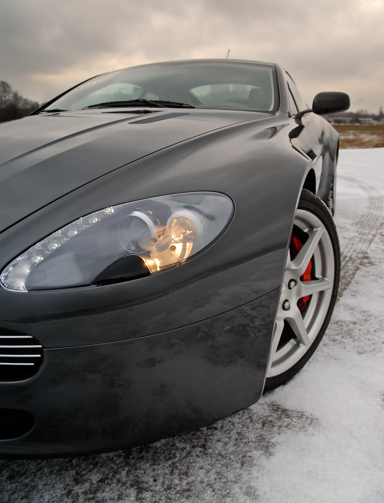 Стоп! Какой, к чертям собачьим, снег?! Это же Aston Martin V8 Vantage, породистый суперкар с классической компоновкой и богатой родословной. Что он тут вообще делает? Ему уже давно пора стоять в тёплом гараже и ждать лета. Но некоторые считают