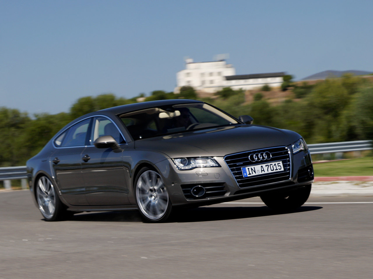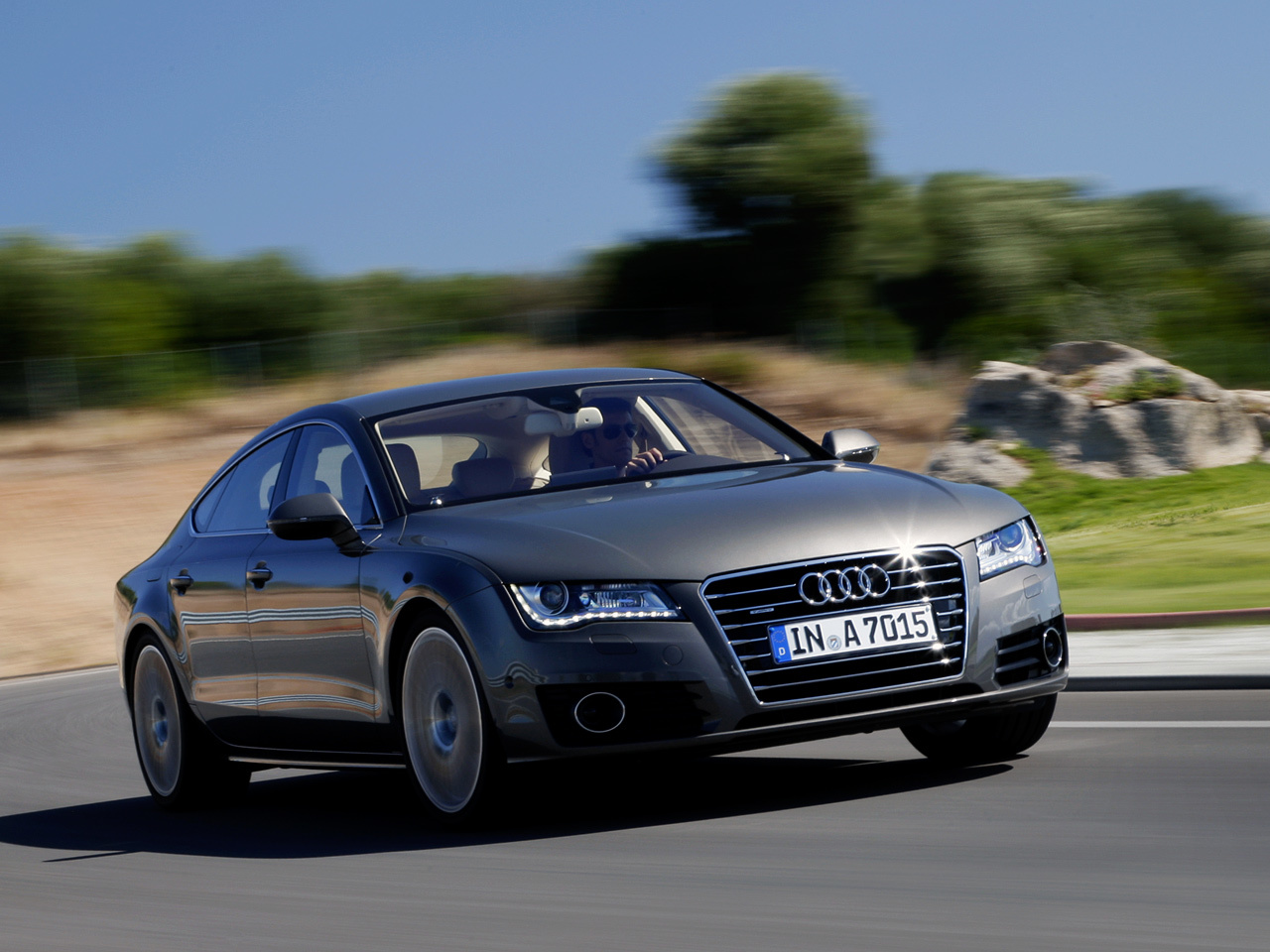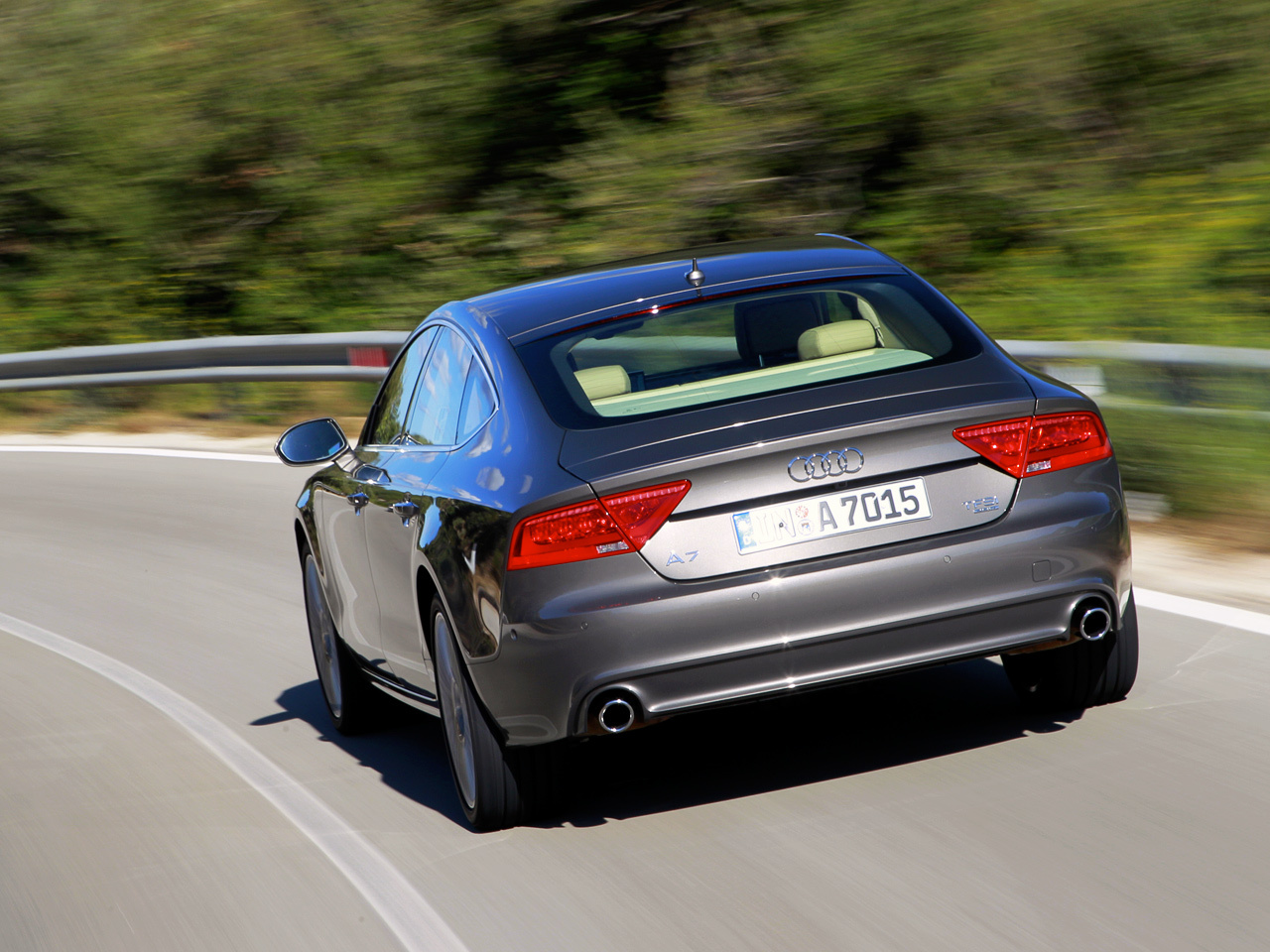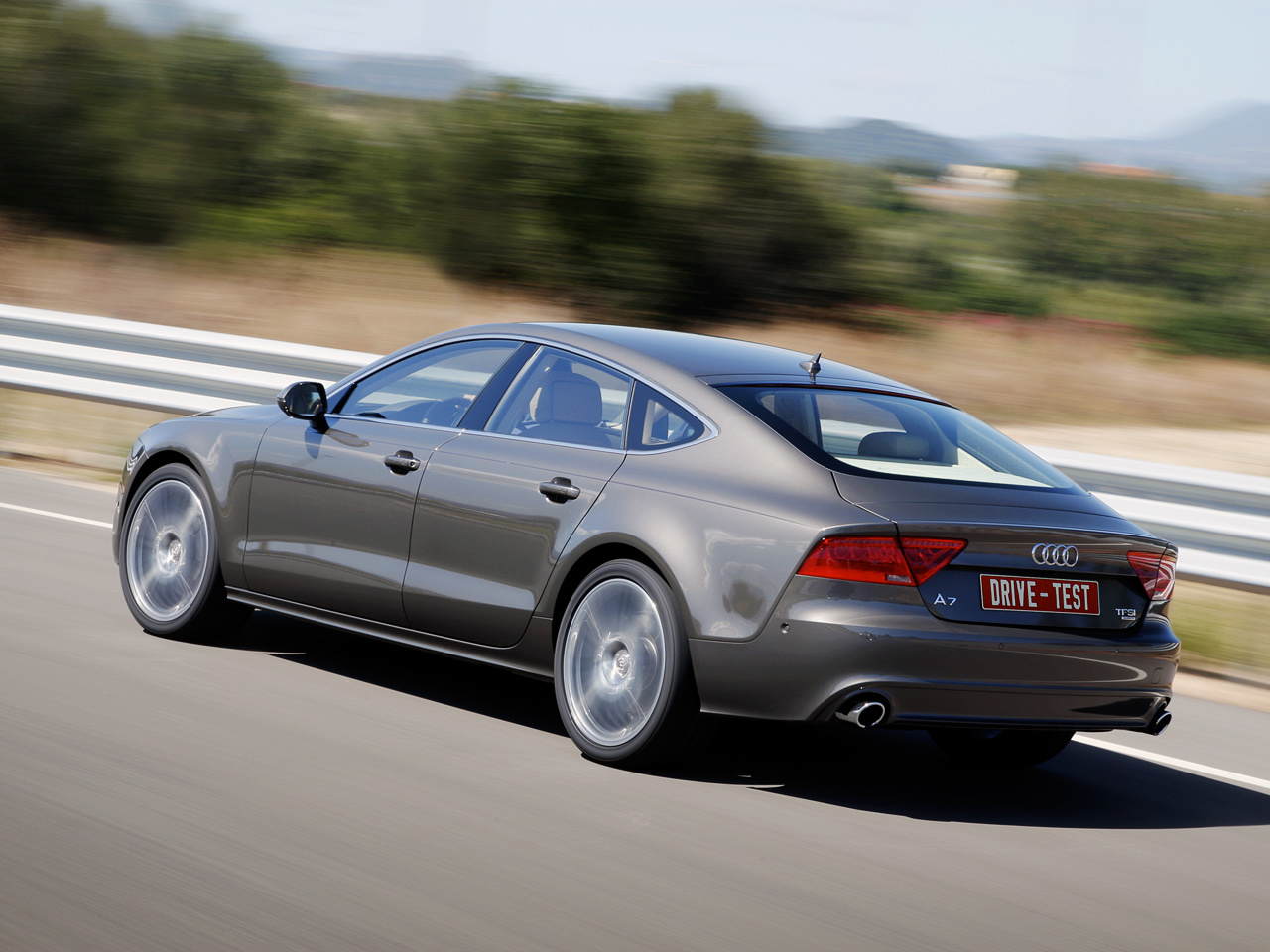 Сегодня шасси всех автомобилей собственной разработки Audi (к таковым не относятся малыши A1 и A3, созданные на фольксвагеновских платформах с поперечным расположением двигателя, и кроссовер Q7 — в сущности Porsche Cayenne) основано на универсальной архитектуре MLB: передняя подвеска — на двойных составных поперечных рычагах, задняя — многорычажка с массивным нижним трапециевидным рычагом. У инженеров есть два набора модулей в зависимости от ширины оси и нагрузки на неё. Несмотря на провозглашённое (по контрапункту с BMW) родство с флагманом A8, точнее было бы назвать ближайшим родственником «а-седьмой» кроссовер Q5. У него, как и у базовой «семёрки», пружинная подвеска, а сзади упругие элементы разнесены с амортизаторами. Тогда как для A8 предусмотрена только пневмоподвеска, а задние пневмобаллоны смонтированы на стойках. Главное же отличие А7 — электроусилитель руля, установленный концентрически на рейке в одном корпусе.
