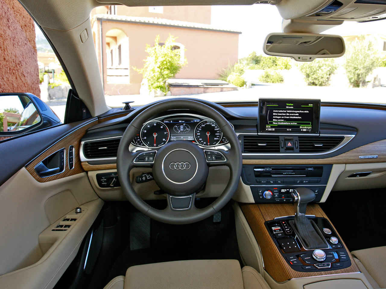 Нет, ну до чего же похожа у двух машин центральная консоль, сориентированная на водителя! И как всё скомпоновано на ней, и как она утыкается в трансмиссионный тоннель... Только у «пятёрки» BMW под кожухом тоннеля — сплошная электропроводка, а у A7 селектор всё ещё механически связан с коробкой передач. Здесь стоит не восьмиступенчатый «автомат», как на флагмане, а преселективный «робот» с двумя сцеплениями. Трансмиссия модернизирована: помимо системы start/stop — новая раздаточная коробка, а в ней — самоблокирующийся цилиндрический дифференциал с коронными шестернями, сменивший привычный Torsen. Прямо как на купе RS5! В нормальных условиях 60% момента подводится к задним колёсам, в пределе — до 85%. А тяги, между прочим, у нашей машины даже больше, чем у «эр-эски», — 440 Н•м. Под капотом — трёхлитровый двигатель V6 с приводным нагнетателем мощностью 300 л.с. Сёрфинг по дорогам Сардинии обещает быть не менее увлекательным, чем веб-сёрфинг на парковке.