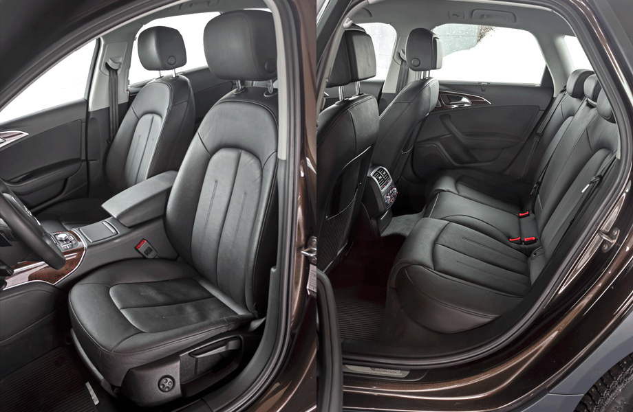 И не сказать, что Audi A6 allroad сильно уступает тому же кроссоверу Q7 в плане внутреннего пространства. Да, «кью-седьмой» заметно длиннее (5086 против 4940 мм), что сказывается на разнице в объёме багажного отделения — оно у Олроуда составляет 565–1680 л, тогда как у пятидверки Q7 этот показатель равен 775–2035 л. Зато, например, на заднем ряду ширина салона на уровне локтей у Олроуда равна 1491 мм против 1475 мм у «кью-седьмого». К тому же у Олроуда от подушки переднего кресла до потолка вмещается 1046 мм (у Q7 — 1003), а сзади аналогичный показатель достигает 985 мм (у «кью-седьмого» — 990). Если же забыть о цифрах, то можно констатировать, что в Audi A6 allroad тесно быть не должно — ни ногам, ни плечам, ни голове.
