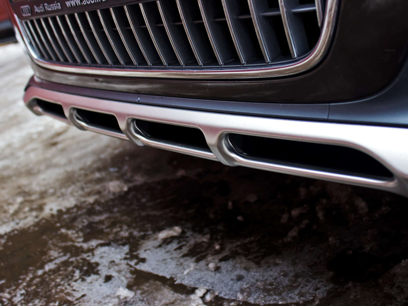 Обычный универсал Audi A6 Avant хорош по-своему — он лёгок на вид, стремителен. Но удивительно, как же легко псевдовнедорожная бижутерия изменила саму суть внешности. Пластиковые накладки на колёсных арках и порогах, секции на бамперах из нержавеющей стали спереди и сзади, имитирующие защиту (но они даже под днище не заходят), рыцарский щит решётки радиатора — от образа Аванта не осталось и следа! Смотришь на грозный, в нужной пропорции раздобревший allroad и мысленно дорисовываешь картину 105-миллиметровой танковой пушкой или, на худой конец, 30-миллиметровой 2А42, торчащей из крыши. И цвет тут ох как в тему!