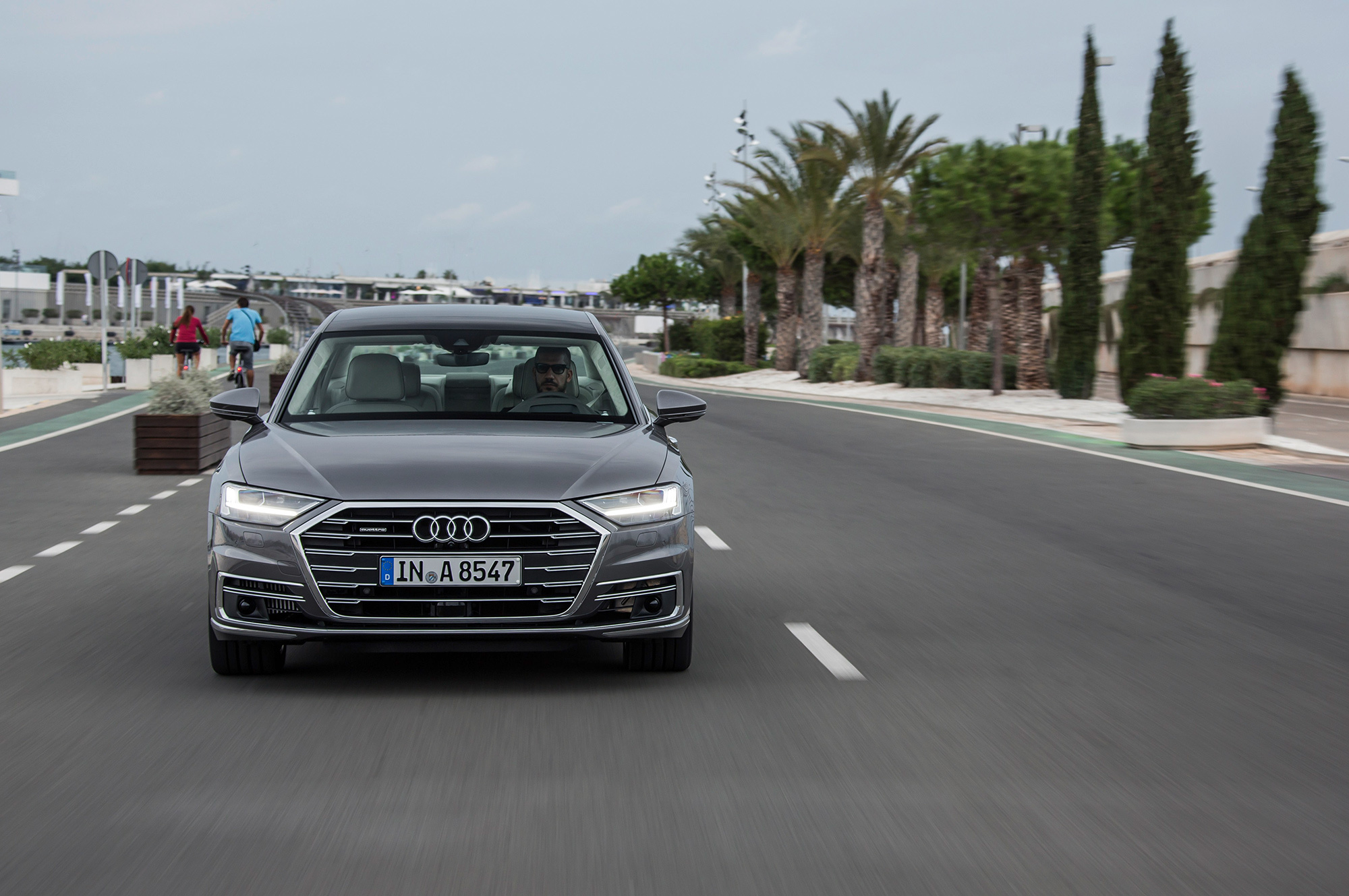 Вести А8 приятно. Дистанции между водителем и машиной как будто бы нет, хотя отстранённостью грешат многие пятиметровые исполины. Первое время к нам будут поставлять только 340-сильные А8 55 с трёхлитровым наддувным V6. Тяги и динамики у такого в достатке, а контролировать их просто. Седан A8 60 с двигателем V8 ожидаемо быстрее, но восьмиступенчатый автомат иной раз потряхивает пассажиров при переключении передач в рваном трафике. Предел по скольжению в поворотах недостижим на уместных для неперекрытых дорог скоростях. Смутило, что руль при очень быстром вращении закусывает.