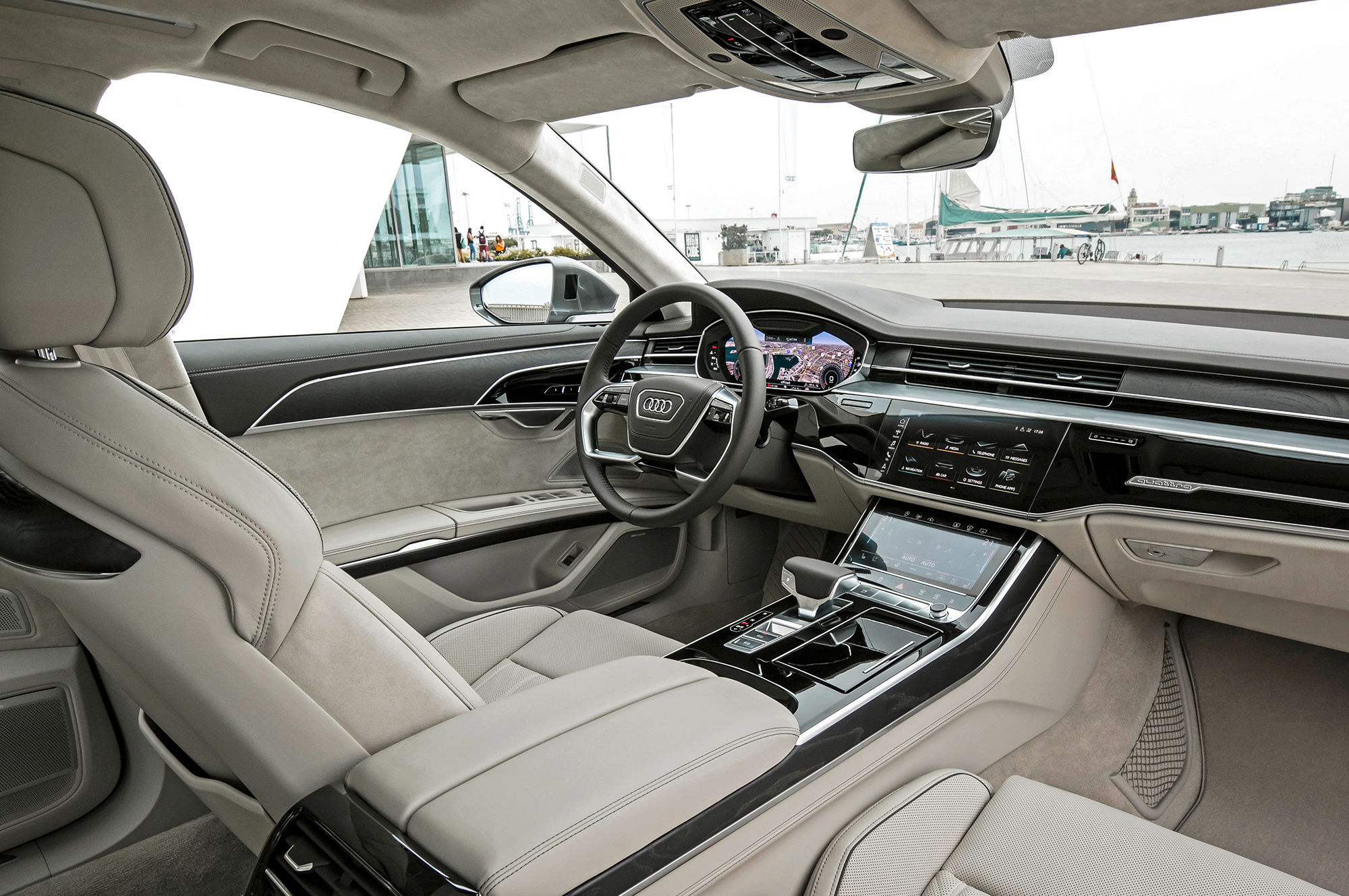 На центральной консоли должна быть клавиша автопилота, но полностью функционален он не будет как минимум до 2019 года. Автопарковщик с дистанционным управлением появится чуть раньше. А когда будут устранены законодательные препоны, A8 сможет двигаться без участия водителя на скоростях до 60 км/ч. При разделённых встречных потоках и ― цитирую немцев ― «спокойном движении». Система третьего уровня по классификации американской SAE позволит водителю заняться своими делами, но её справедливо называют не автопилотом, а «пробочным ассистентом».