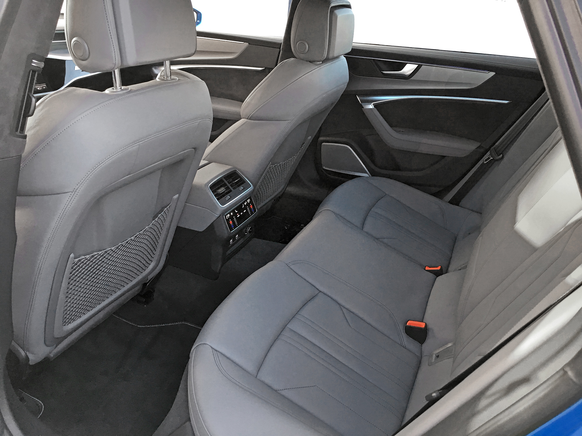 Интерьер, по-моему, даже приятнее, чем в А8! Нет странных дефлекторов со шторками, на дверях — стильные поручни, а два главных тачскрина повёрнуты к водителю. Получаю эстетическое удовольствие от взаимного расположения основных элементов. К качеству и стилю не придраться, только глянцевую вставку с надписью «quattro» нельзя заменить шпонированной. Обычно я рад аналоговым приборам в списке базового оборудования, но здесь они будут смотреться странно. Управления жестами нет, но концептуально на фоне BMW шестой серии это прорыв. Салон будет сильным инструментом продаж для A7.