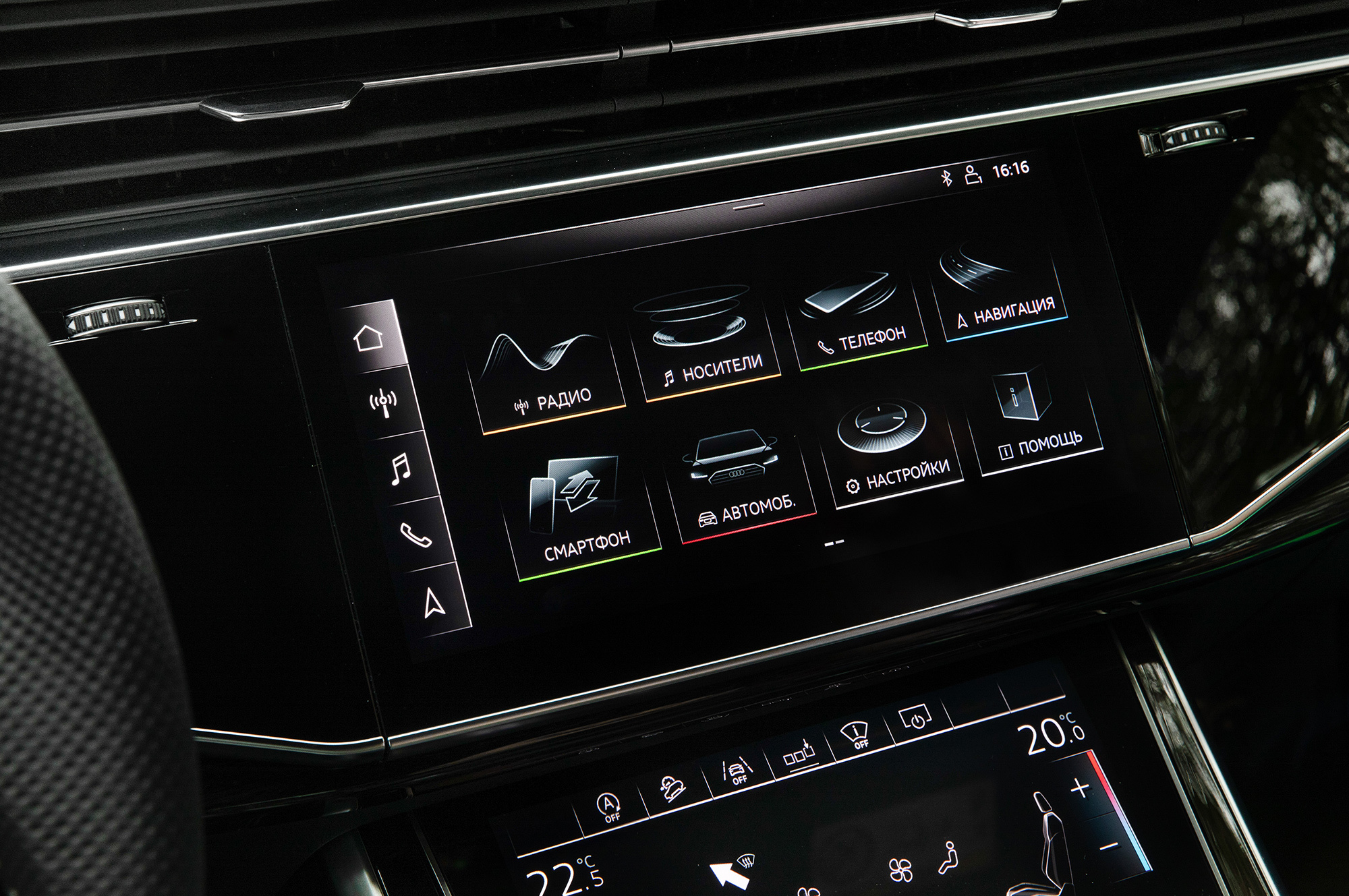 Мультимедийный комплекс с парой сенсорных дисплеев вывел из обращения привычные кнопки. Поначалу он вызывает восторг, но по мере угасания вау-эффекта от мониторов устаёшь, и приходит понимание, что даже при наличии ответной вибрации нарисованные клавиши не способны заменить физические. Кстати, если вам привычней безответный тачскрин, фидбек отключается. Щелчки прекращаются и автоматически, когда система активирует Apple CarPlay или Android Auto, заметив подключённый смартфон.