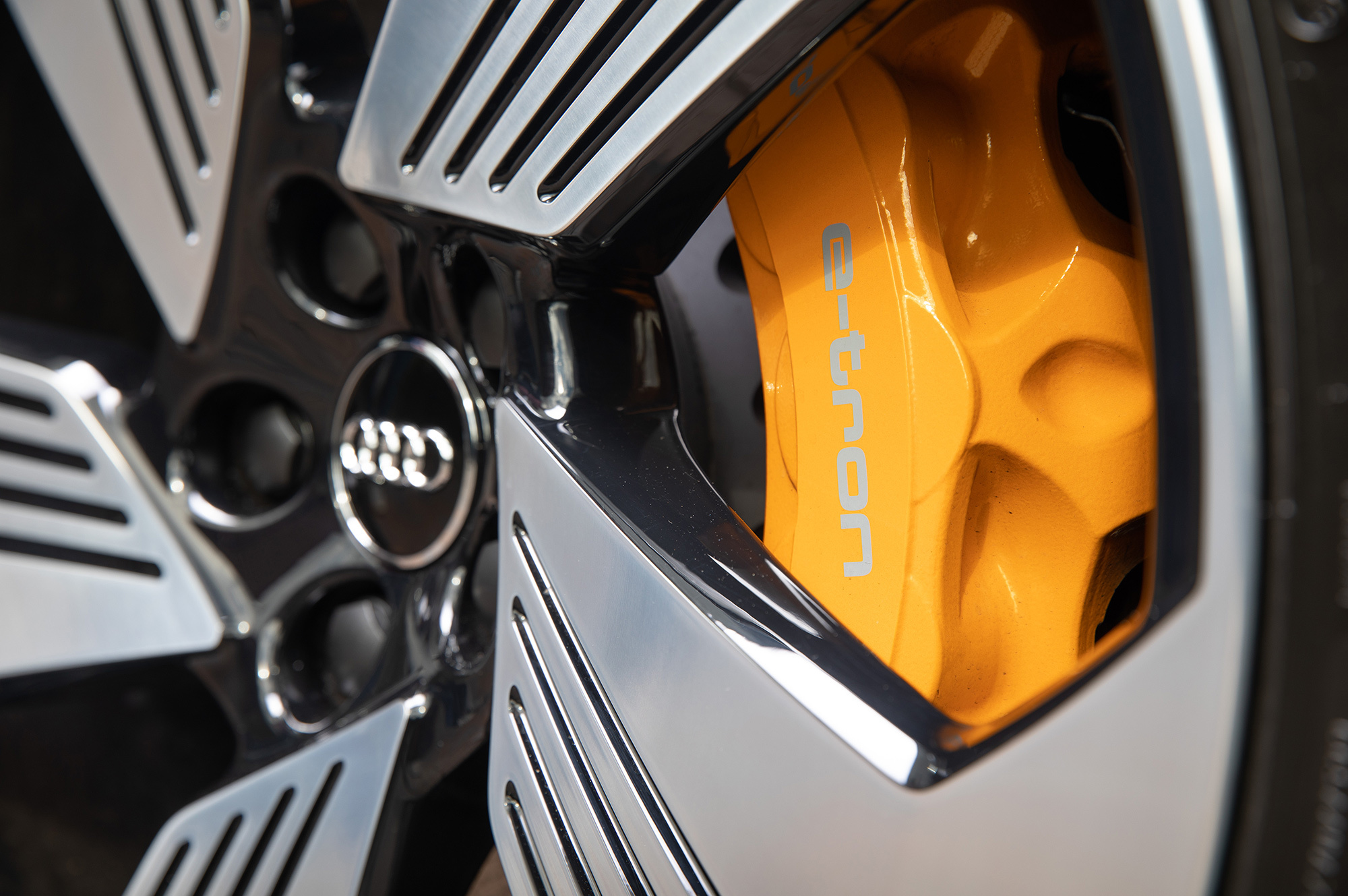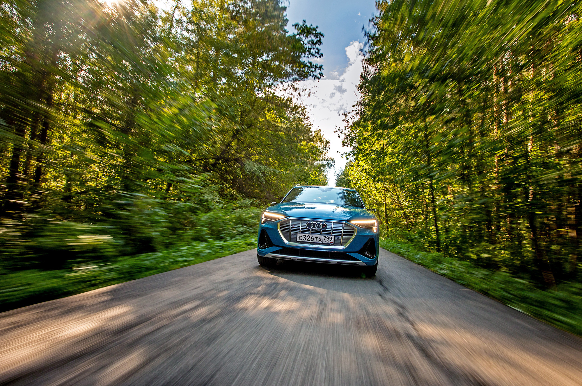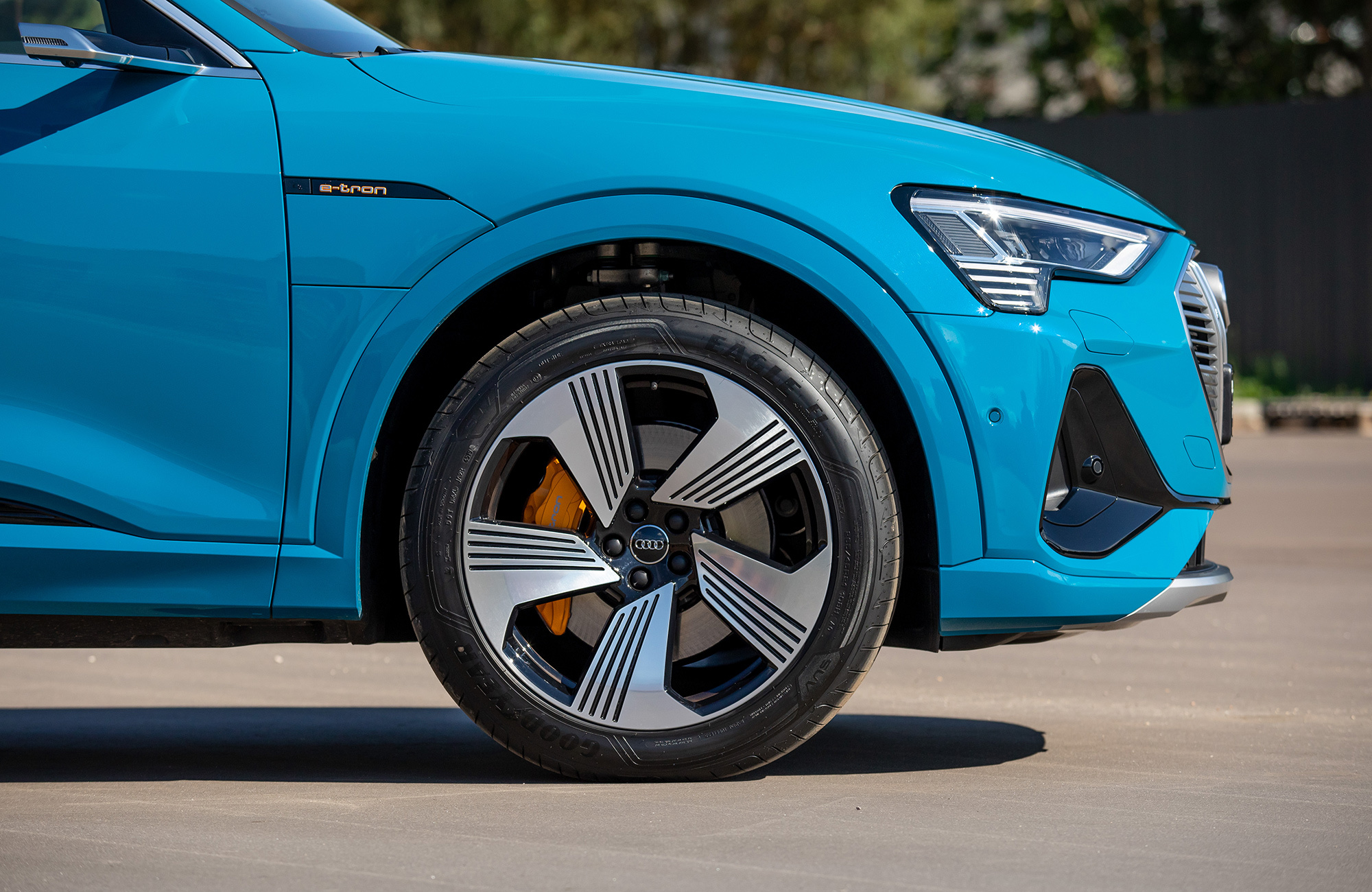 Вместо упомянутых в пресс-материалах шин Goodyear Eagle F1 с низким сопротивлением качению тестовая машина обута в Continental Premium Contact 6 с маркировкой Audi Original. Их предельные возможности достаточно высоки, чтобы придать динамичному движению вполне аутентичный S-градус. Батарея массой под 700 кг висит всего в 15 сантиметрах над землёй, из-за чего e-tron подчёркнуто устойчив и перемещается почти без кренов.