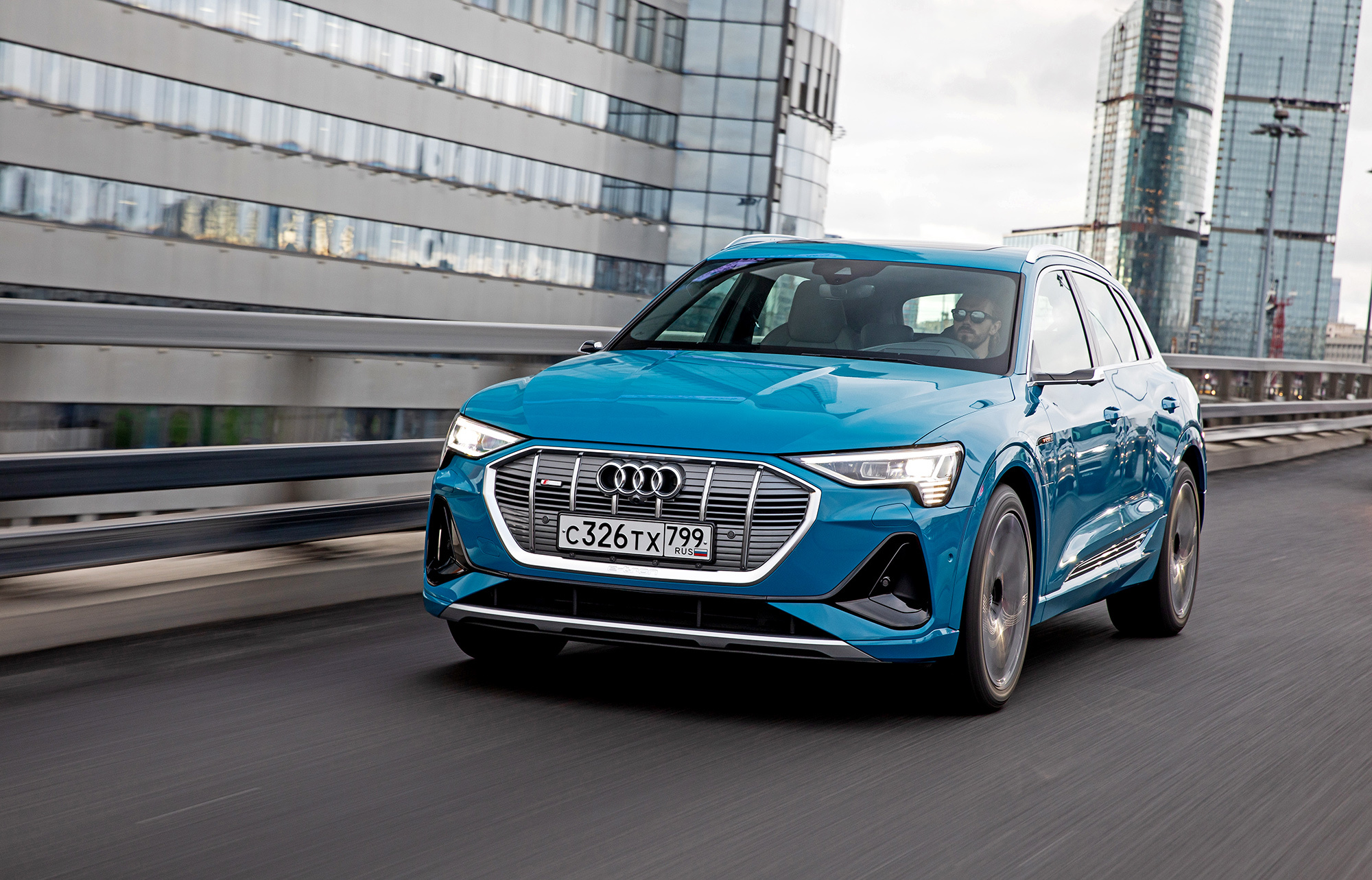 Убедительна плавность хода. Если б не дурацкий запрет на сравнительные тесты автомобилей концерна Фольксваген, я бы собрал вместе e-tron и Бентейгу. Именно к Bentley электрокар ближе всего по массе. И, кажется, даже на опциональных колёсах диаметром 21 дюйм электрокар идёт мягче. В том, как отрабатывается дорожный брак, есть та фирменная невозмутимость, благодаря которой подвески Audi выгодно выделяются среди продуктов на основе платформы MLB Evo…