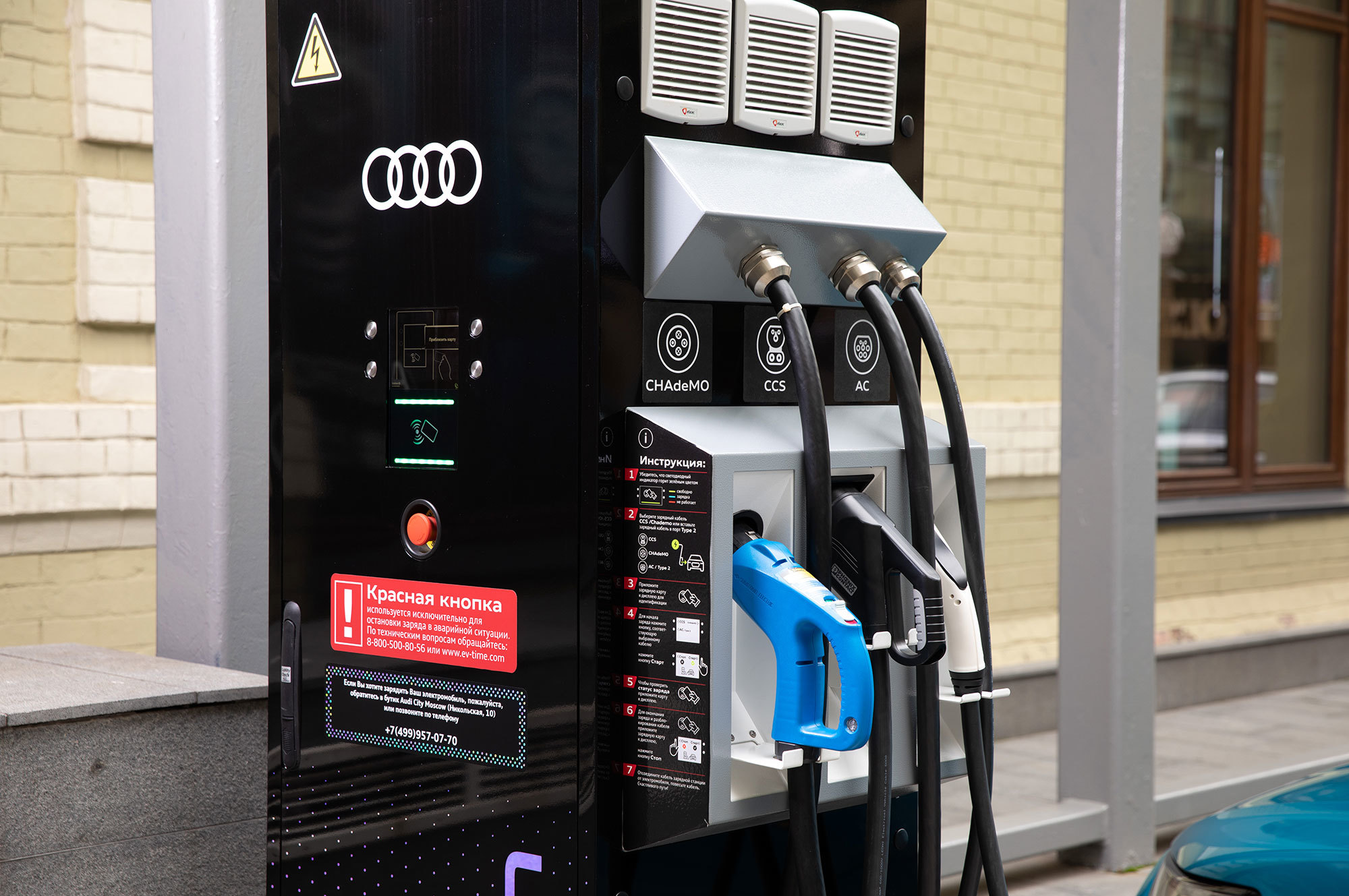 Говорят, скакать с грязными проводами по улице — удел владельцев подержанных Лифов. Однако нет-нет, да и встретишь дорогой электромобиль у городской зарядной станции. Размотать перед зеваками собственный кабель — простейший способ показать, у кого длиннее. В отличие от какой-нибудь Теслы Audi e-tron тщательно маскируется под обычный автомобиль, поэтому лишний раз выйти потрясти разъёмами — необходимый ритуал, чтобы прочувствовать и продемонстрировать свою особенность. Хотя бы раз в несколько дней: борткомпьютер сулит реальный запас хода в 350 км.