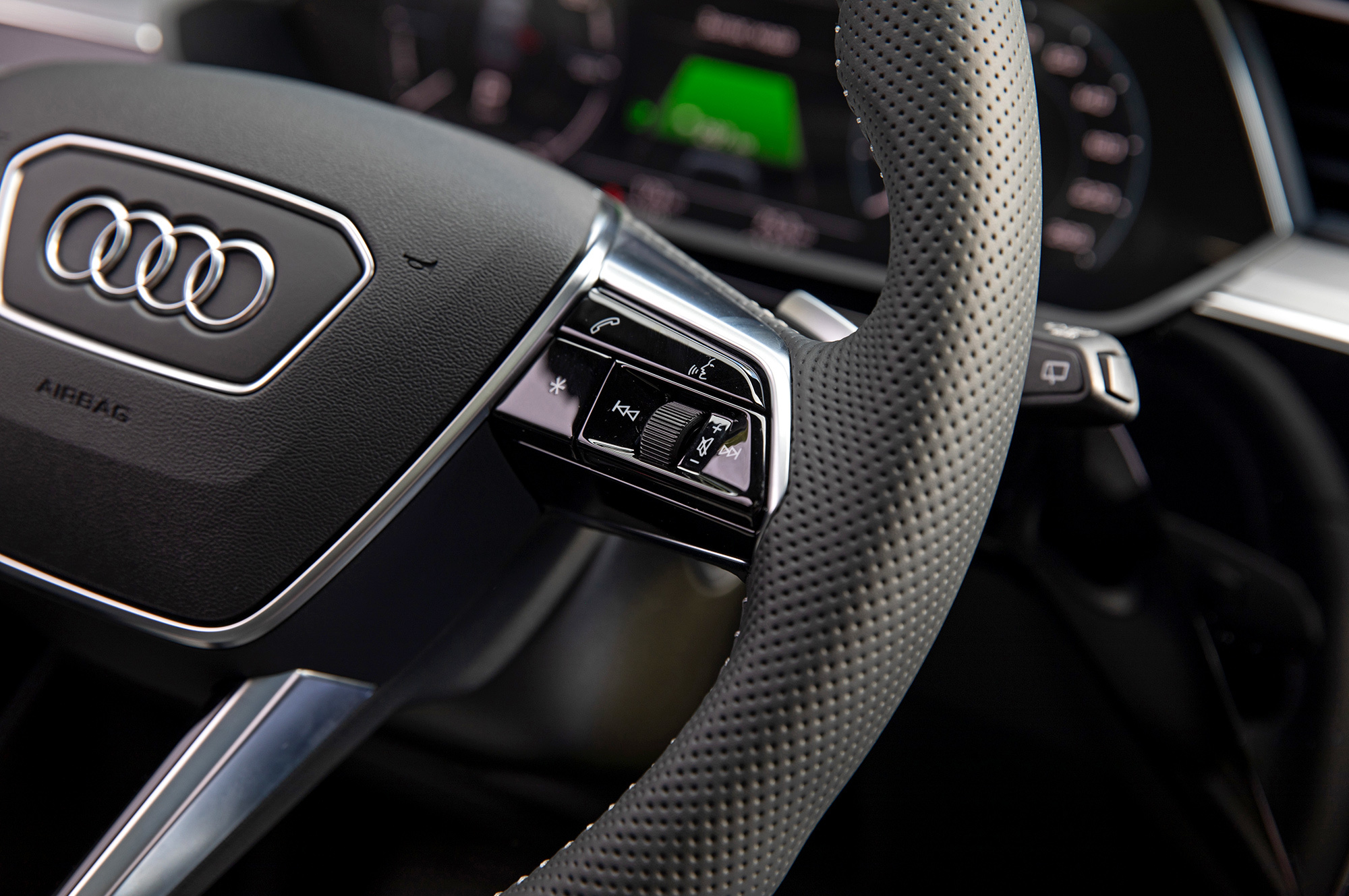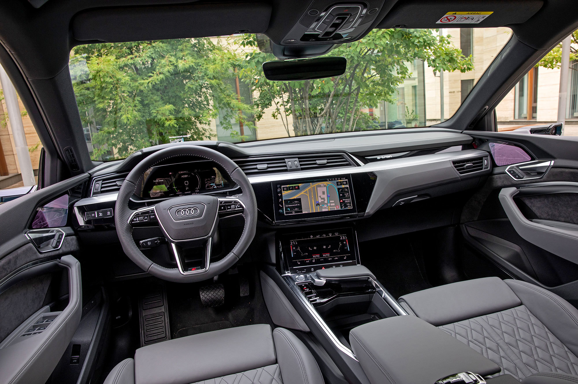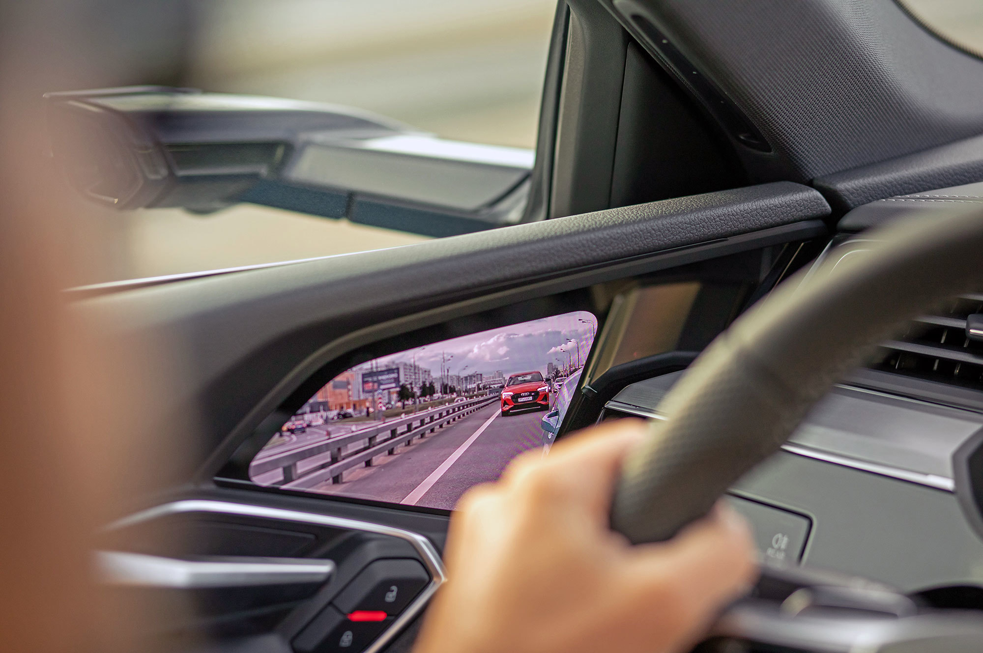 Тест-драйва могло и не случиться. Через десять минут поездки мне уже хочется вернуть e-tron. Во всем виноваты модные виртуальные зеркала — камеры заднего вида с дисплеями на дверях. Концепция, может, и жизнеспособна, но реализация Audi чудовищна. Она противоречит одному из важнейших постулатов безопасного вождения — смотреть дальше и шире. Низко расположенные экранчики вынуждают опускать и перефокусировать взгляд, отвлекаясь от дороги впереди. Периферийное зрение парализовано. Мне страшно.