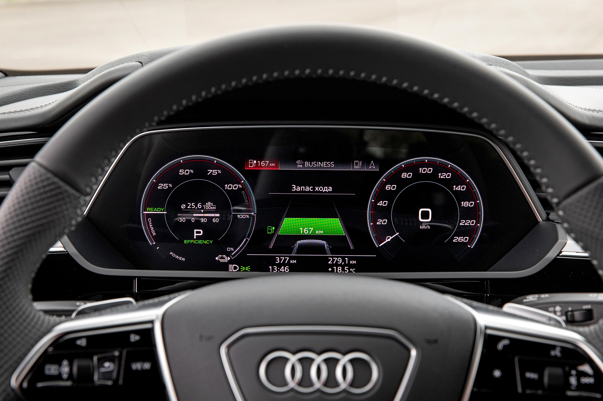 Забегая вперёд — e-tron меня не убедил. Да, привыкнуть к цифровым зеркалам можно, но наша привычка не делает их безопаснее. Вынужденный навык смотреть в дверь вырабатывается быстро, но чувство стеснённости обзора так и не позволяет расслабиться за рулём и получить удовольствие от неожиданно бойкой, позитивной машины. Чтоб в полной мере наслаждаться этим электромобилем, не надо, пожалуйста, тратить деньги на бредовые экранчики. А от снующего по рядам «итрона» с камерами лучше держаться подальше.