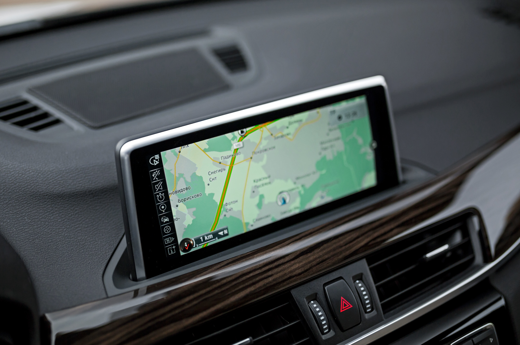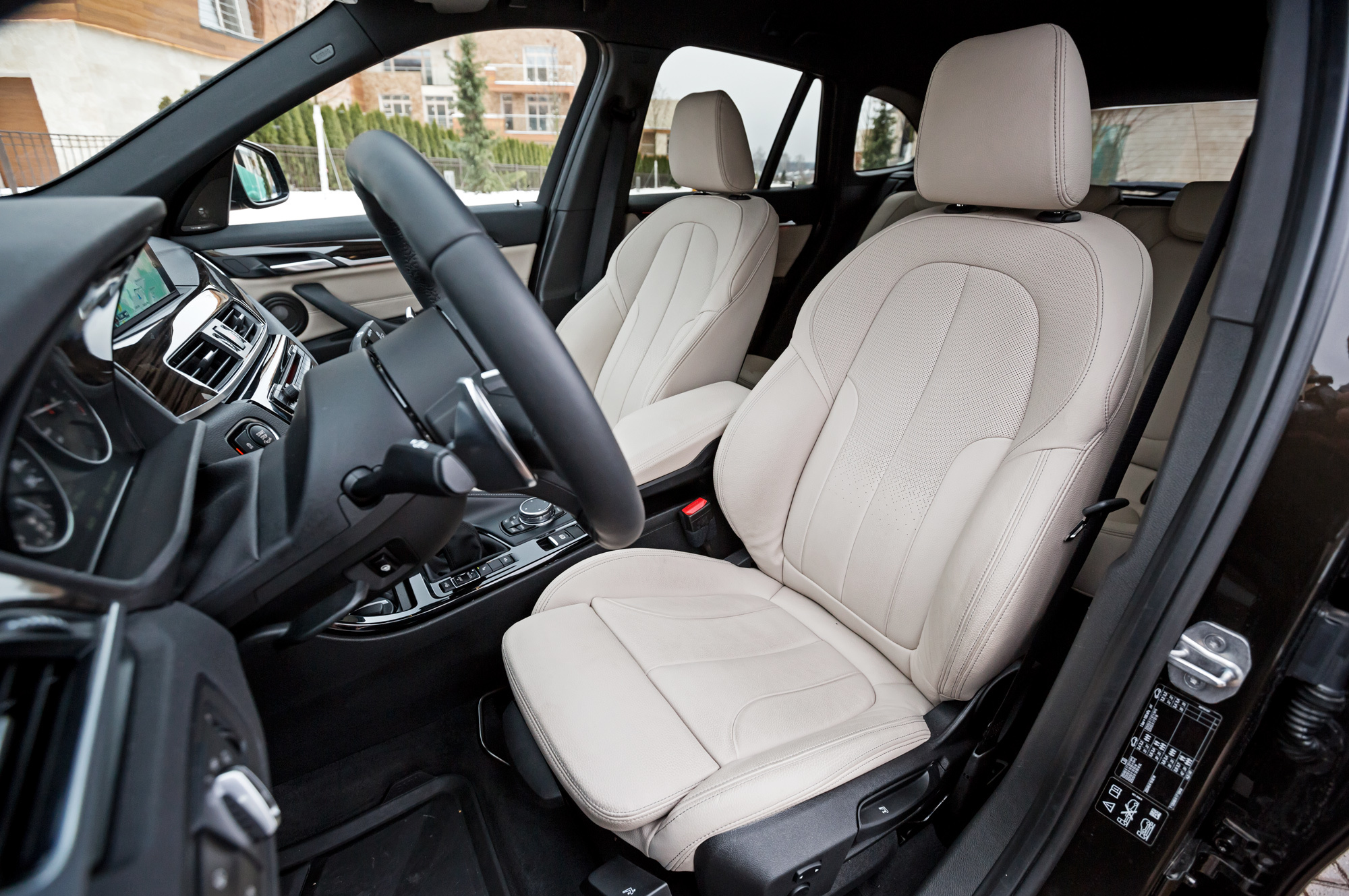 Наш BMW юн и напичкан под завязку. Отображающая пробки мультимедийная система — с крупным дисплеем диагональю 8,8 дюйма, подзвучкой Harman/Kardon, всевозможными медиаразъёмами и камерой заднего вида. У X1 есть автопарковщик и проектор показаний спидометра с навигационными стрелками на лобовое стекло.