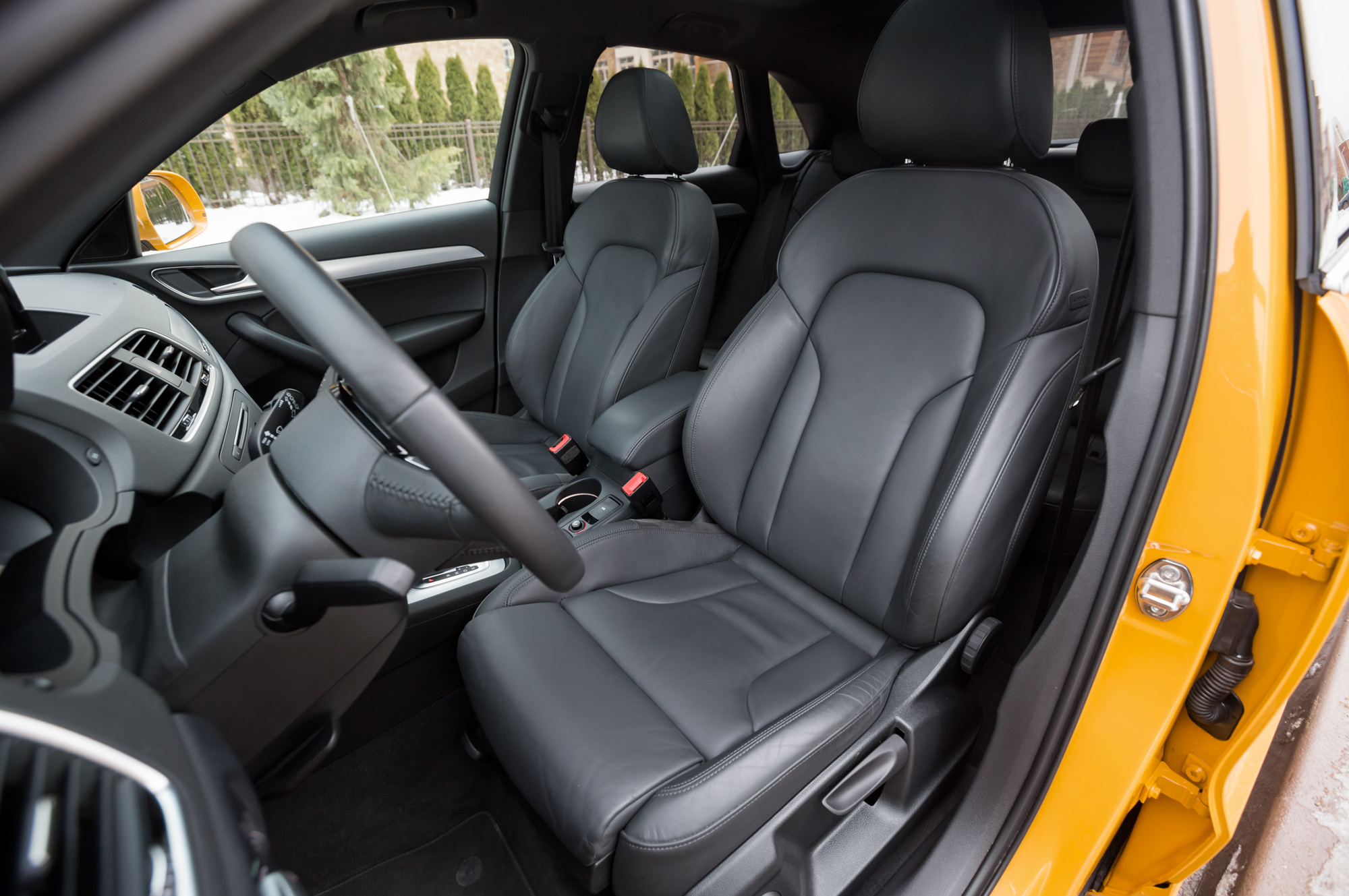 Но часто ли на таких машинах стартуют в пол? Мы ― нет. И потому отдаём предпочтение восьмиступенчатому гидромеханическому «автомату» BMW, который всегда работает плавно, логично и достаточно быстро — на заминки жаловаться не приходится. Тем более что вне парных заездов с Q3 динамики «икс-первого» хватает с большим запасом.