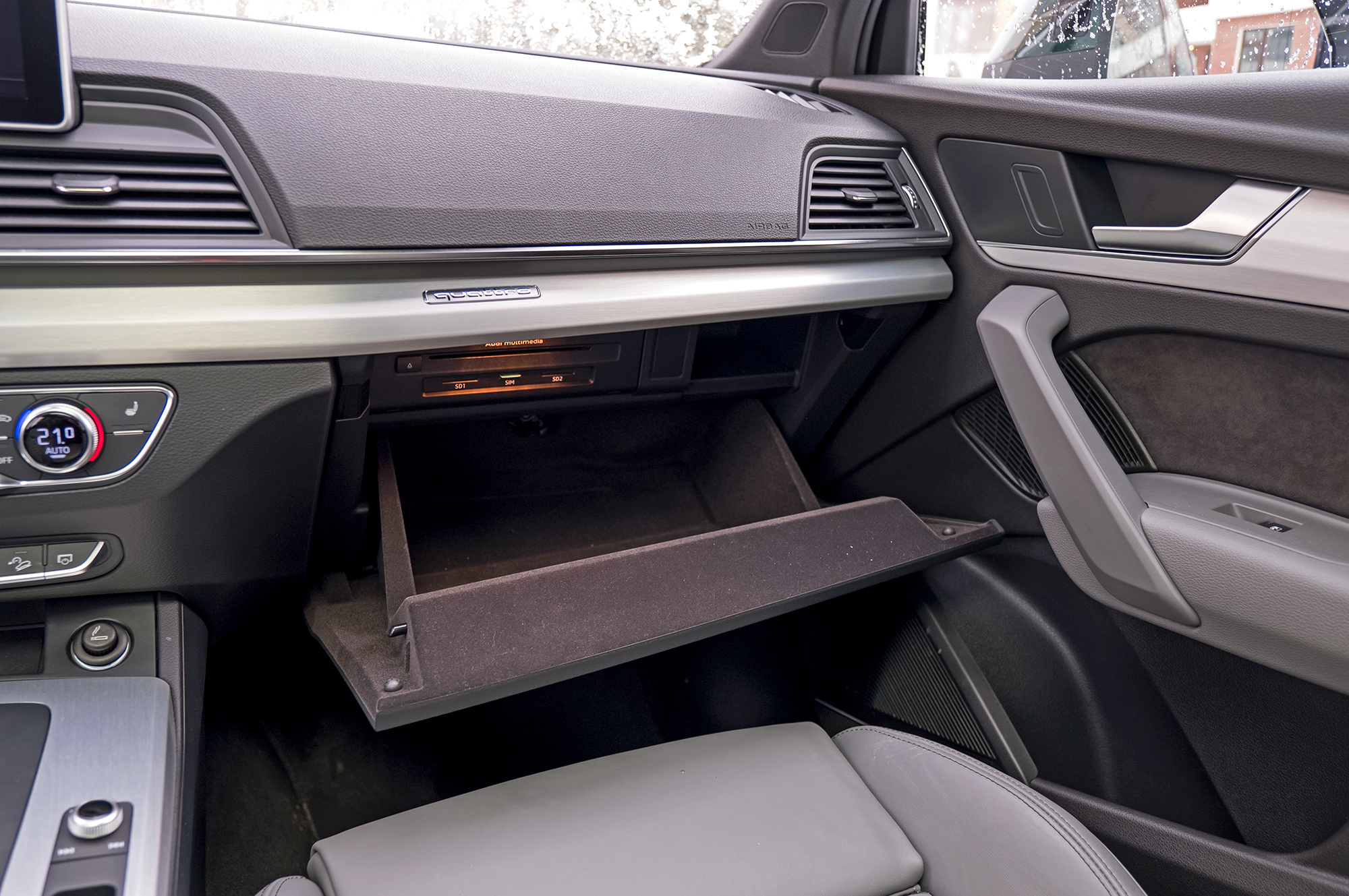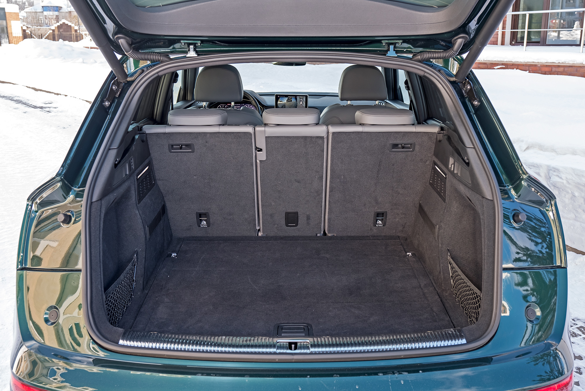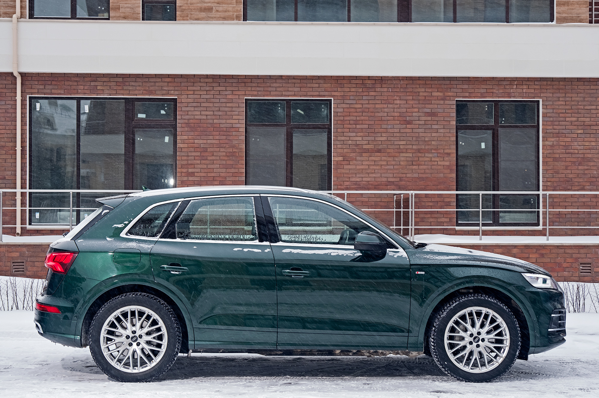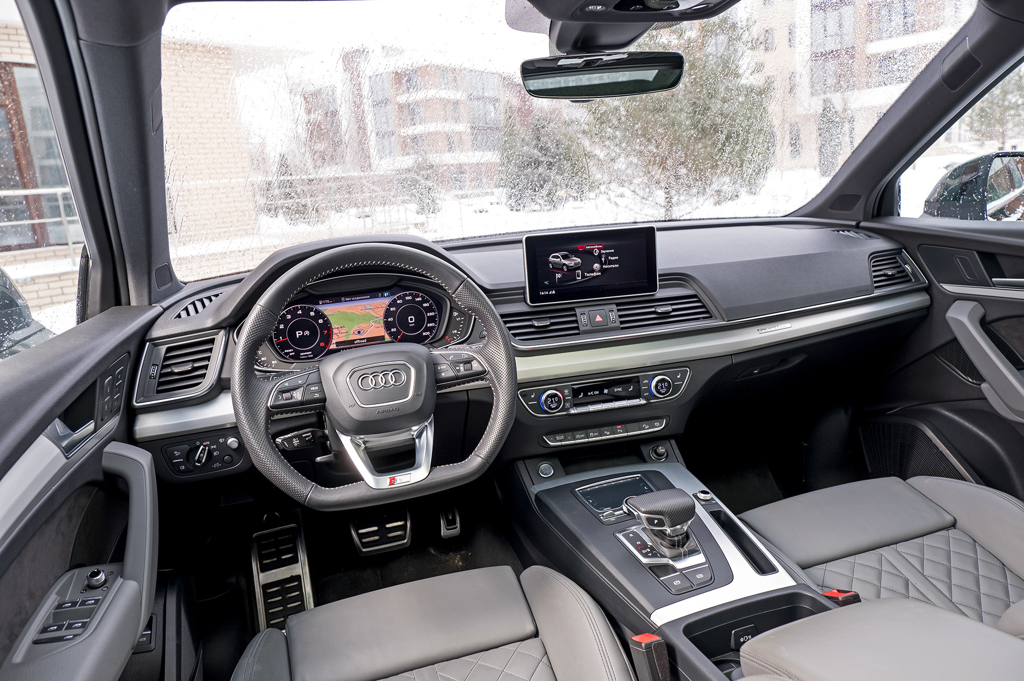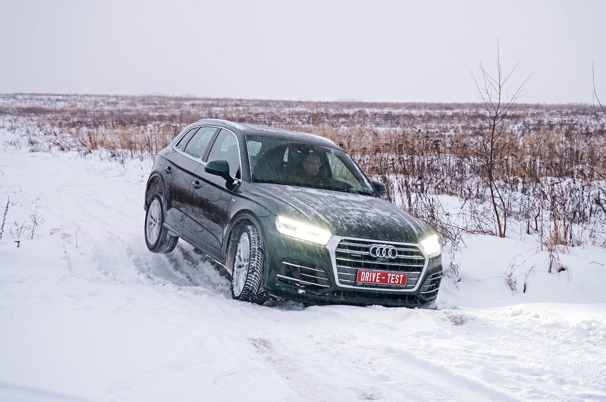 На пружинах Q5 теряет очарование и едет дёшево. Подвеска постукивает на неровностях и работает заметно грубее, чем даже X3 с базовым шасси. Просто жёстко. А ещё я уже скучаю по дифференциальному полному приводу. У бензинового Q5 — новая система quattro ultra с межосевой муфтой, подключающей заднюю ось. Отказ от диффа ничего не меняет для домохозяек: можно уверенно выехать из сугроба и даже побуксовать, не перегрев трансмиссию. Но скользит Q5 примитивно. Раньше дал газу на снегу — и почти сразу встал боком, а сейчас фаза сноса под тягой растянута. Ради хорошего кадра надо раскачивать машину заранее.