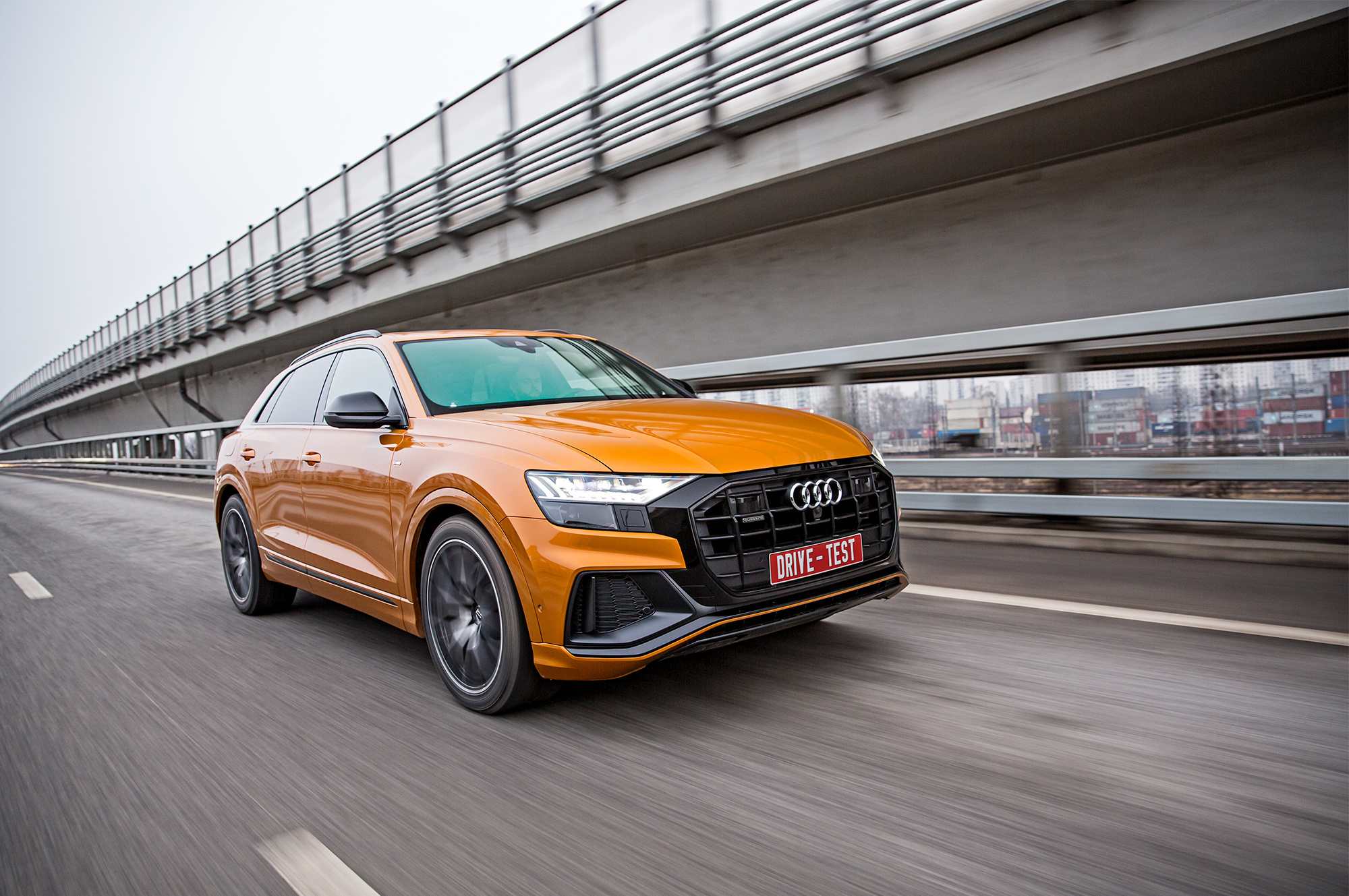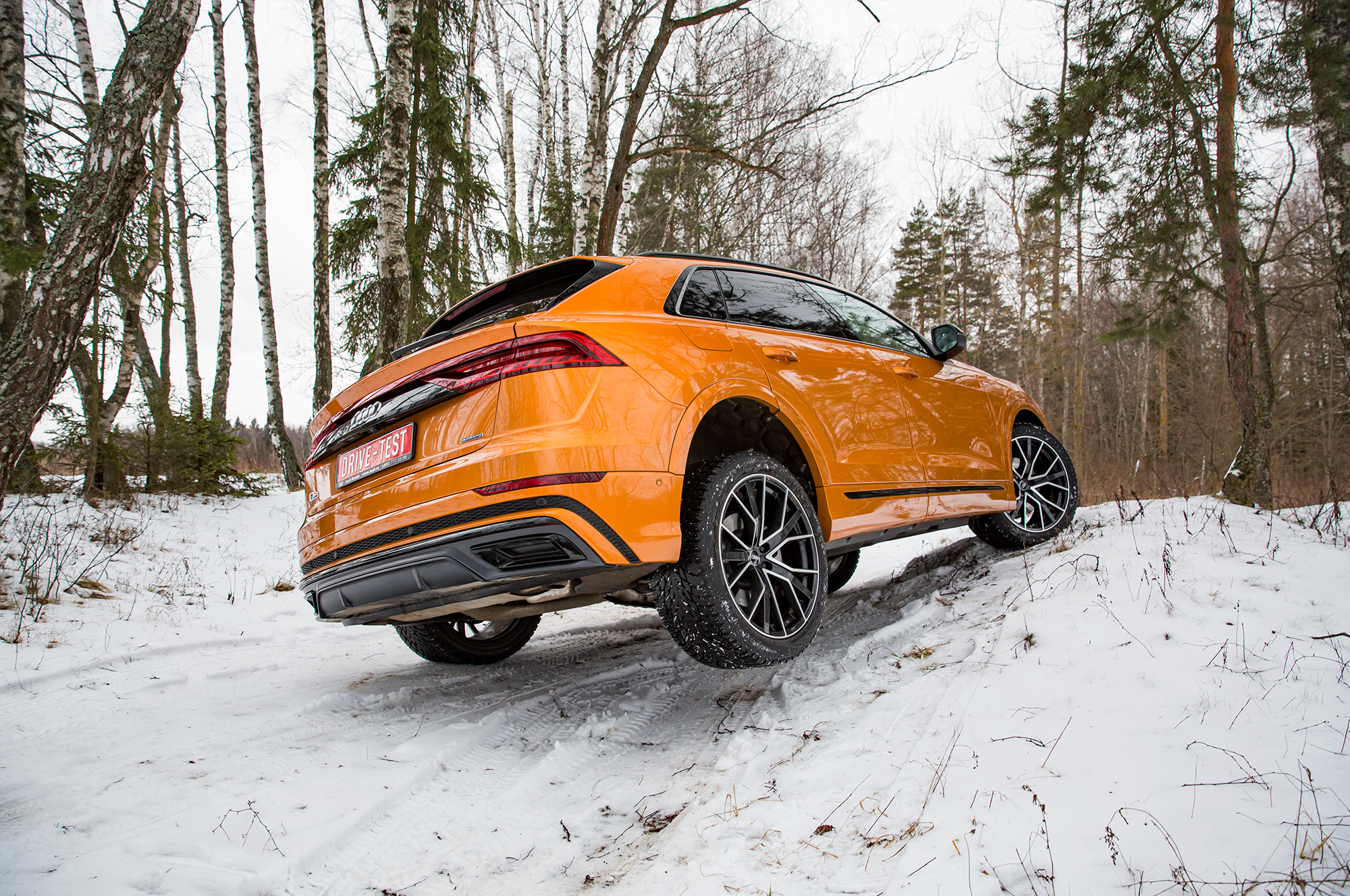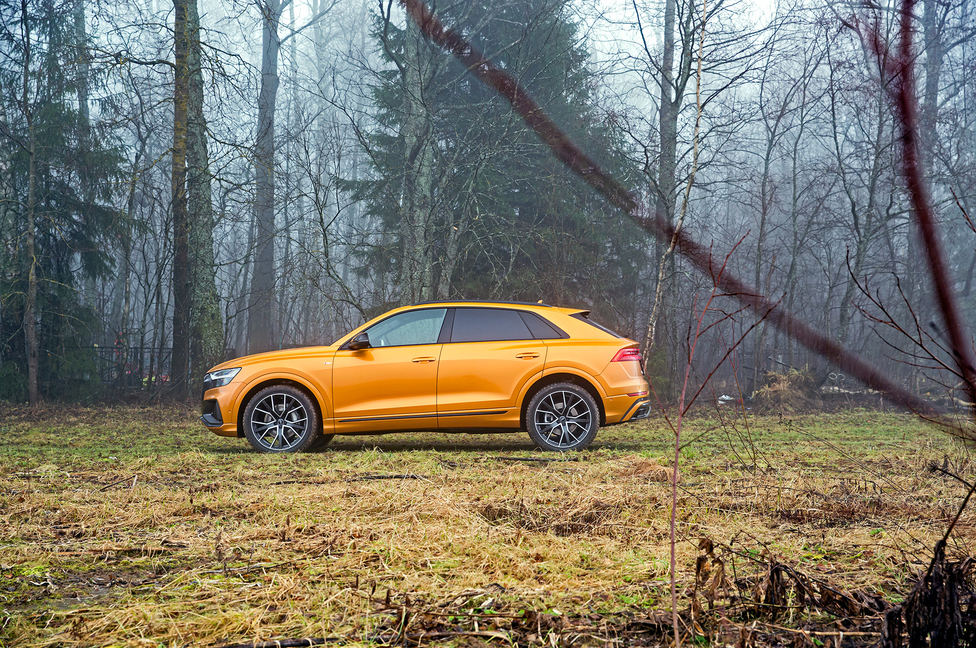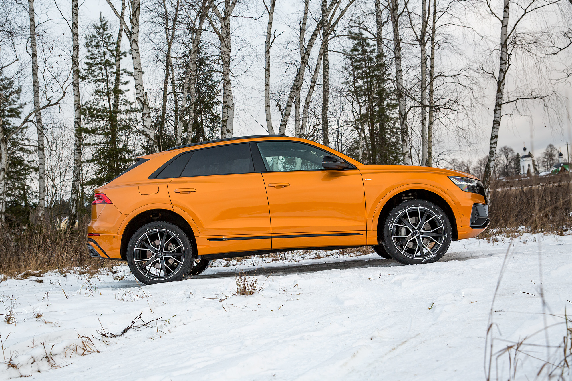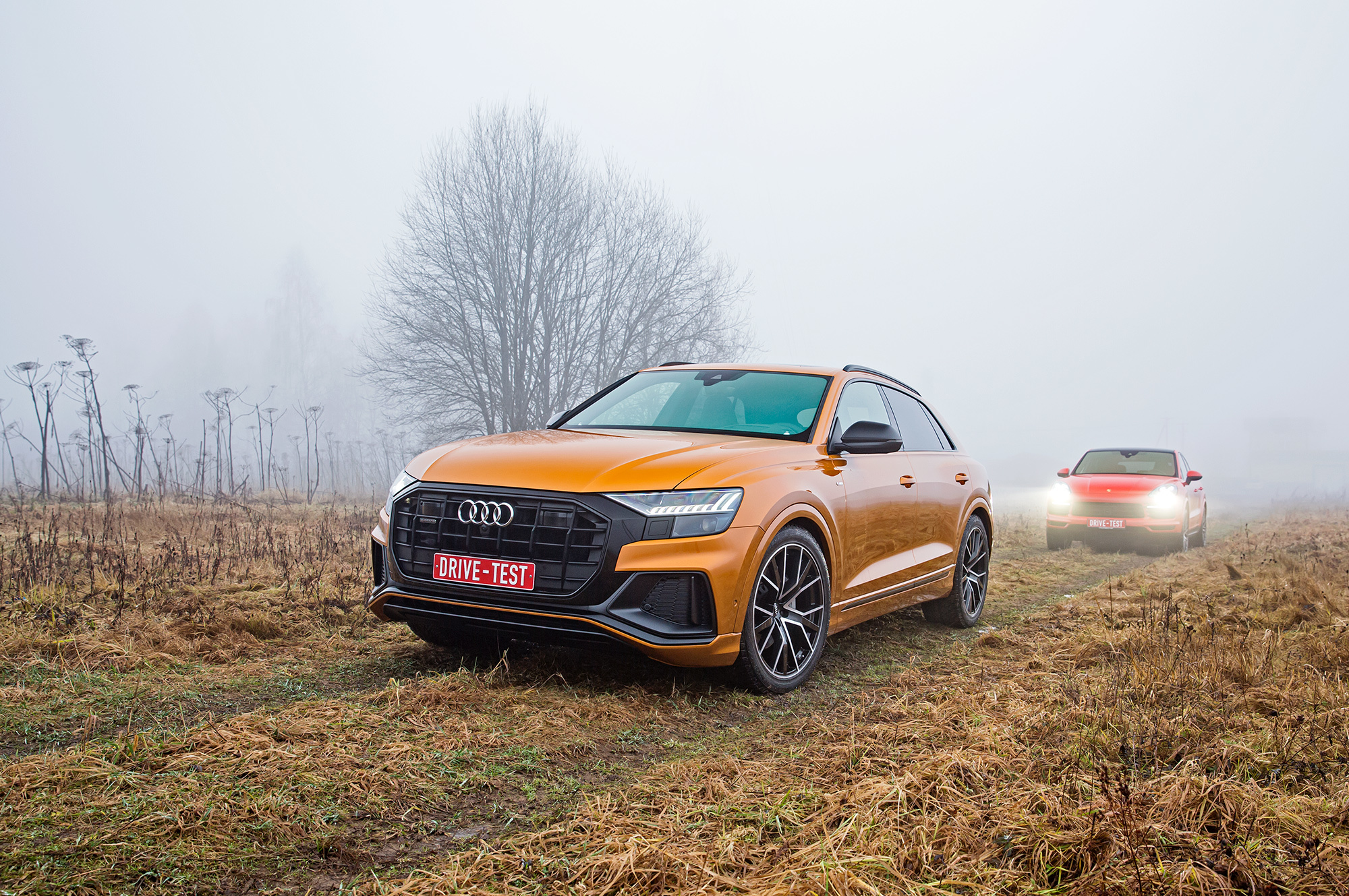Даже Q8 недотягивает, хотя часть вины за это лежит на 22-дюймовых колёсах с Хаккой R3 SUV. О жёсткости Porsche речи тоже не идёт: «ку-ахт» запоминается автомобилем с мягкой поступью. Просто спортивности в его повадках не больше, чем у BMW, а плавность хода всё-таки хуже. За асфальт Q8 держится столь же маниакально, как Porsche.