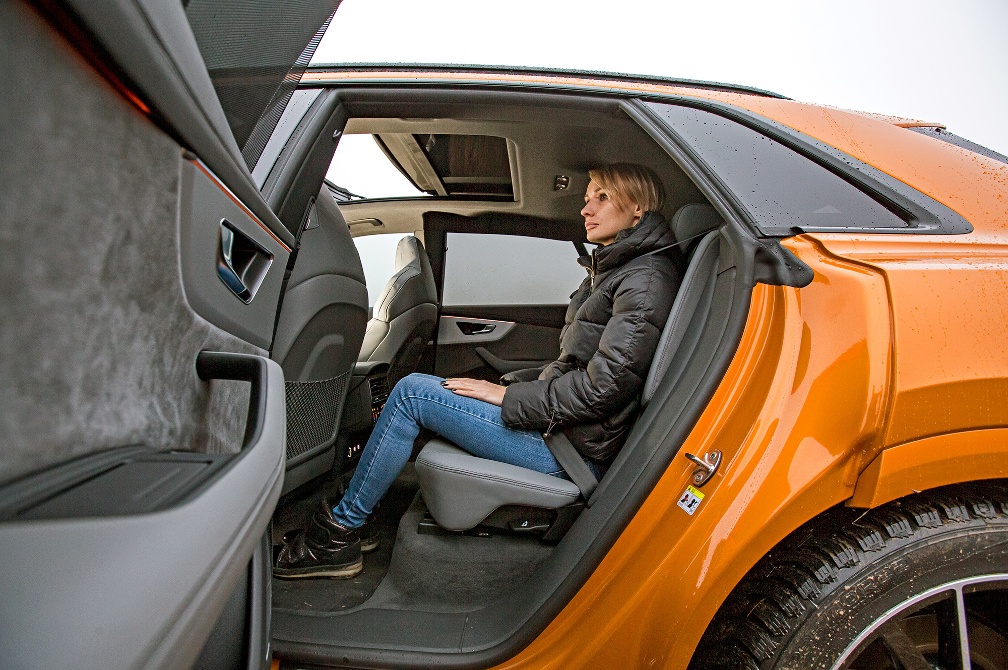 Прикрытые дверями пороги Q8 и Кайена всегда чисты, хотя в Porsche можно испачкаться по пути на задний ряд, задев арку. А в «икс-шестом» всем посетителям приходится осторожничать — он носит пороги навыпуск. Задние пассажиры всех трёх машин не обделены простором. В Audi всё же и потолок повыше, и больше запас в коленях. К тому же Q8 позволяет двигать диван по частям и регулировать угол наклона спинки. Зато в X6 самый компактный центральный тоннель.