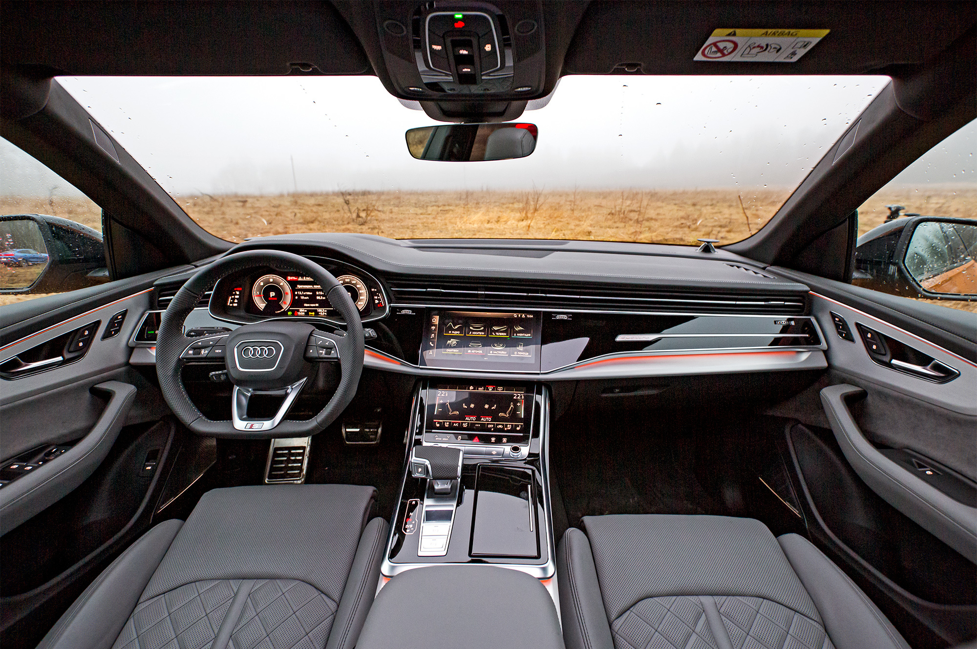 Родственные Audi и Porsche обязывают пользоваться сенсорными панелями, что на ходу не особо удобно, а порой и небезопасно. Сayenne и вовсе удивляет невозможностью переключать треки или радиостанции с руля. Достигнуть оптимальной посадки в жестковатых спортивных сиденьях Porsche проще простого, но они тесны для моей плотной фигуры. В Q8, как и в BMW, сижу свободнее.