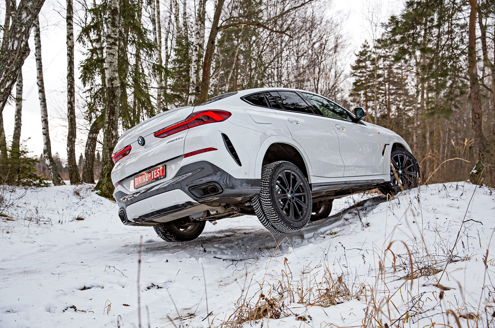 С любым покрытием X6, обутый в 20-дюймовый Michelin Pilot Alpin 5 SUV, справляется несоизмеримо лучше. Средние дефекты BMW просто не замечает, на крупных солидно покачивается. После Porsche даже неудобно говорить, что мне хотелось бы чуть лучшей развязки от вибраций, вызванных мелочовкой и микропрофилем. «Лежачие полицейские» не являются препятствием даже на приличной скорости. И по каменистой грунтовке X6 ступает мягко. Словом, то что нужно для наших дорог. На моей памяти это едва ли не самый комфортабельный кроссовер в сегменте, не считая Audi Q7.