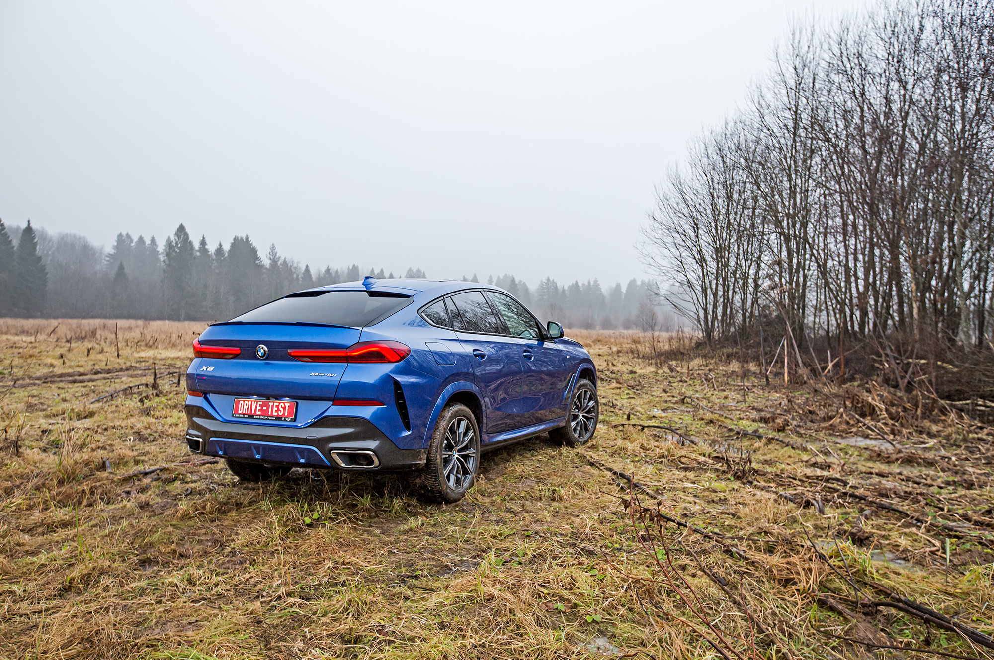 С любым покрытием X6, обутый в 20-дюймовый Michelin Pilot Alpin 5 SUV, справляется несоизмеримо лучше. Средние дефекты BMW просто не замечает, на крупных солидно покачивается. После Porsche даже неудобно говорить, что мне хотелось бы чуть лучшей развязки от вибраций, вызванных мелочовкой и микропрофилем. «Лежачие полицейские» не являются препятствием даже на приличной скорости. И по каменистой грунтовке X6 ступает мягко. Словом, то что нужно для наших дорог. На моей памяти это едва ли не самый комфортабельный кроссовер в сегменте, не считая Audi Q7.