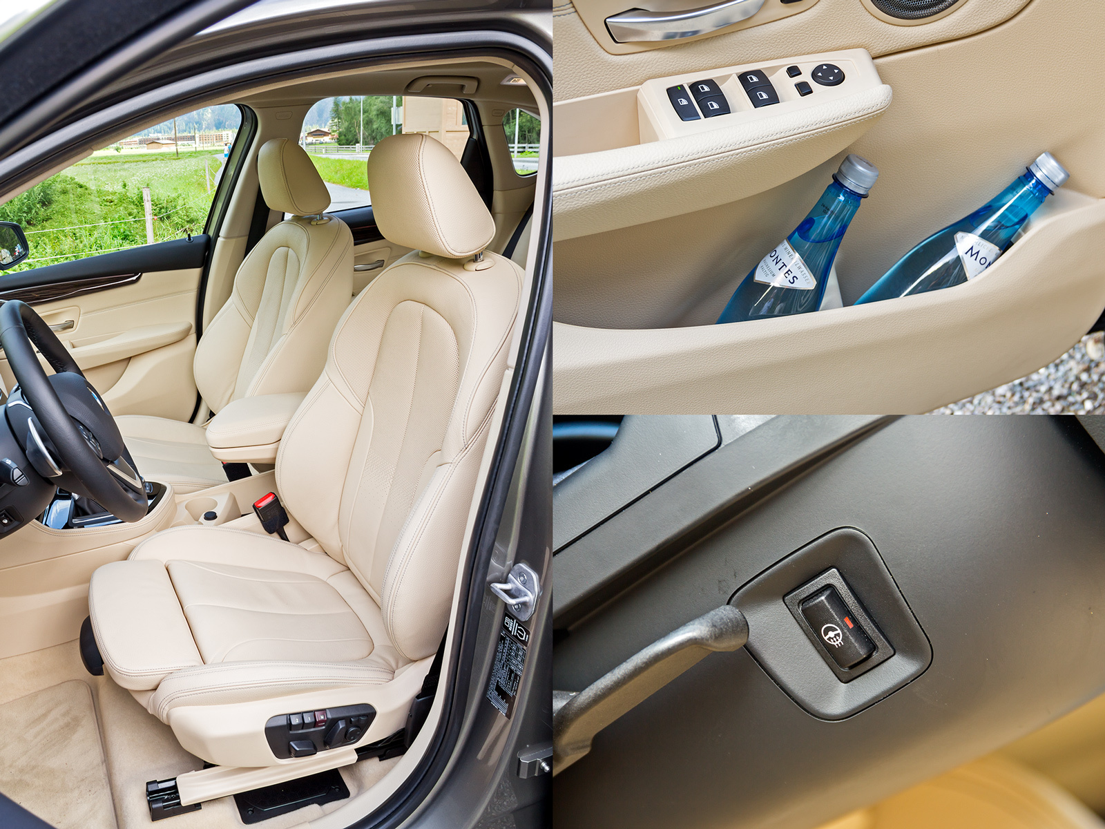 С позиции водителя Active Tourer — обычный BMW. Пухлый руль, ясные приборы, шайба «ай-драйва»... Тут почти нет общих деталей с заднеприводным купе второй серии, разве что узел управления светом. Новые, раздельные блоки аудиосистемы и климат-контроля. Вместо моторизованного «джойстика» — обычный селектор, механически связанный с восьмиступенчатым «автоматом». Неудобств он не вызывает, как и П-образная клавиша-скобка для выбора режимов движения, сменившая традиционную двуплечную. Но кресла стоят по-городскому высоковато — хочется опуститься ниже, и с обзорностью у компактвэна так себе. Правому сектору обзора мешает низко висящее салонное зеркало, а при повороте головы влево взгляд упирается в частокол широких стоек кузова. Да и боковые зеркала могли бы быть крупнее.