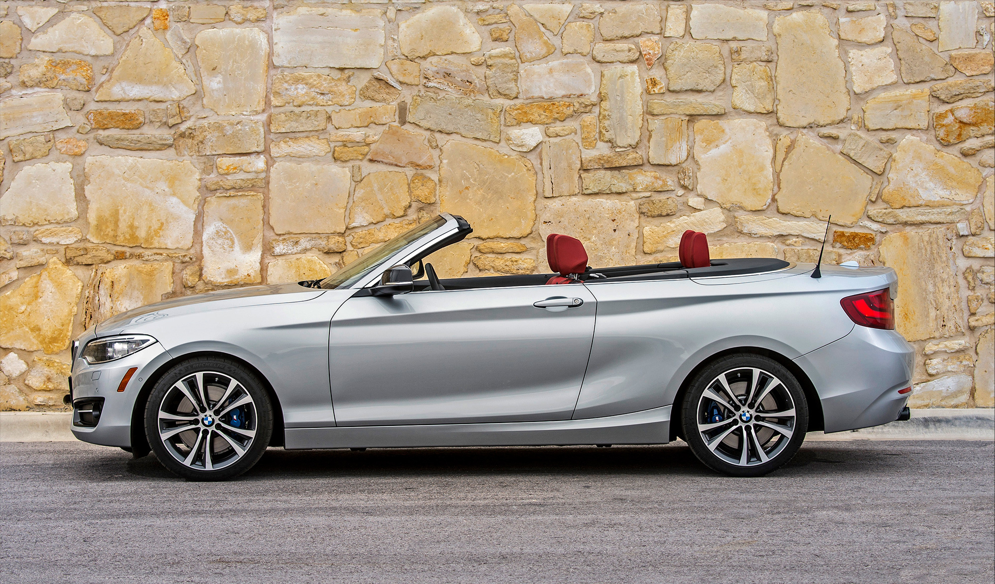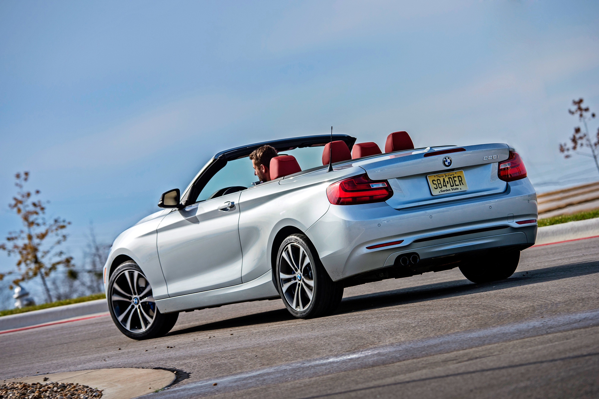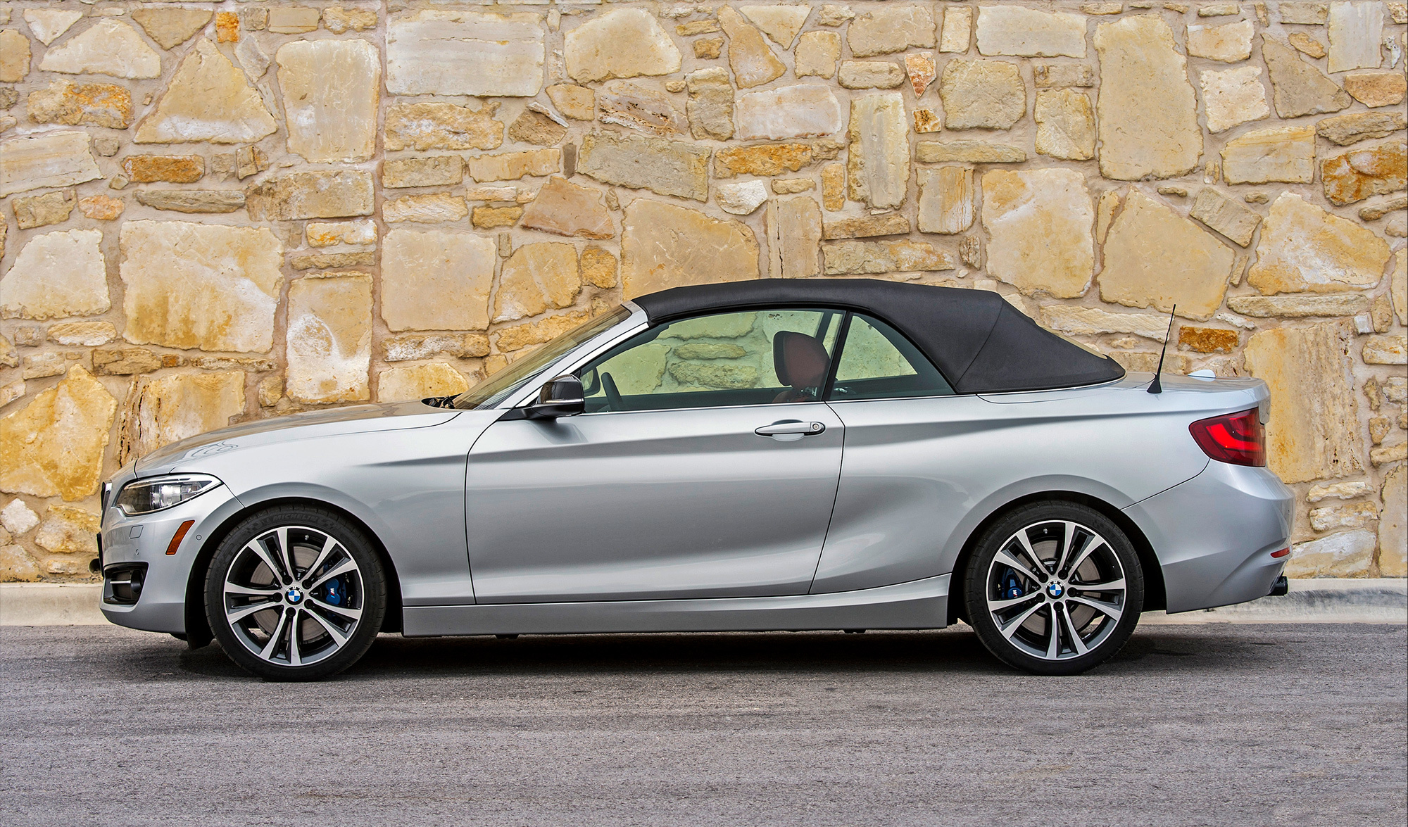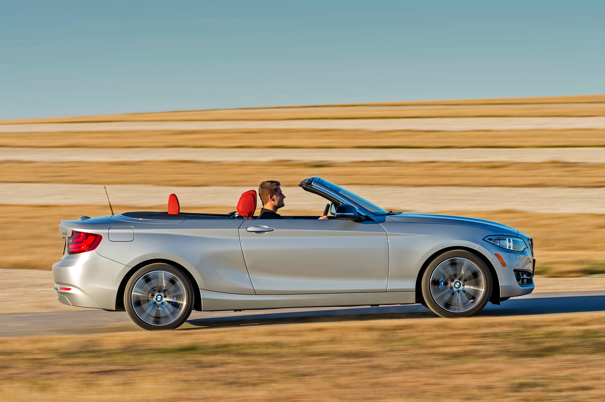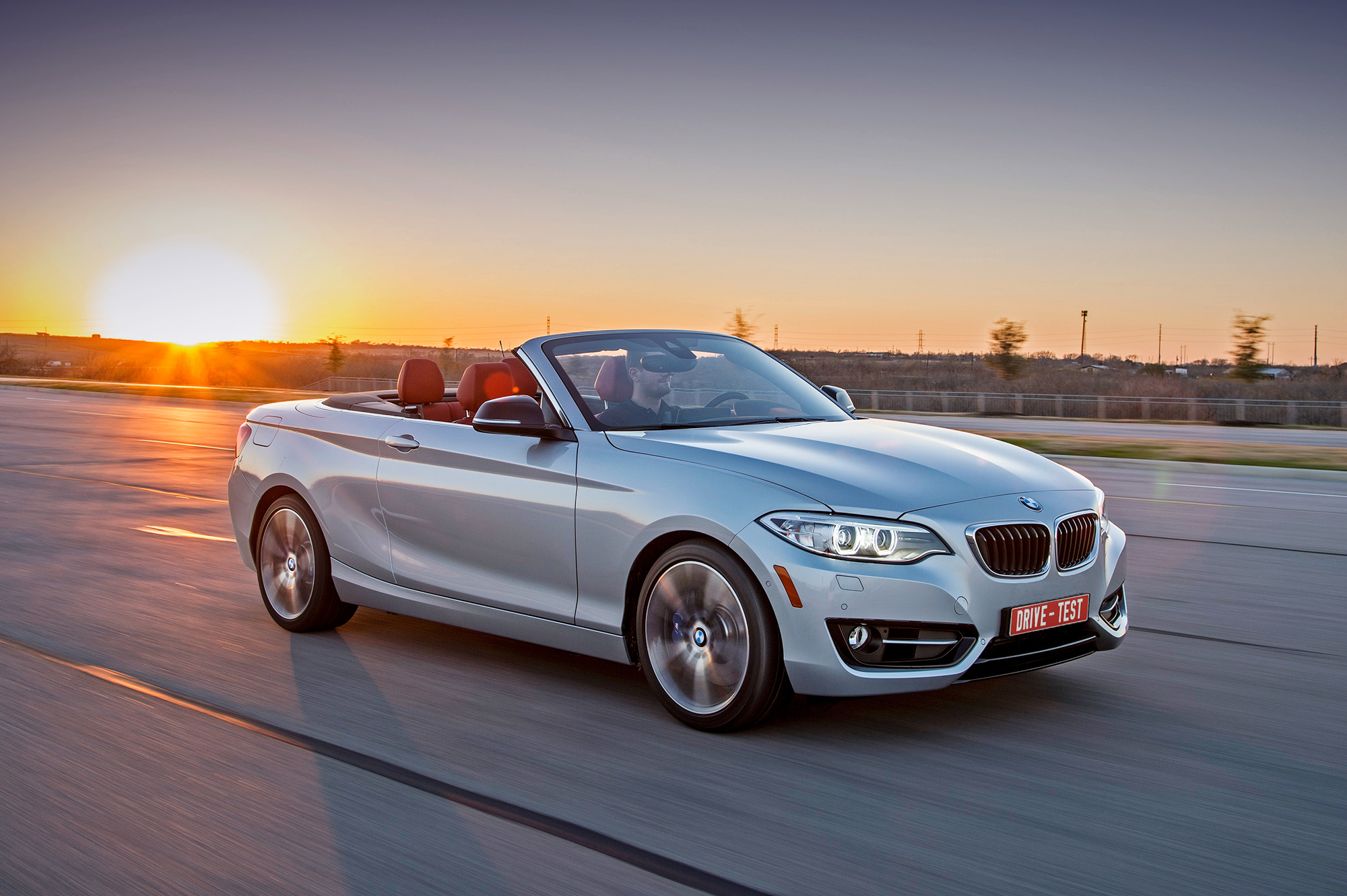 Приятно и то, что Convertible не досаждает дрожью кузова, которую мы приметили у кабриолета четвёртой серии. Рулевая колонка и рамка лобового стекла не вибрируют на неровностях. Жёсткость кузова на кручение у открытой «двойки» по сравнению с «единичкой» выросла на 20%. Поступь у автомобиля благородная: едет собранно, цепко, почти не кренясь и не раскачиваясь. При этом плавность хода не забыта: наш BMW 228i в исполнении Sport Line (но без M-пакета) — с 18-дюймовыми дисками и адаптивными амортизаторами. Вне зависимости от выбранного режима машина хорошо разглаживает техасские дороги, которые отнюдь не всегда хороши. Щербатость полотна транслируется в салон ненавязчивым фоном, мелкие и средние неровности не представляют угрозы.