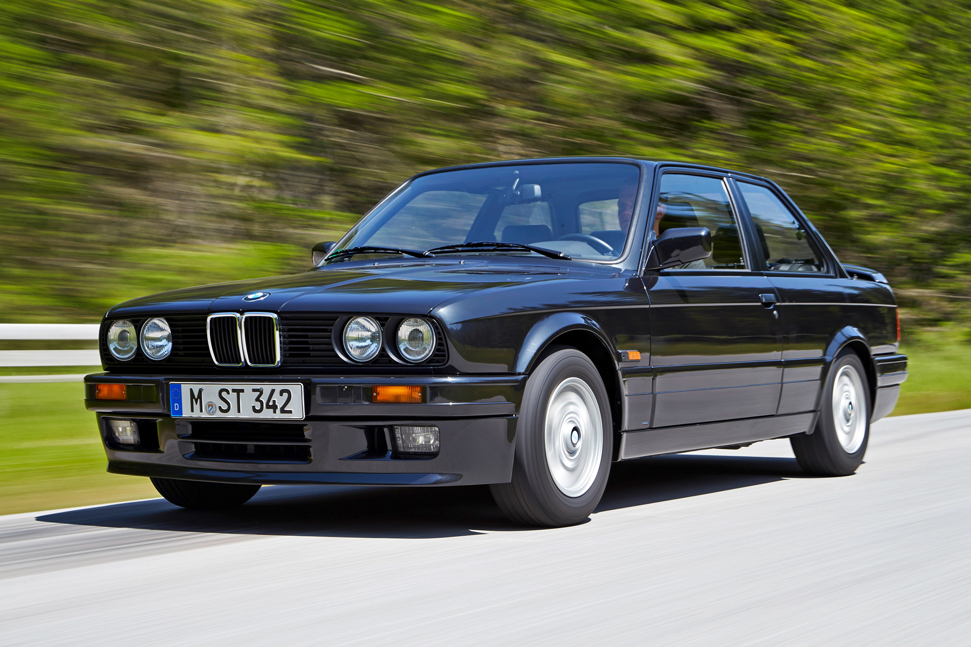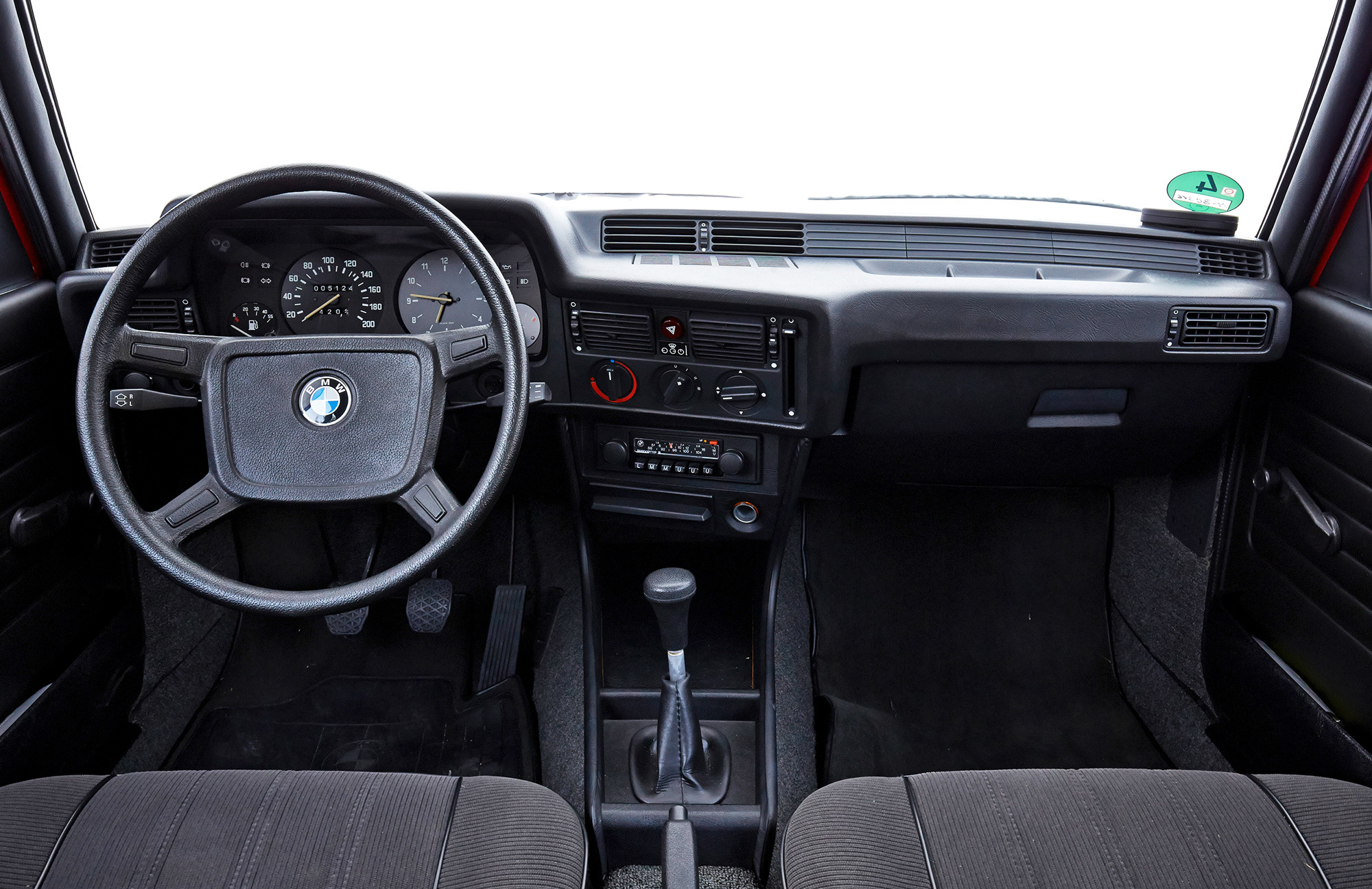 Первая «трёшка» BMW (Е21) появилась в 1975 году как замена двухдверки 1602: клиновидная форма передка, как у запущенной несколькими годами ранее «пятёрки» (Е12), развёрнутая к водителю центральная консоль. Итоговый тираж — чуть менее полутора миллионов.