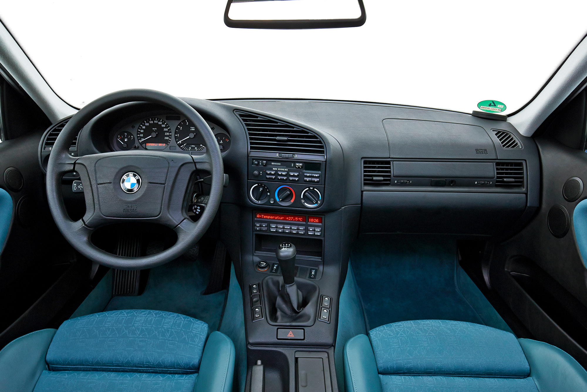 Живой такую машину сейчас пойди найди, но когда «тридцать шестая» с рядной «шестёркой» под капотом в расцвете, цветёшь и ты! Какая прелесть этот тросовый привод газа — чувствуешь на педали каждую микровибрацию мотора, а нажмёшь, так сразу реакция. Руль ясный, шасси собранное: мне тут интереснее, чем в «сорок шестой»! Но это уже «ретро» — крышечка рядом с ручником прикрывает соты для аудиокассет.