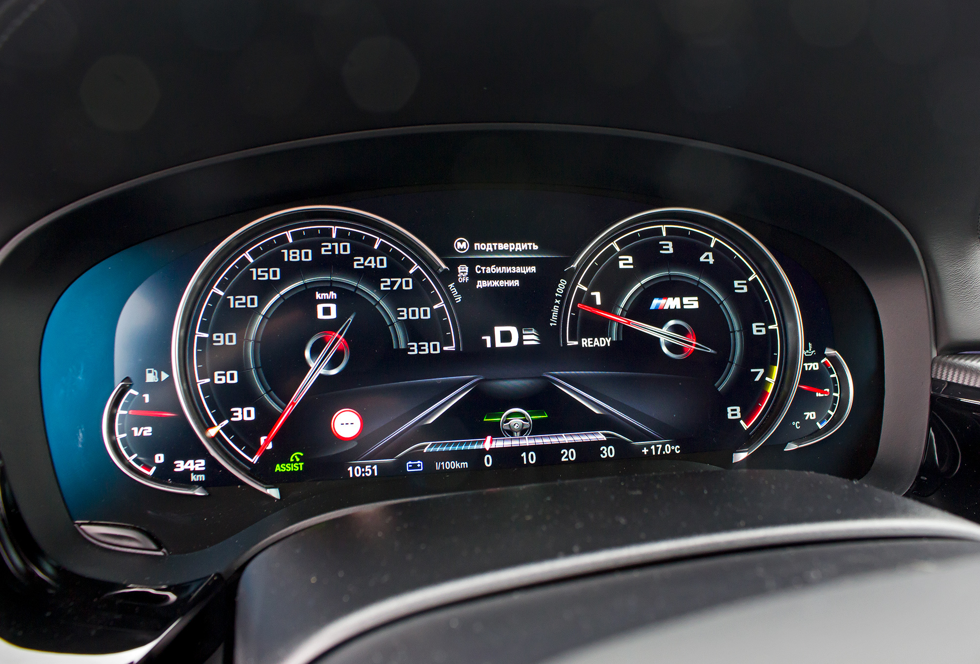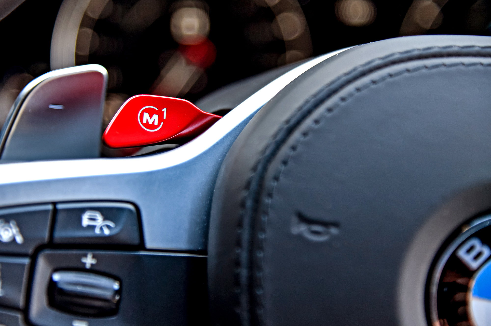 Акцент теперь ― на гашетках М1 и М2 поверх толстенного руля. Из рядовых кнопок на спицах они трансформировались в настоящие горячие клавиши. Для каждой сохраняется любой набор настроек. Лапку М2 надо нажимать дважды: «парень, ты точно этого хочешь?» Понятно, что большинство владельцев будут держать под правой рукой дрифт-комплект из отключенной системы стабилизации и заднего привода. Деактивировать передок можно только вместе с электронным ошейником.